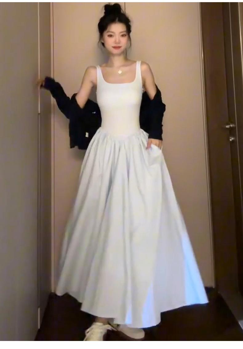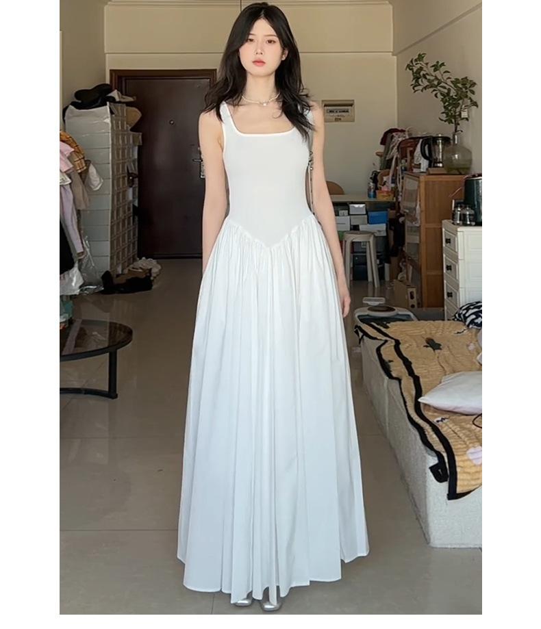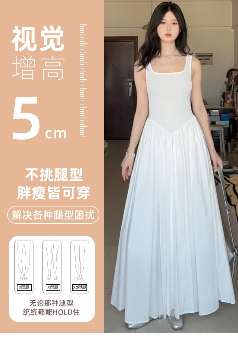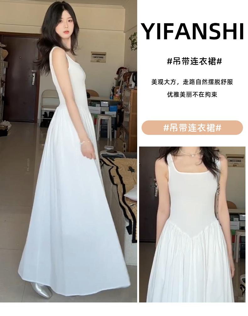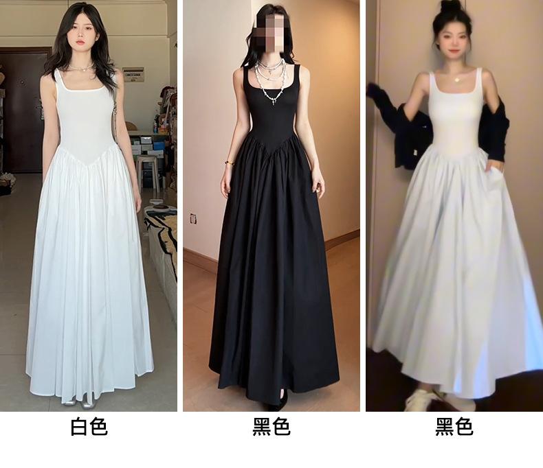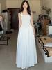 Vestido Blanco con Tirantes de Cuello U para Mujer Verano 2025 Nuevo Adelgazante Cintura Temperamento Francés Versátil Vestido Largo