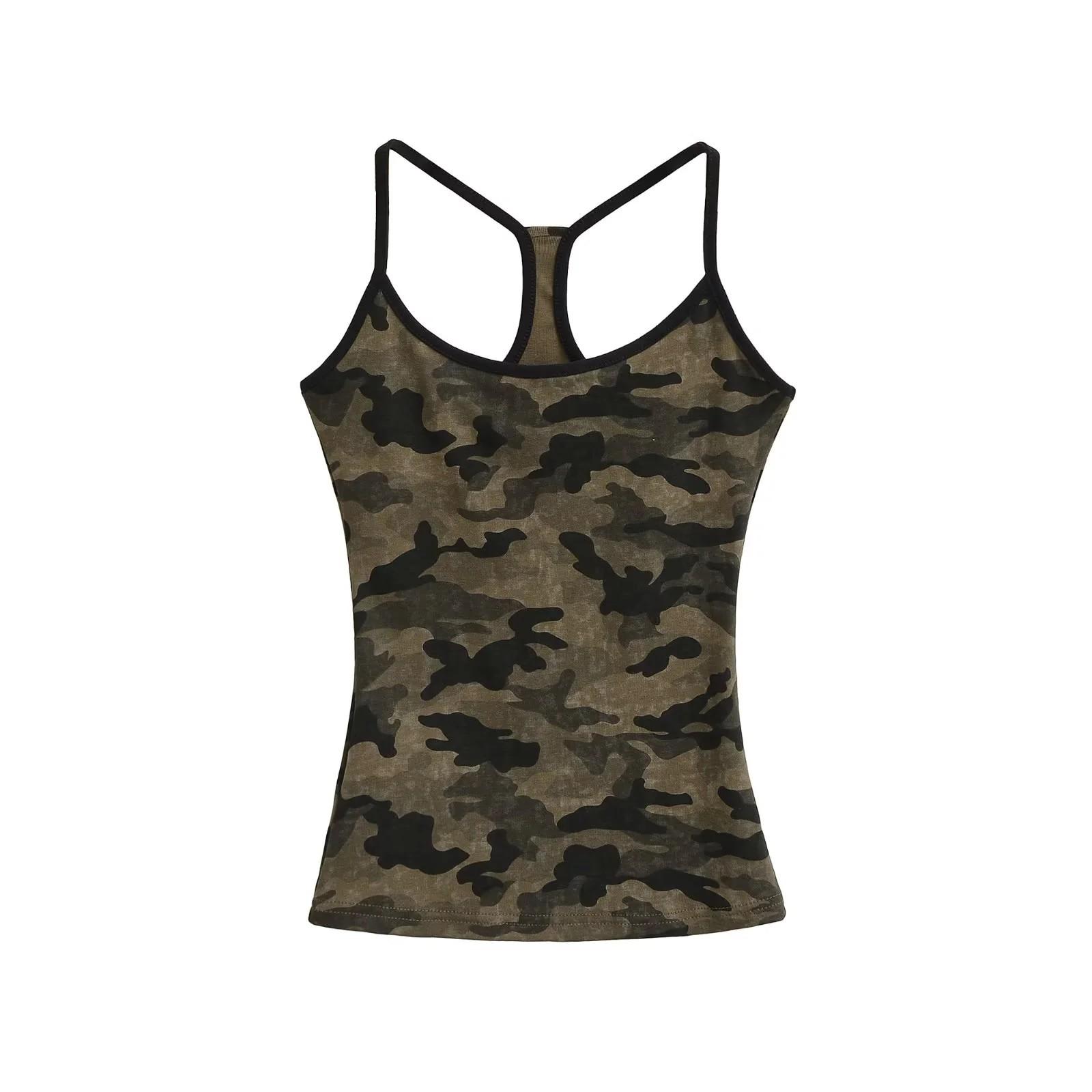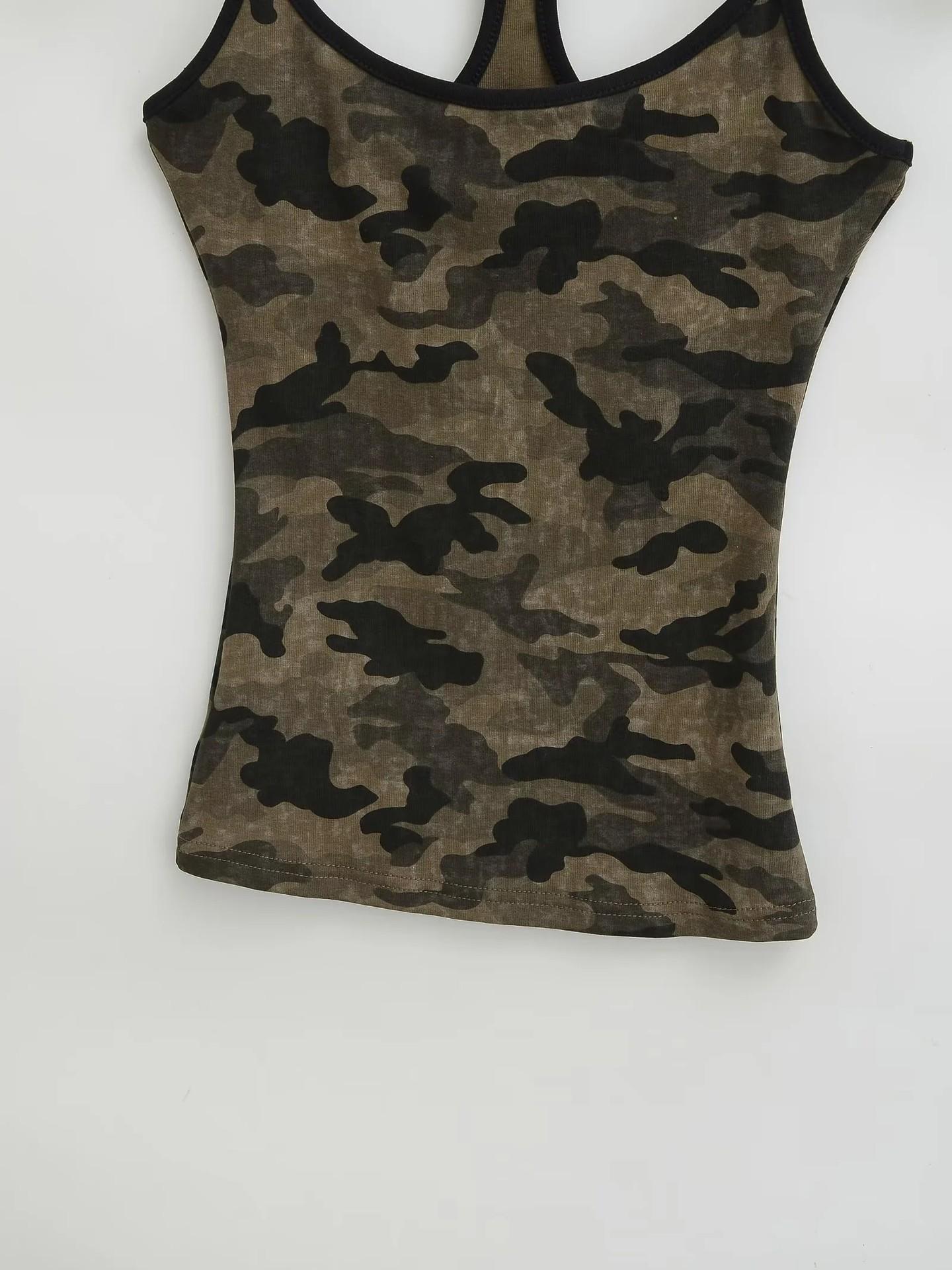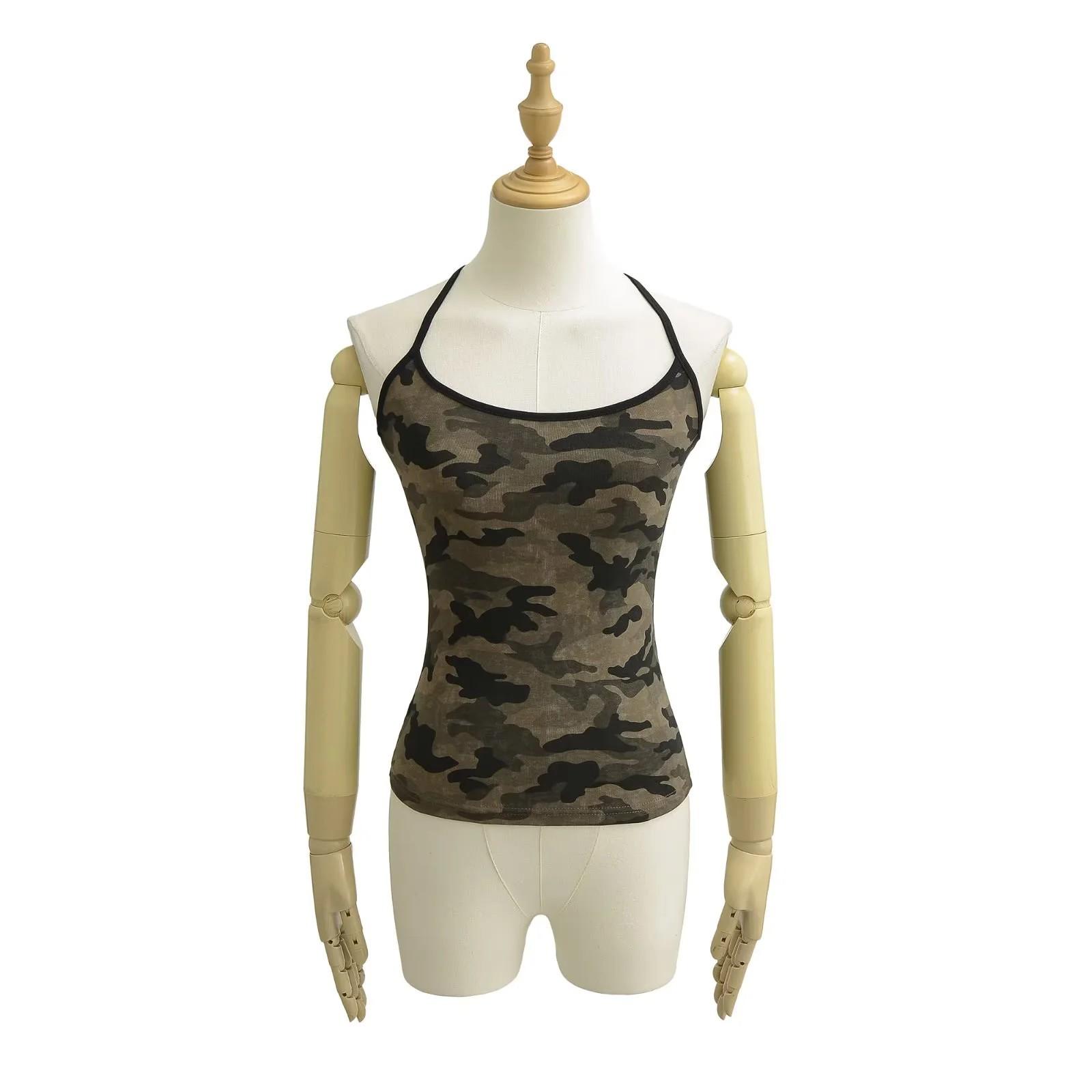 Camisola de Tirantes de Camuflaje Verano 2025 Diseño de Verano para Mujer Americano Retro Slim Hot Girl Top