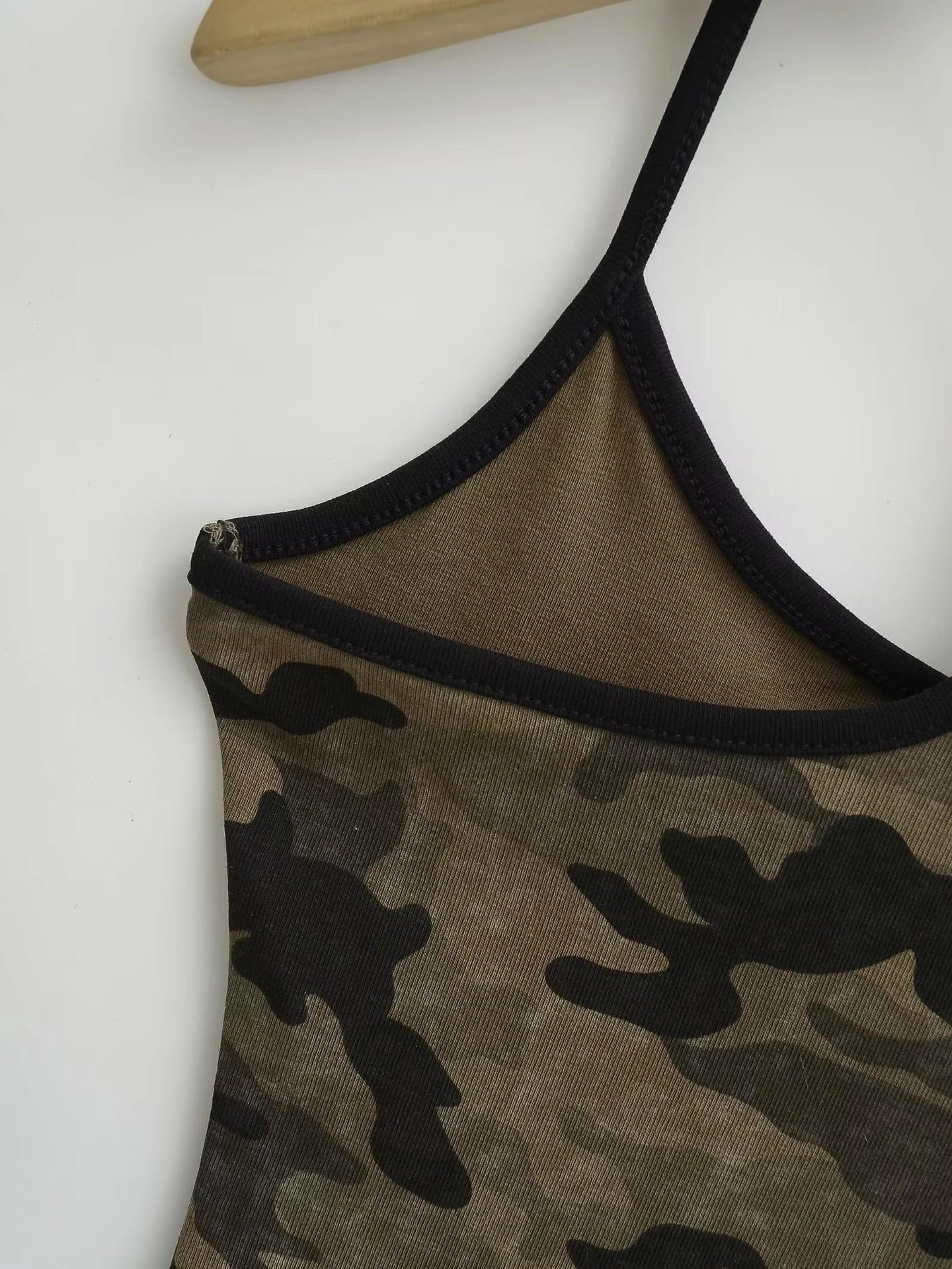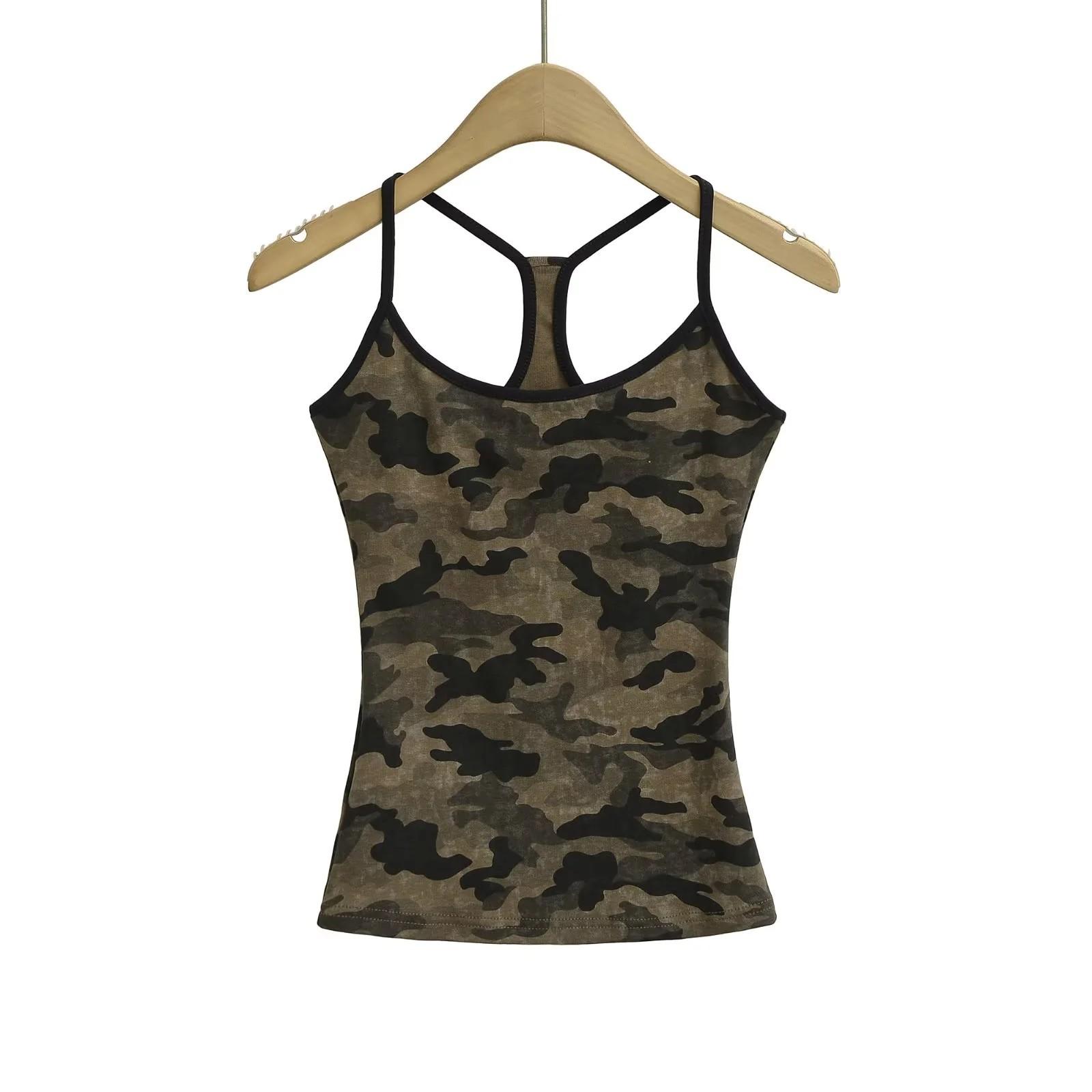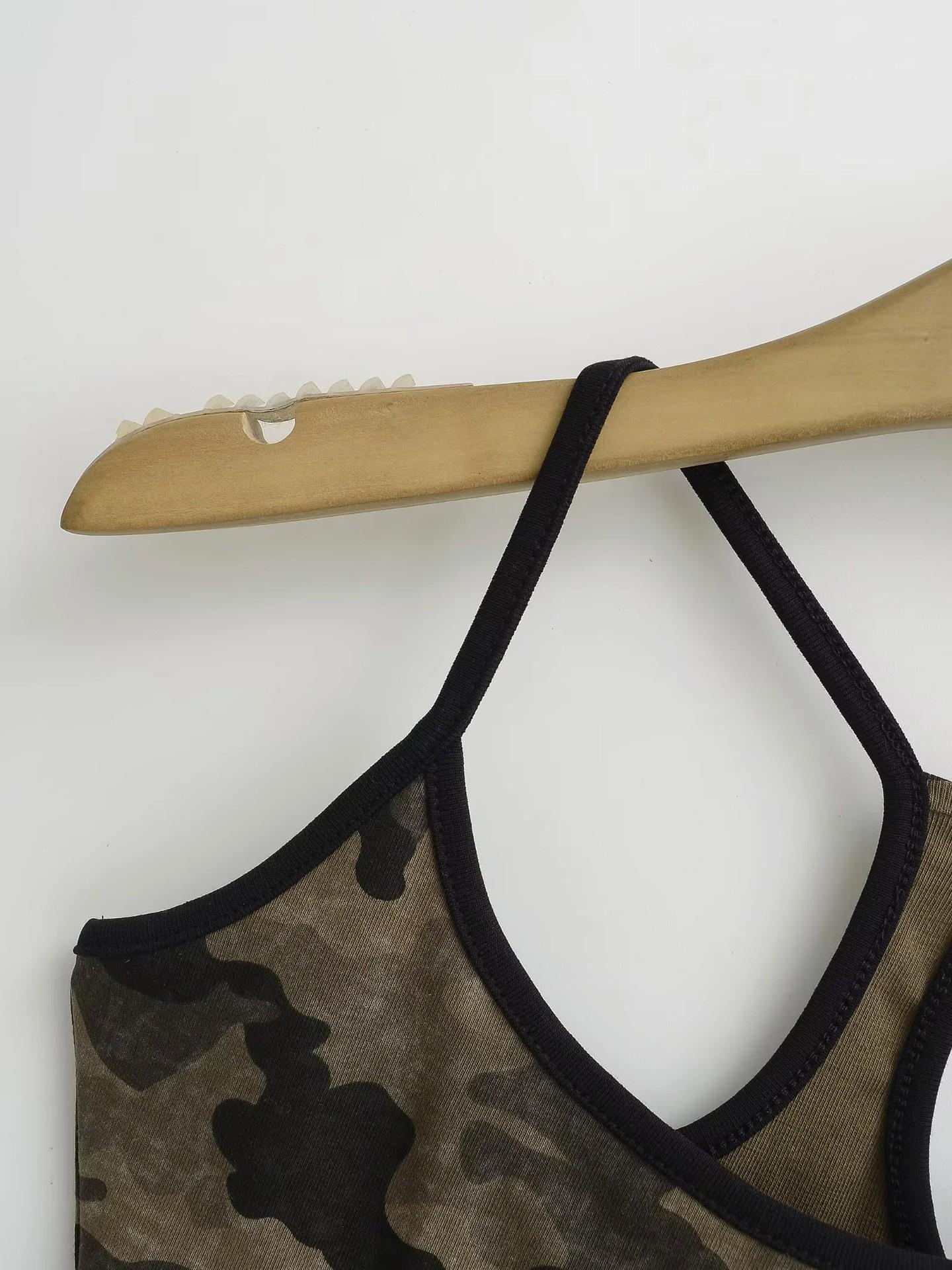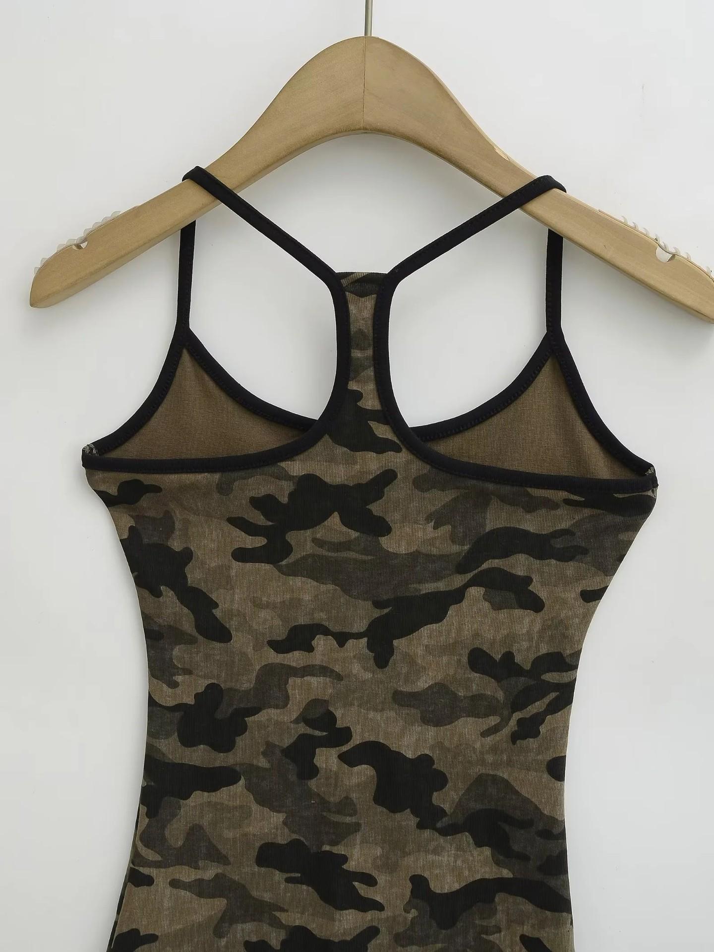 Camisola de Tirantes de Camuflaje Verano 2025 Diseño de Verano para Mujer Americano Retro Slim Hot Girl Top