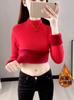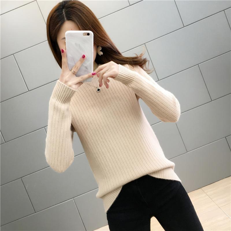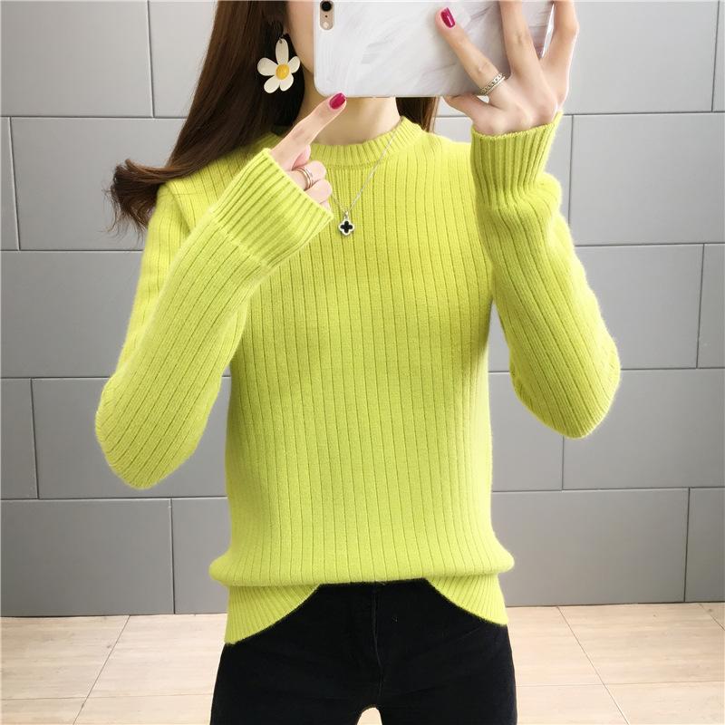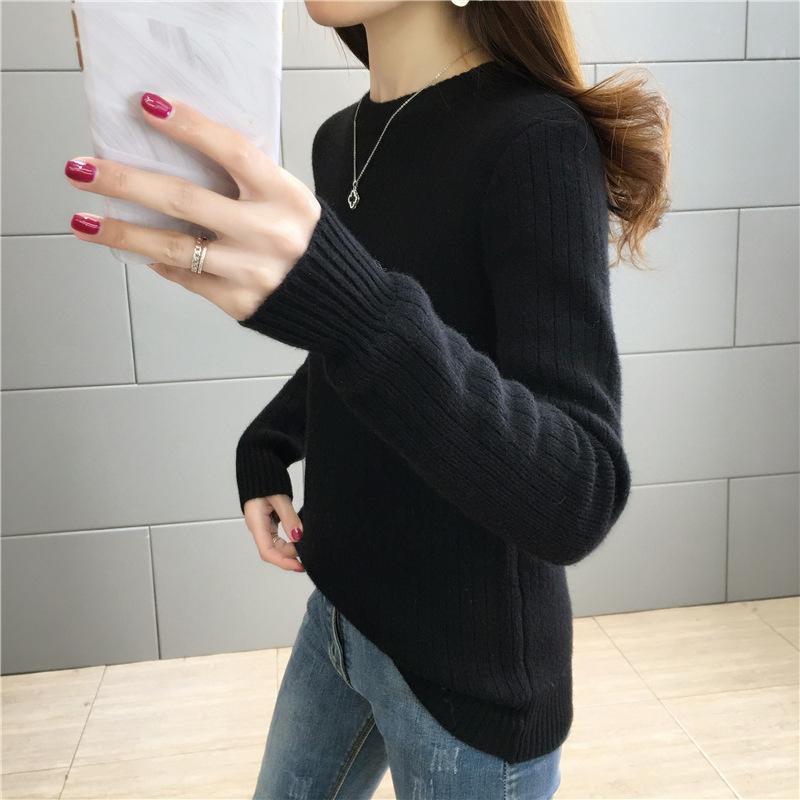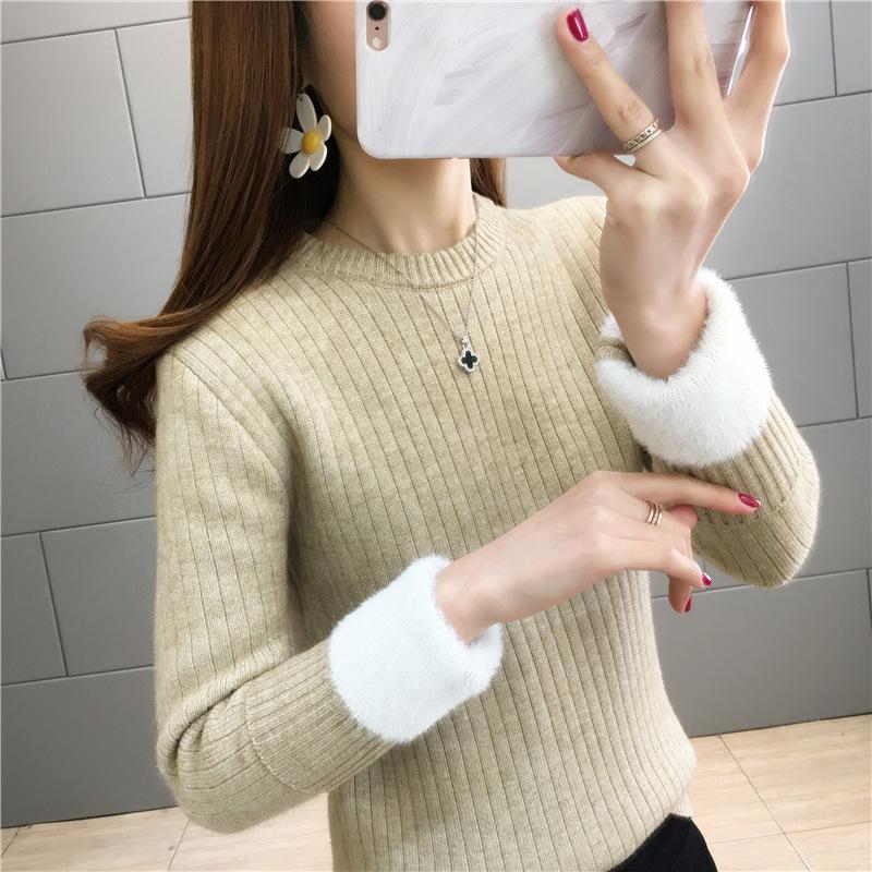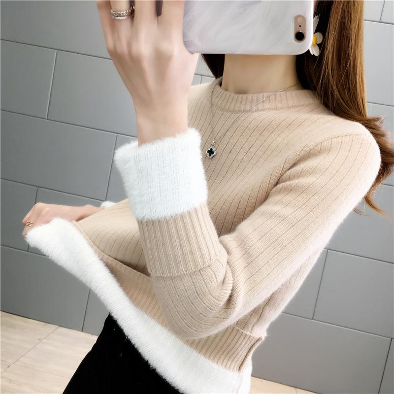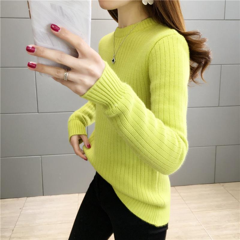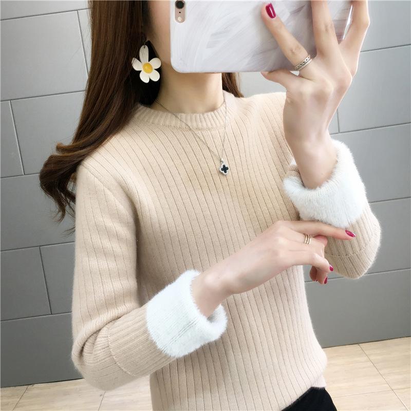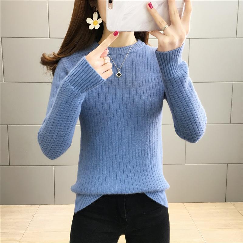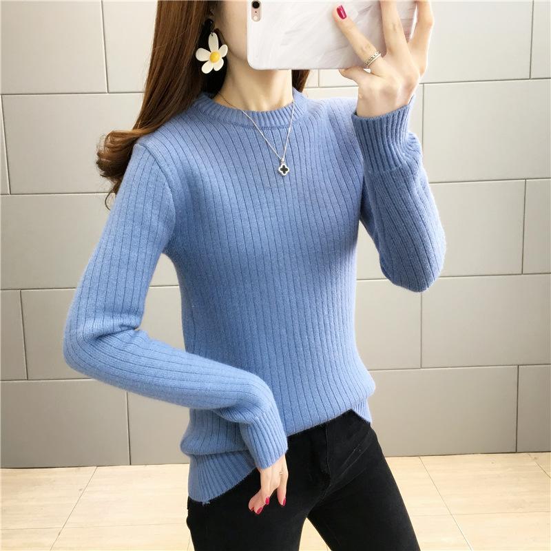 Suéter de lana de una pieza de cuello redondo forrado de vellón y engrosado para mujer, top de punto para otoño e invierno 2025, capa base ajustada, prenda interior de manga larga