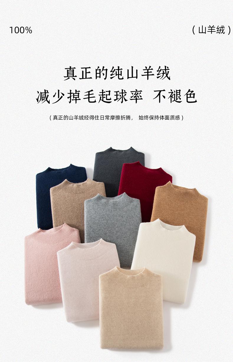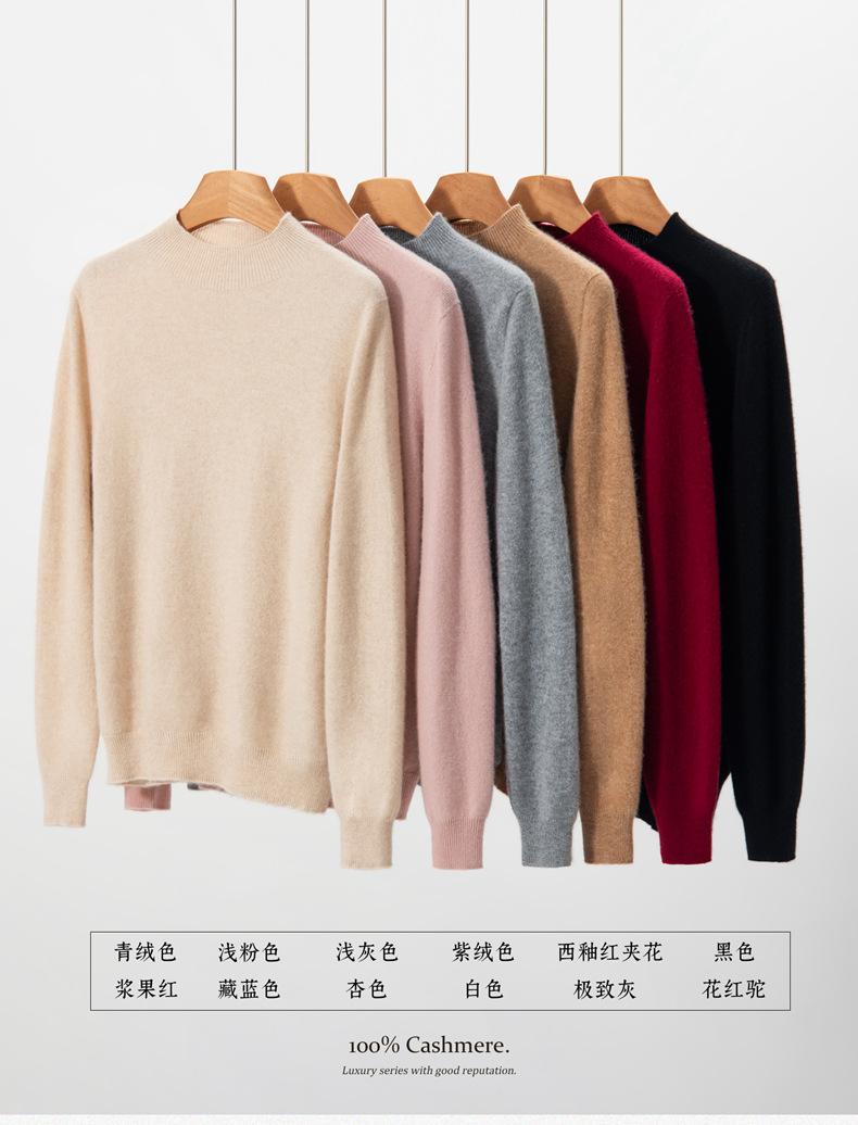 Estilo otoño e invierno suéter 100% cachemira pura jersey de punto cuello semi-alto suéter de cachemira camisa base de mujer ropa interior versátil casual