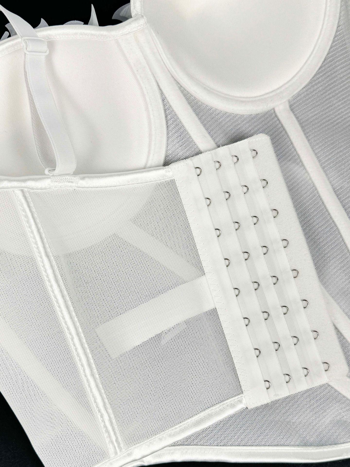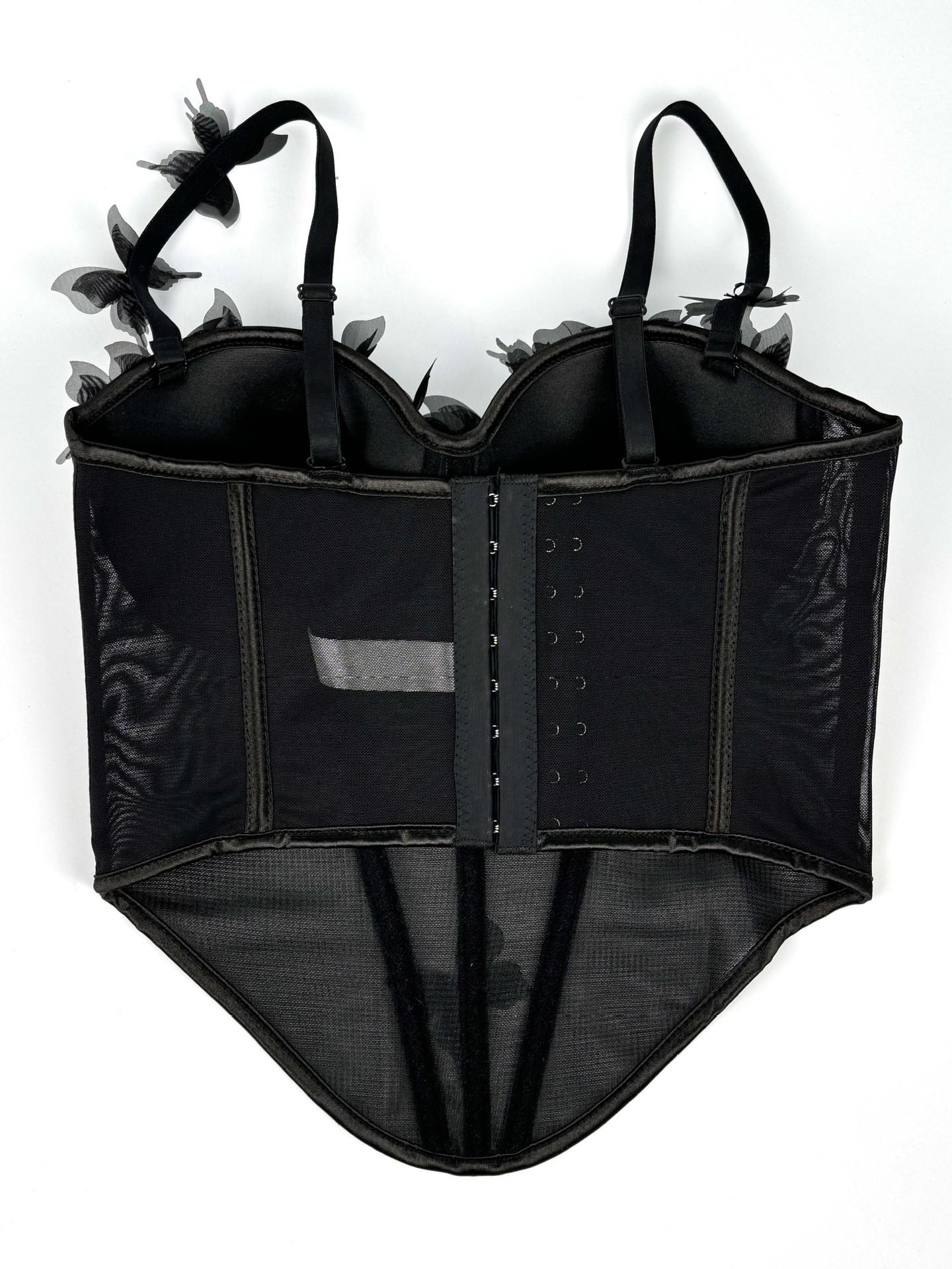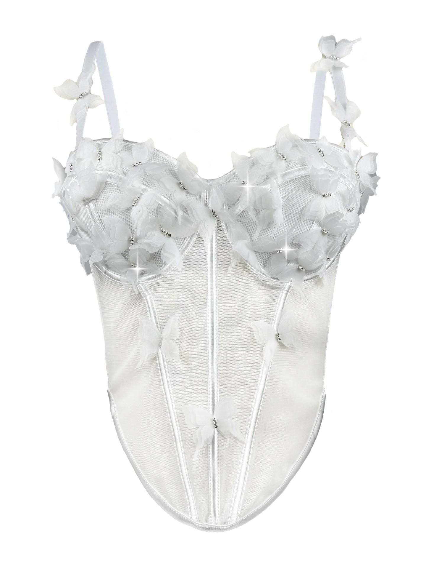 Sujetador corsé de tirantes con mariposa tridimensional de pedrería translúcido delgado con varillas nicho de alta gama temperamento sexy chaqueta corsé