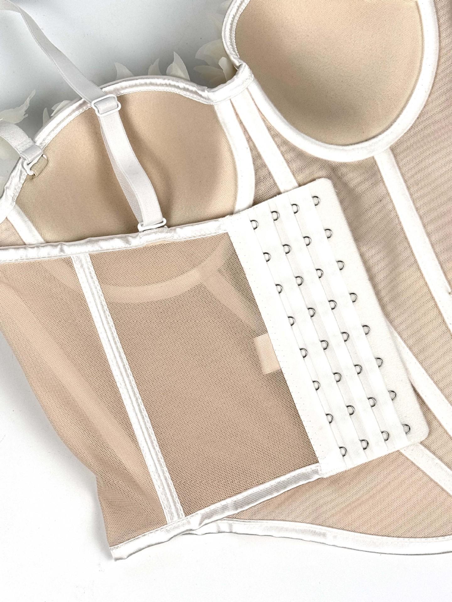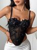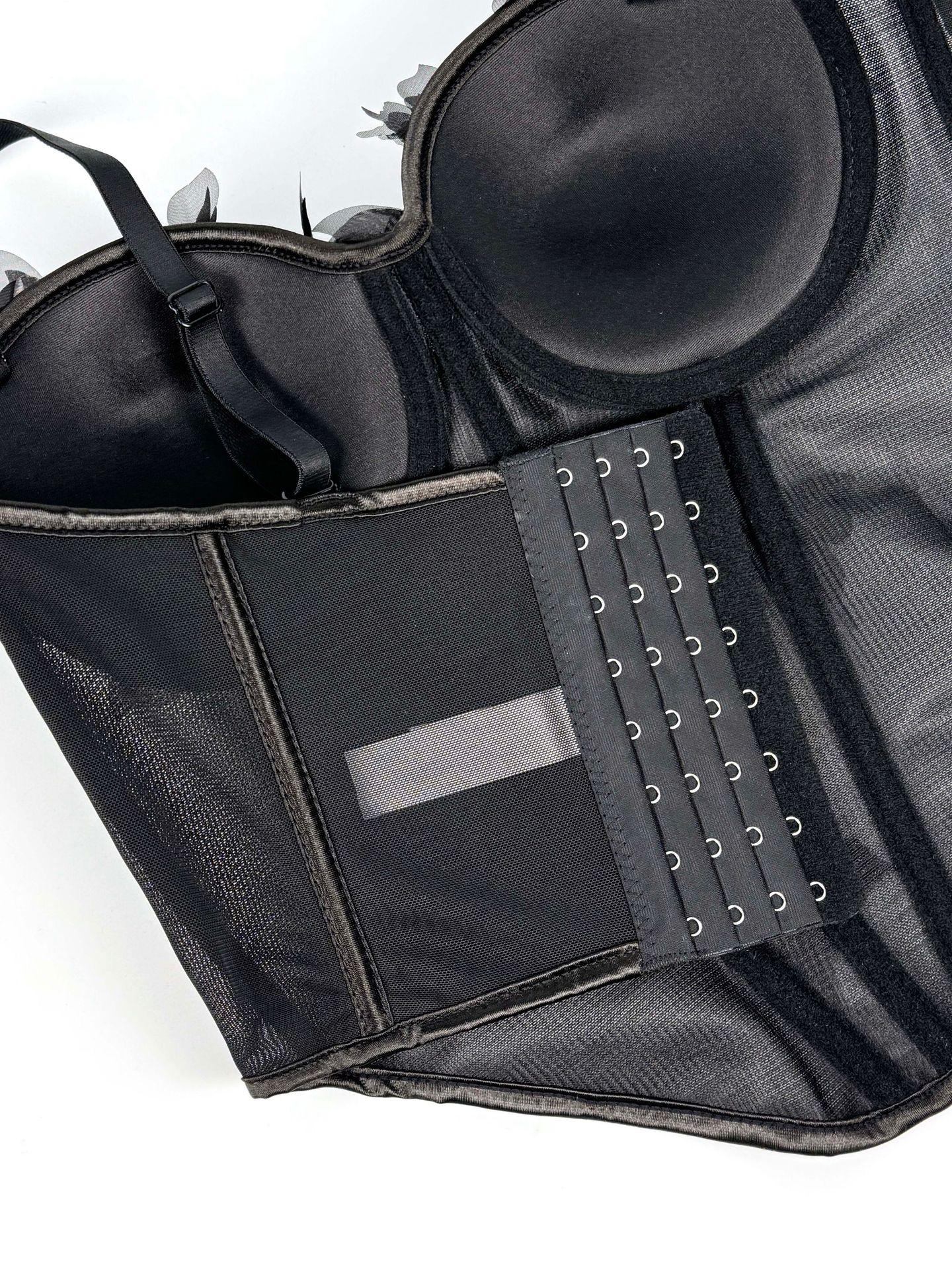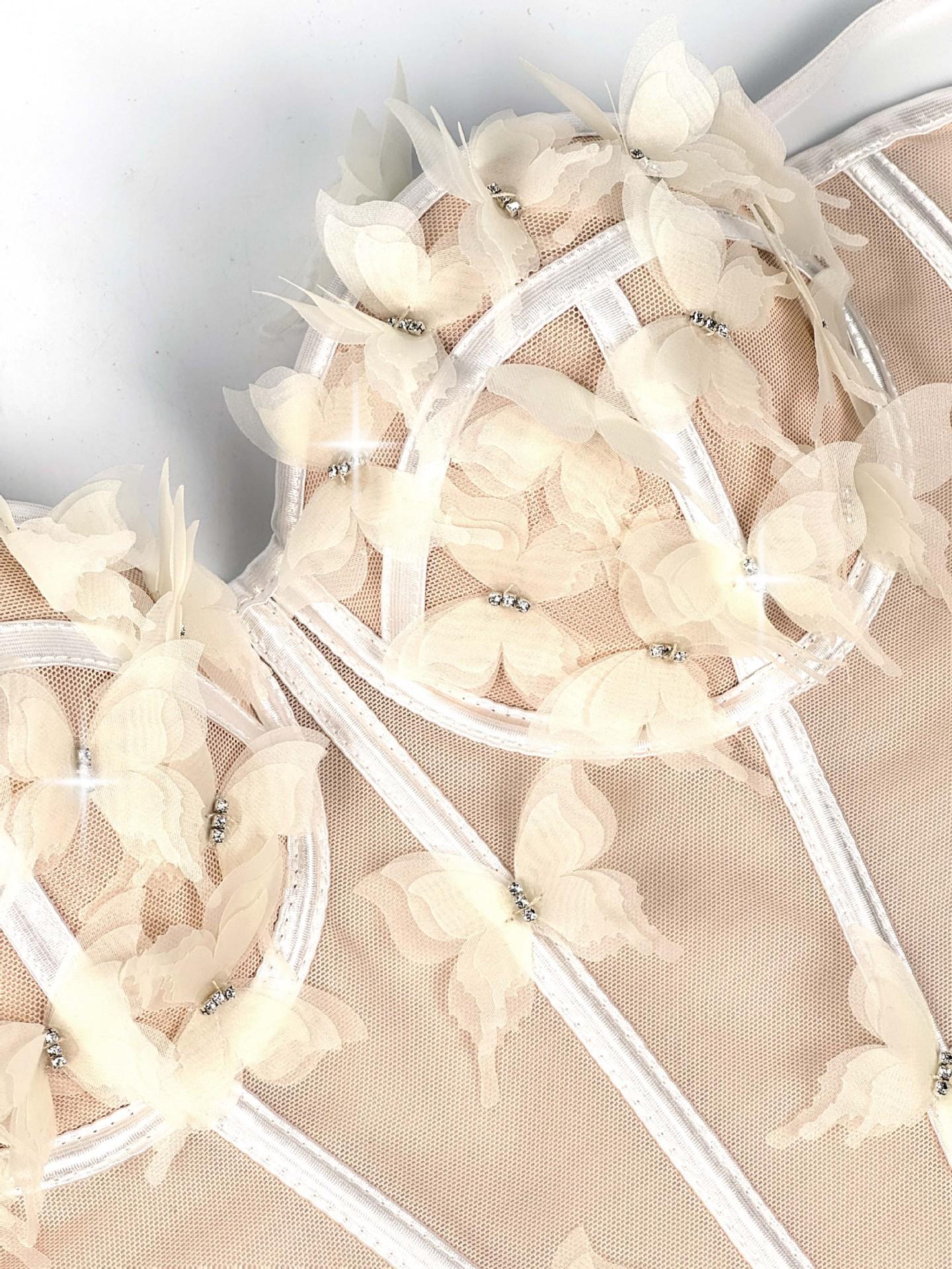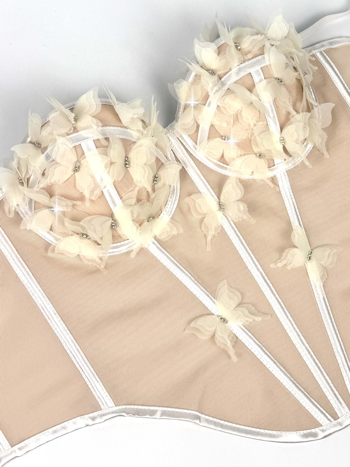 Sujetador corsé de tirantes con mariposa tridimensional de pedrería translúcido delgado con varillas nicho de alta gama temperamento sexy chaqueta corsé