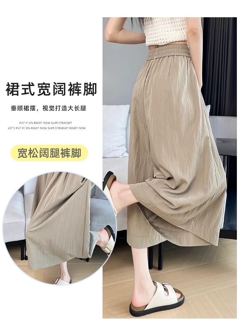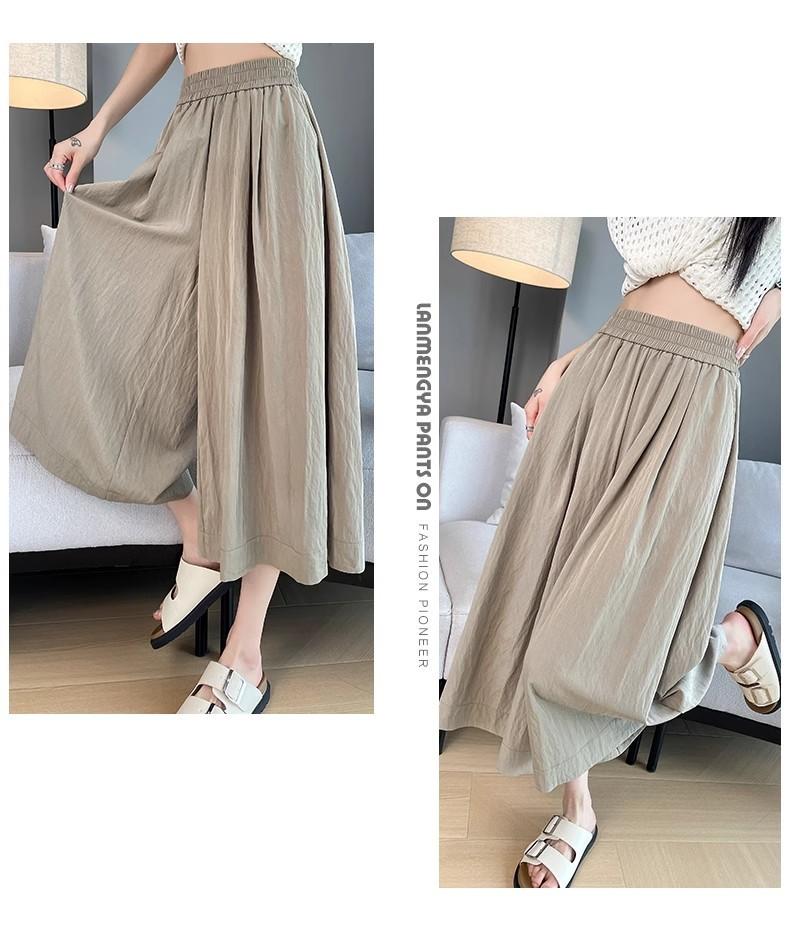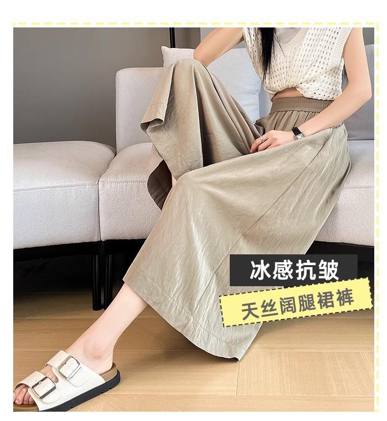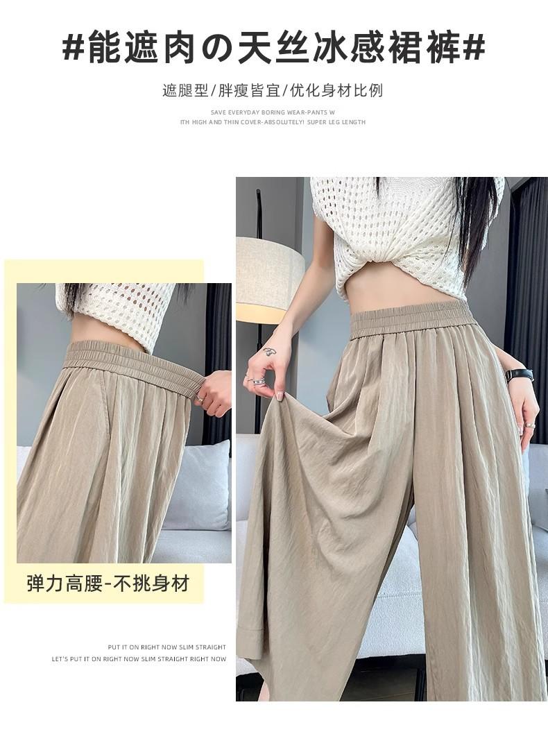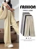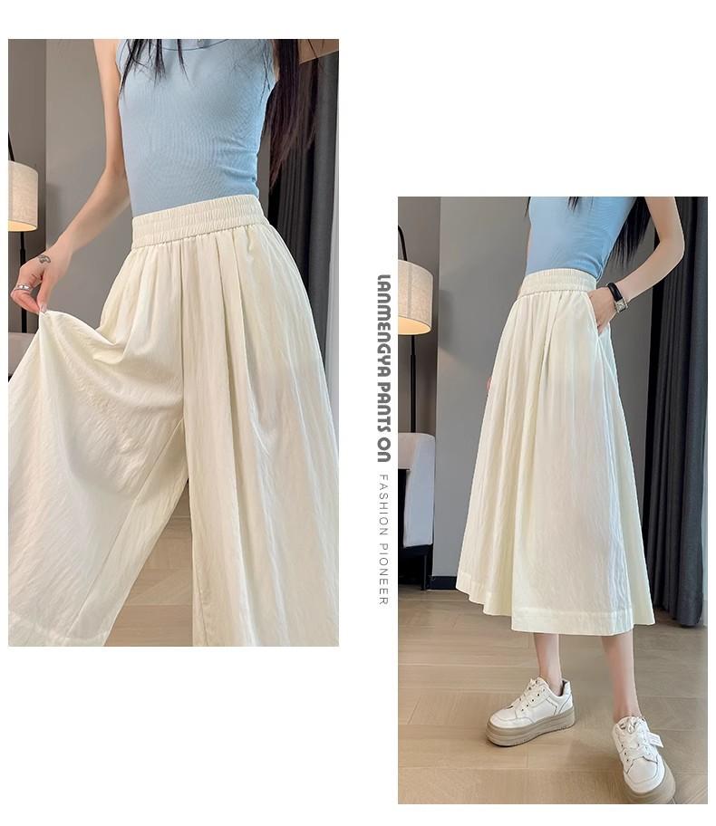 Pantalones de Pierna Ancha de Seda Helada Color Albaricoque para Mujer 2025 Nuevo Verano Delgados Cintura Alta Drapeados Sueltos Casual Estilo Lazy Pantalones Yamamoto