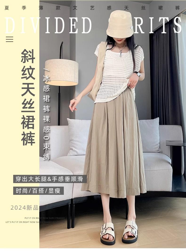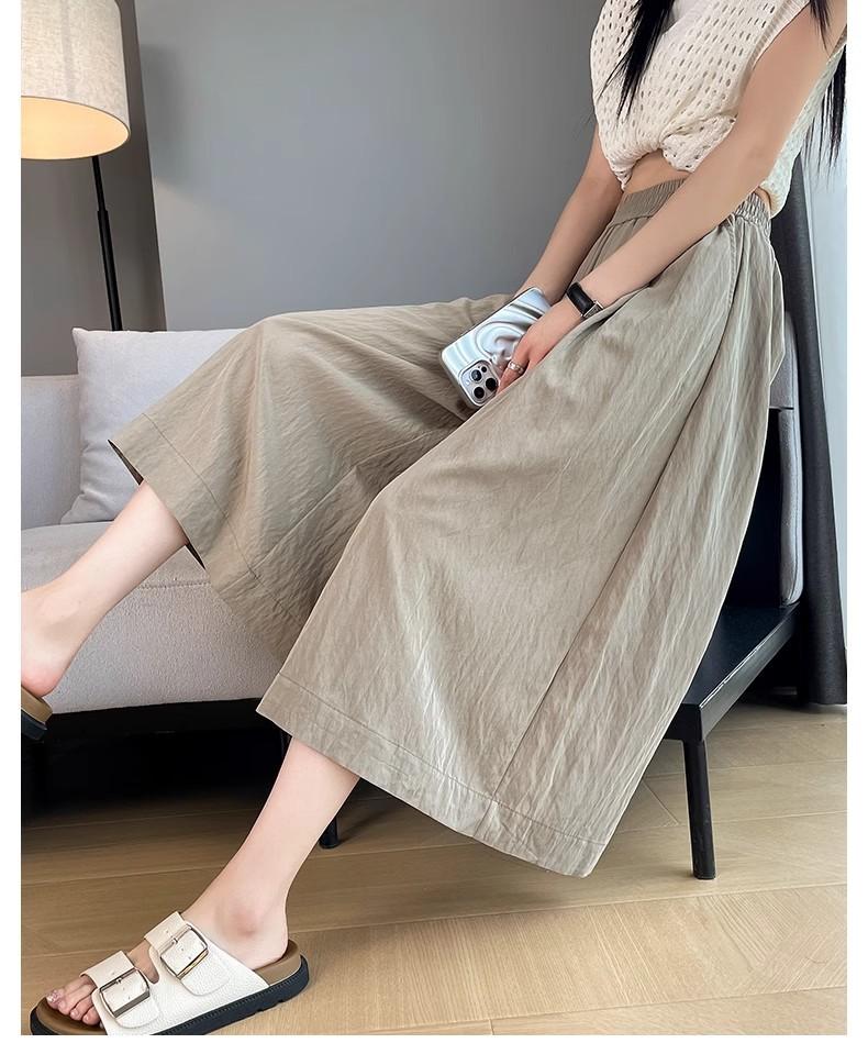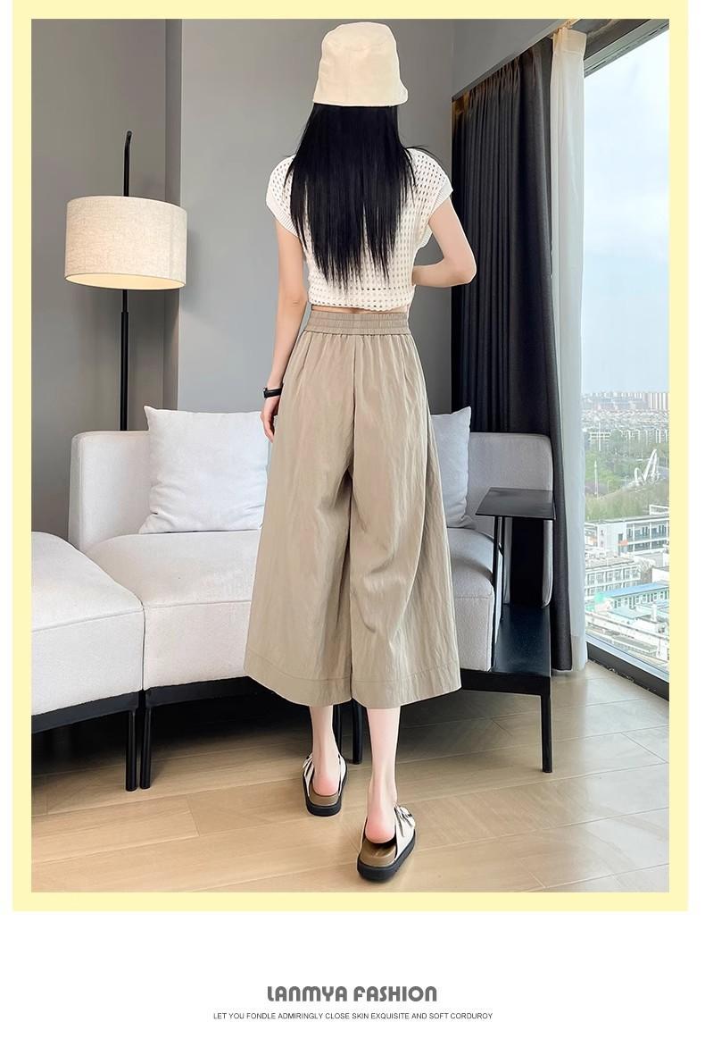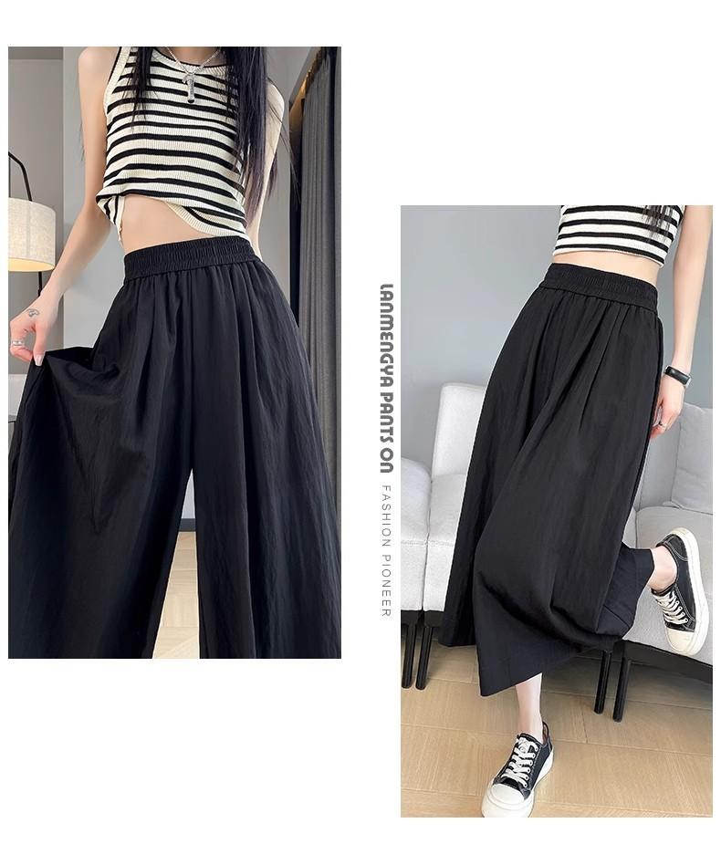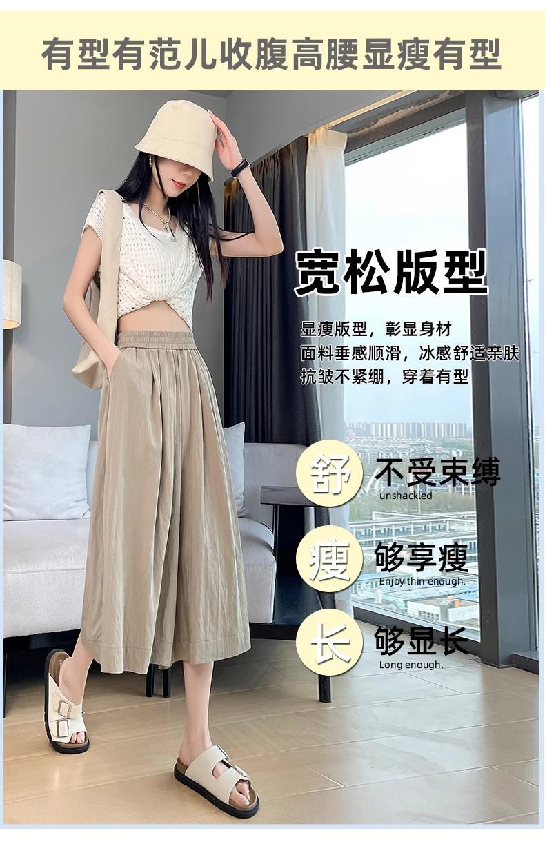 Pantalones de Pierna Ancha de Seda Helada Color Albaricoque para Mujer 2025 Nuevo Verano Delgados Cintura Alta Drapeados Sueltos Casual Estilo Lazy Pantalones Yamamoto