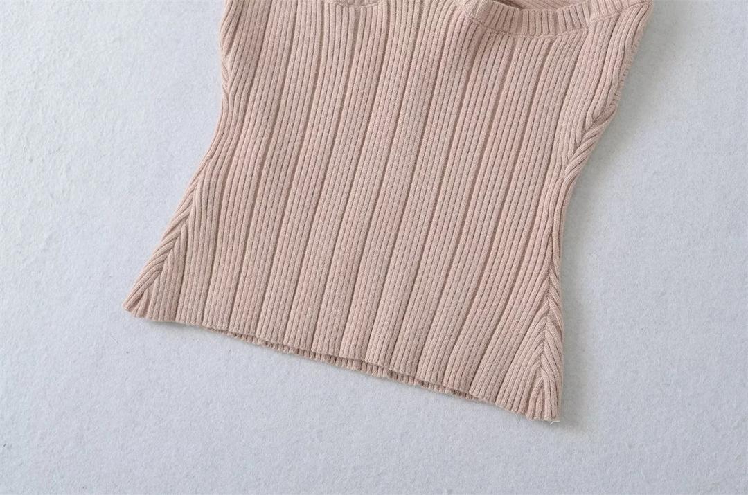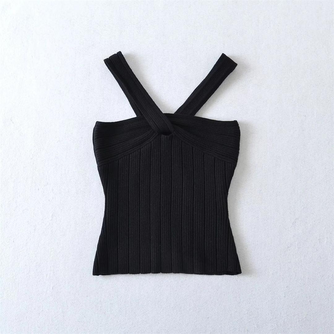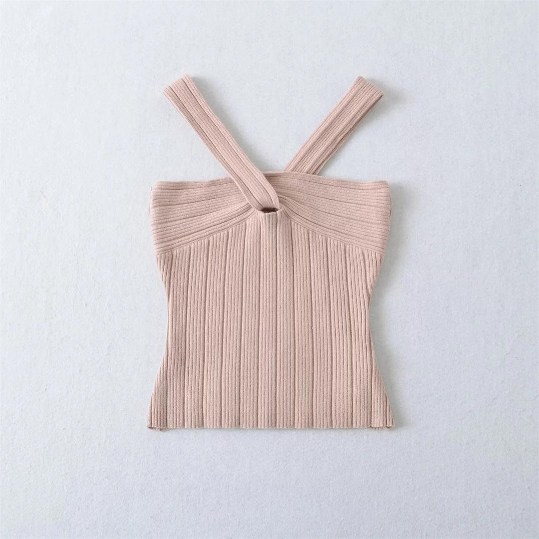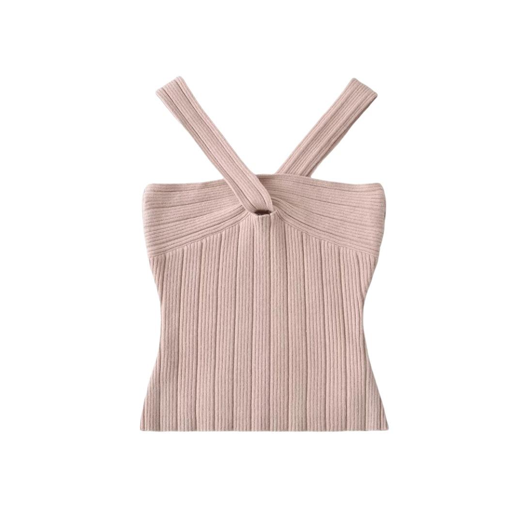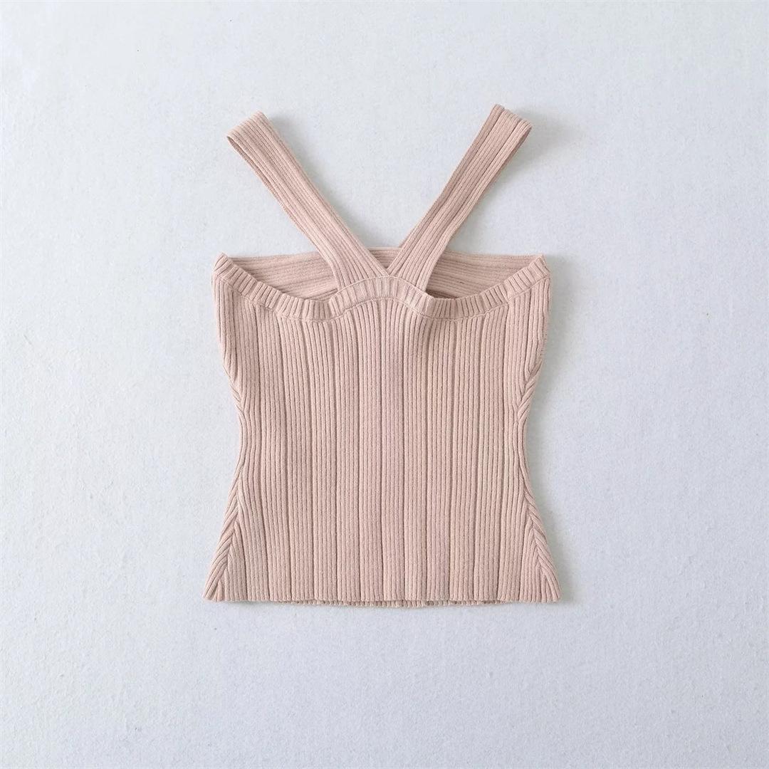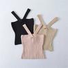 Estilo Francés Elegante Chic Hermoso Cuello Corto Tejido Sling Chaleco Deseo Puro Hombro Ajustado Sin Mangas Top para Mujer