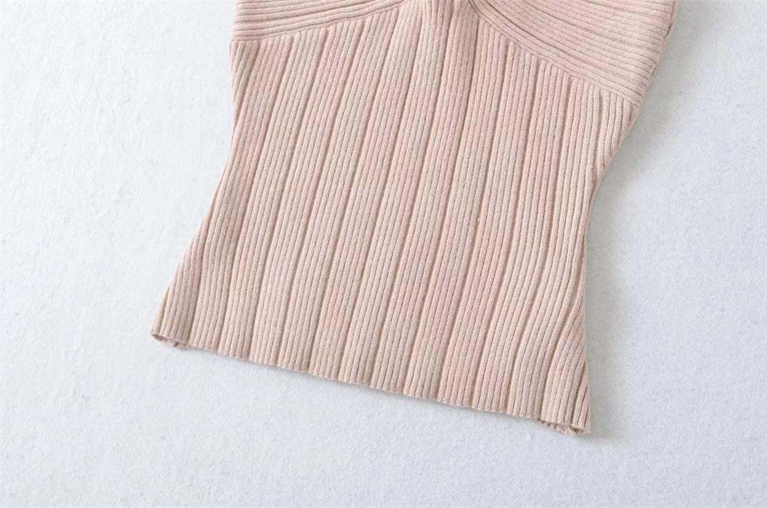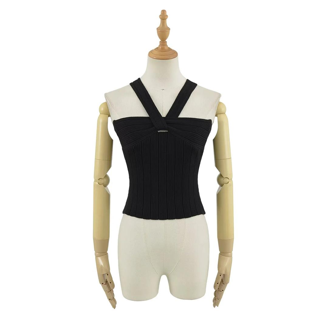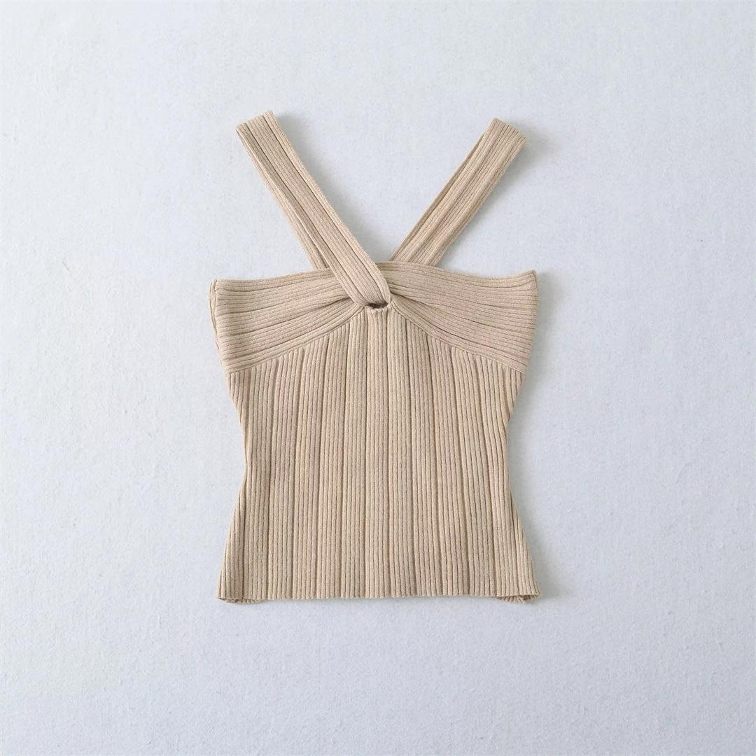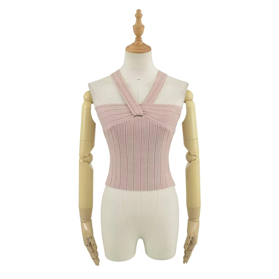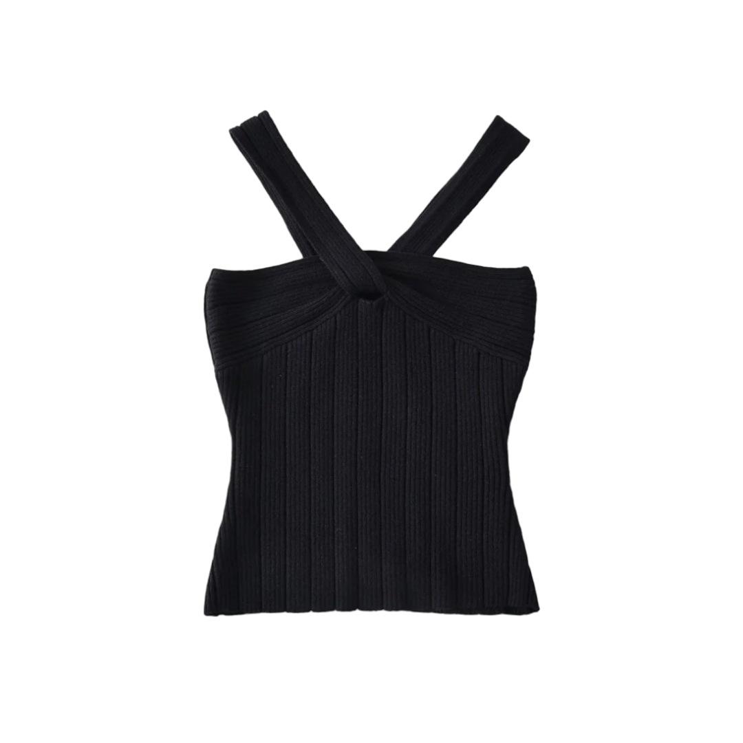 Estilo Francés Elegante Chic Hermoso Cuello Corto Tejido Sling Chaleco Deseo Puro Hombro Ajustado Sin Mangas Top para Mujer