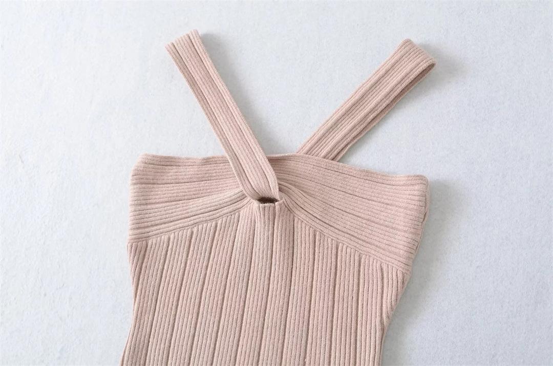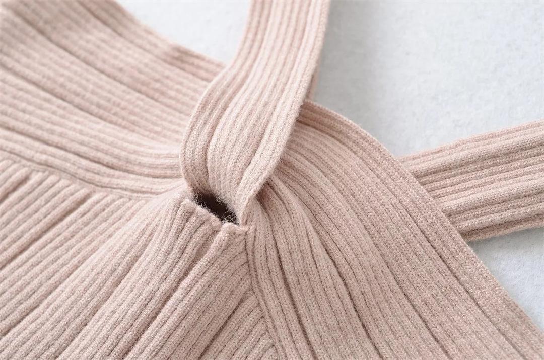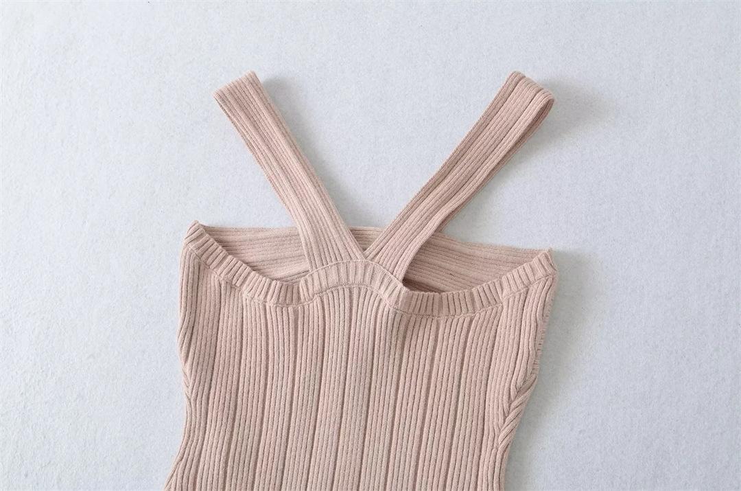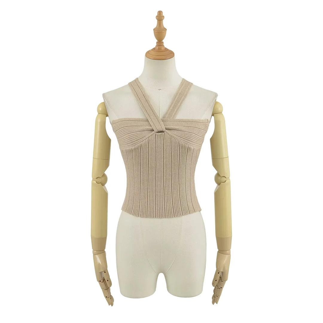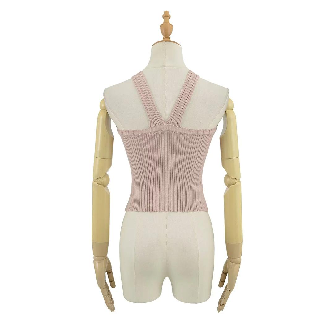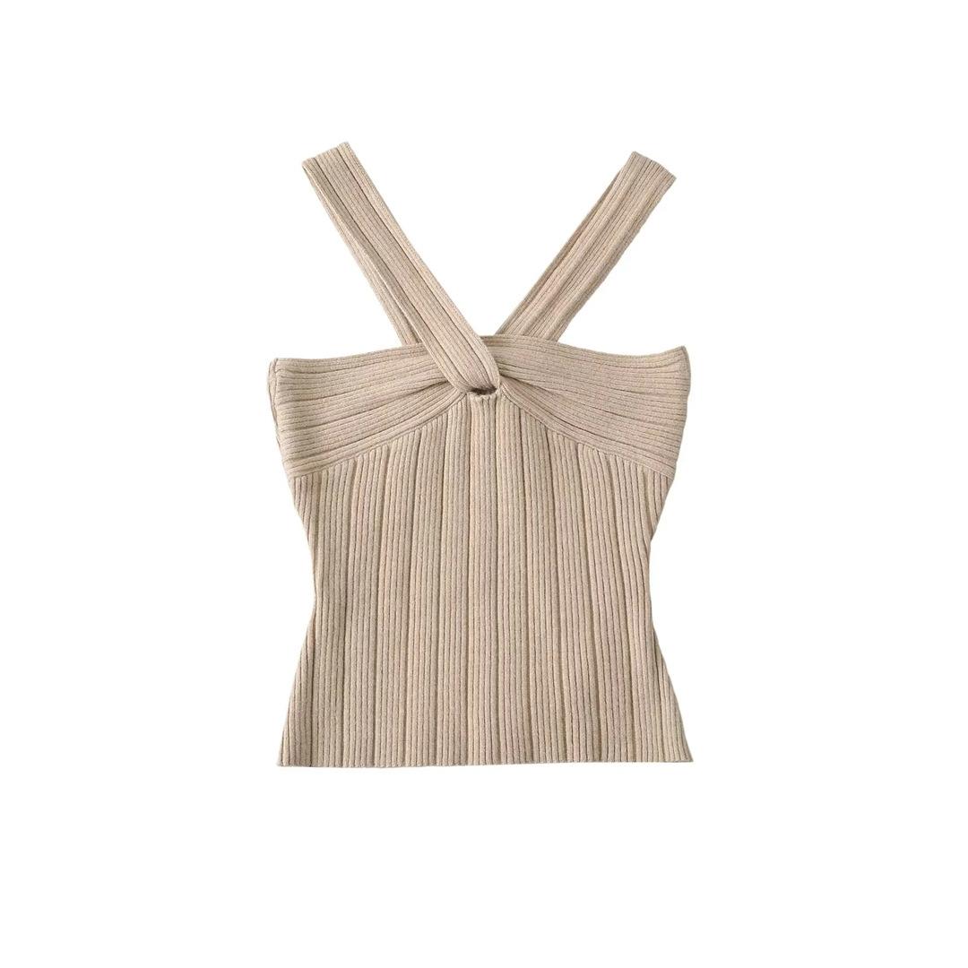 Estilo Francés Elegante Chic Hermoso Cuello Corto Tejido Sling Chaleco Deseo Puro Hombro Ajustado Sin Mangas Top para Mujer