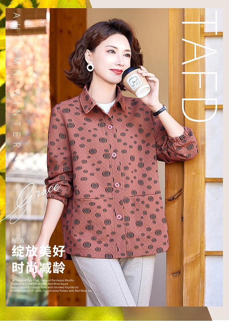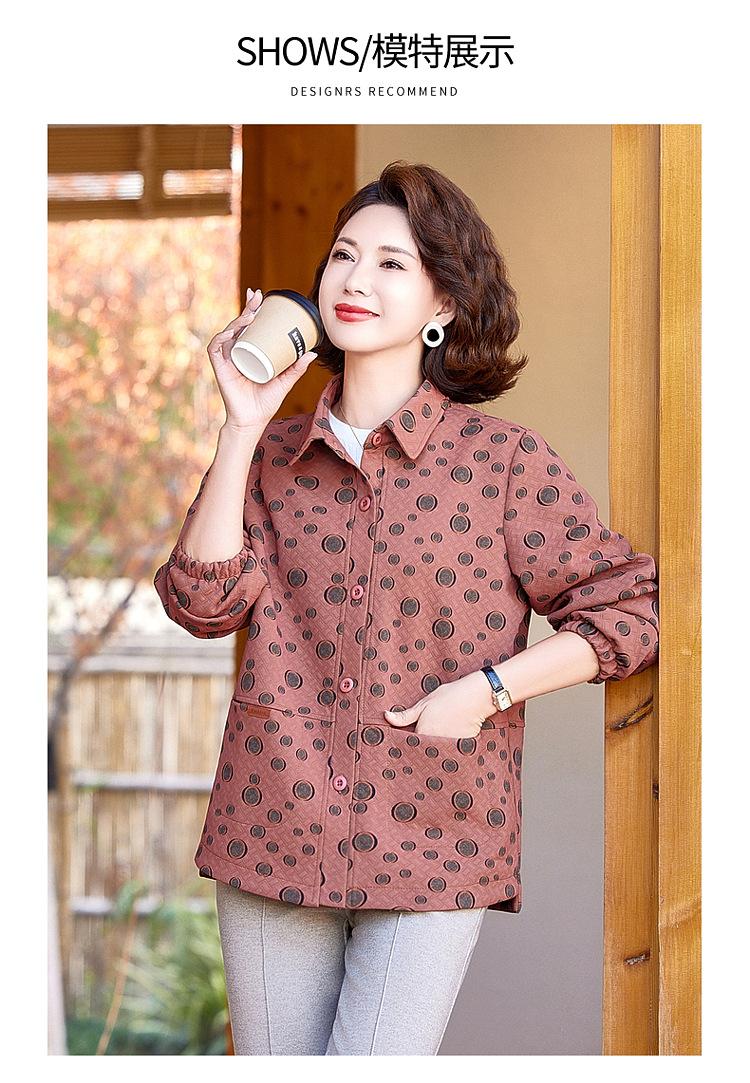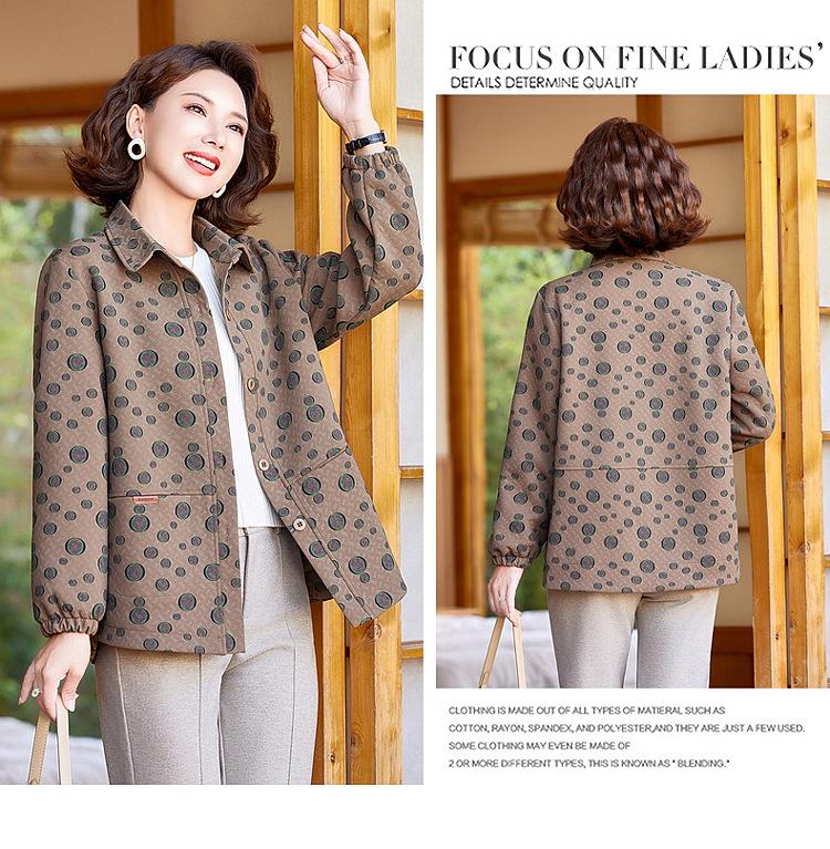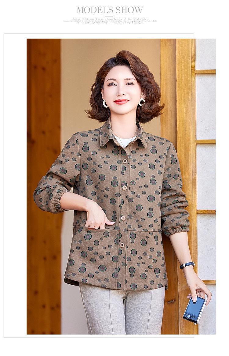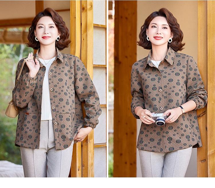 Blusa floral nueva de otoño 2025 para mujeres de mediana edad y ancianas, atuendo para madre de 50-60 años, camisa con cuello vuelto, cárdigan de talla grande