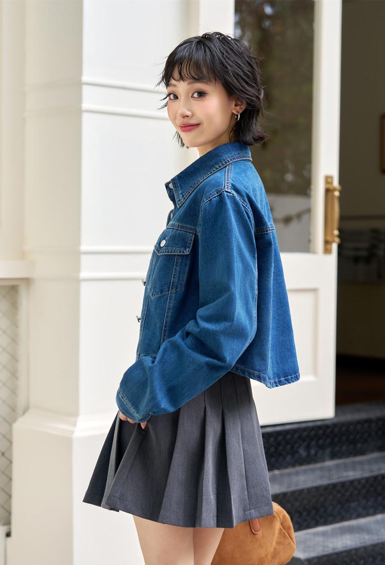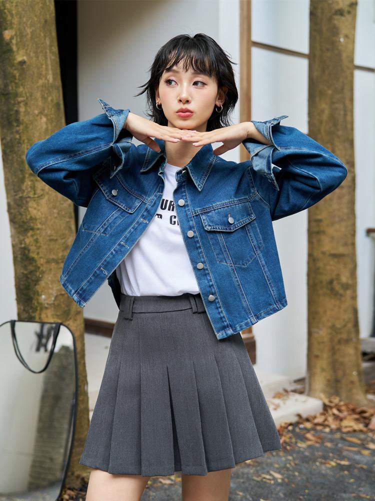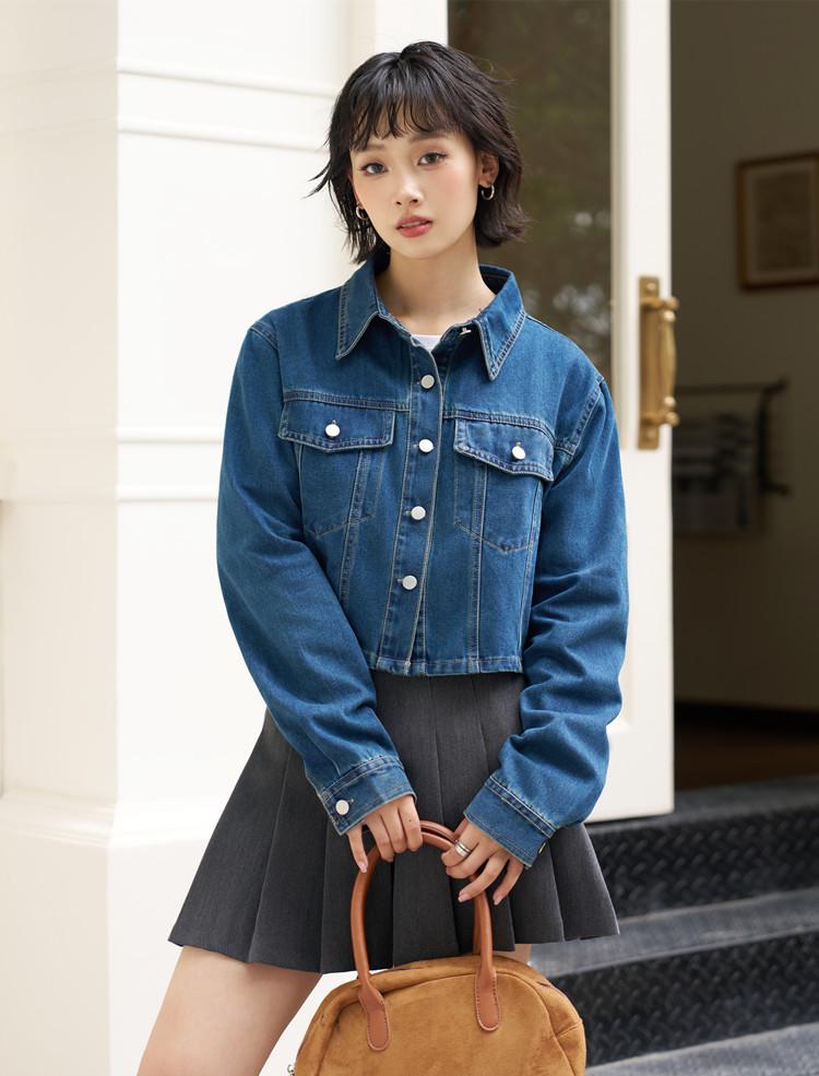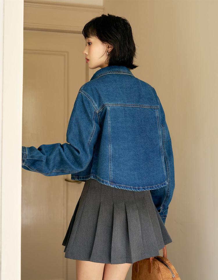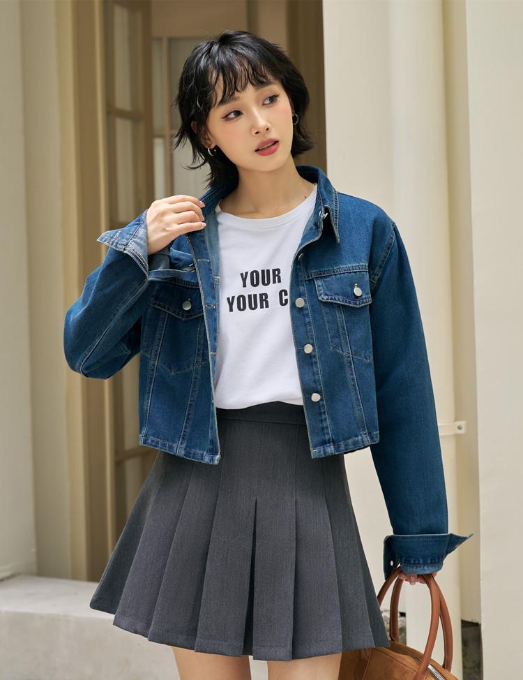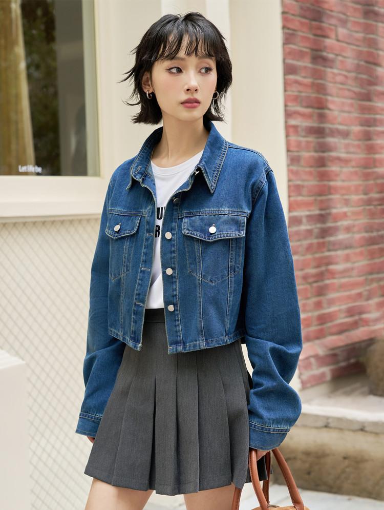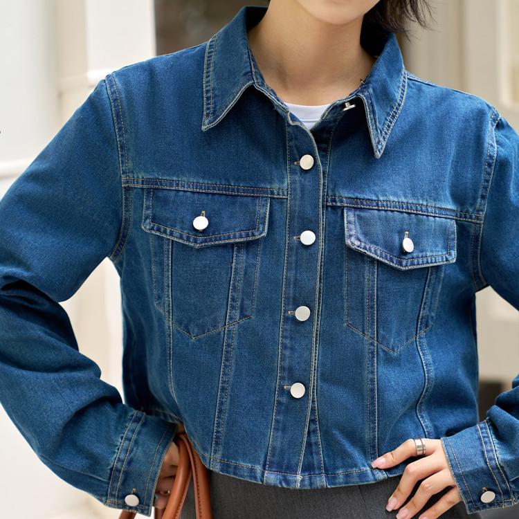 Chaqueta de mezclilla vintage para mujer, estilo delgado para primavera y otoño, diseño único, top tipo camisa corta holgada