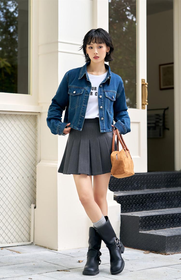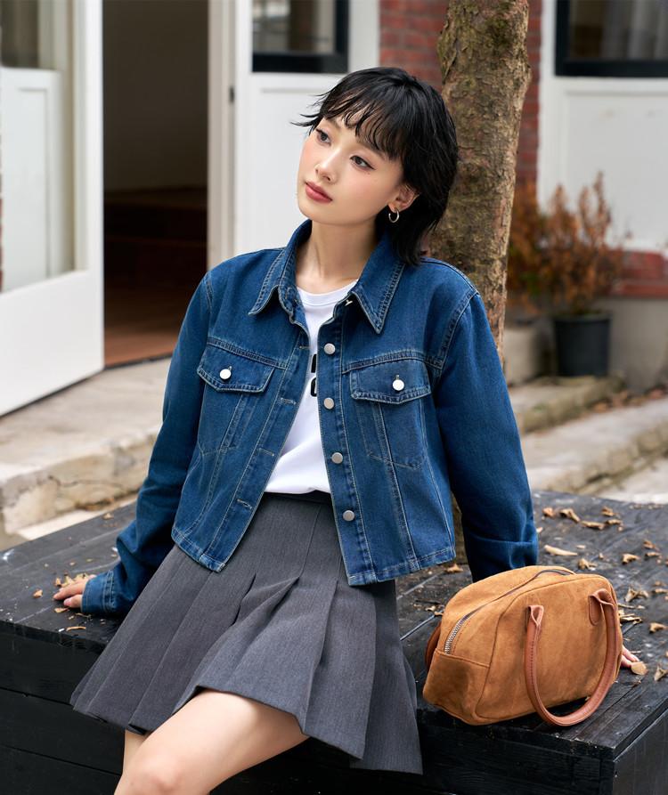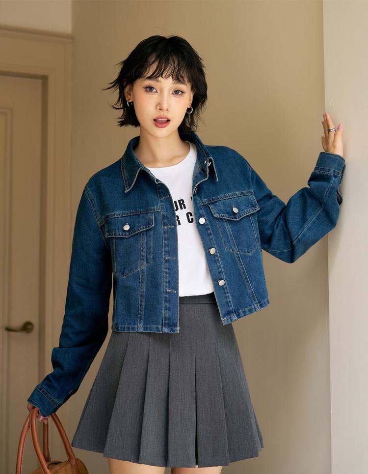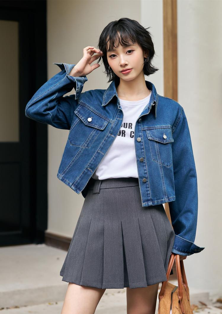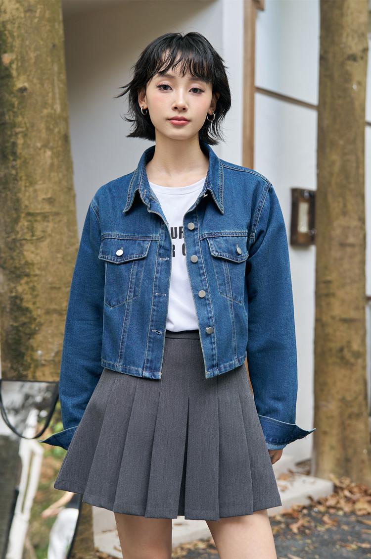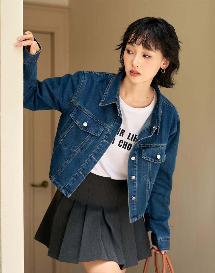 Chaqueta de mezclilla vintage para mujer, estilo delgado para primavera y otoño, diseño único, top tipo camisa corta holgada