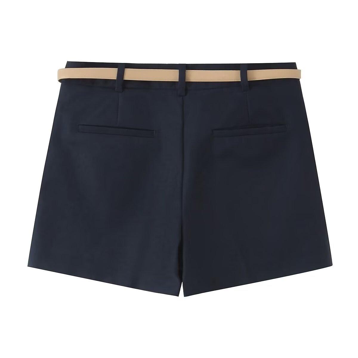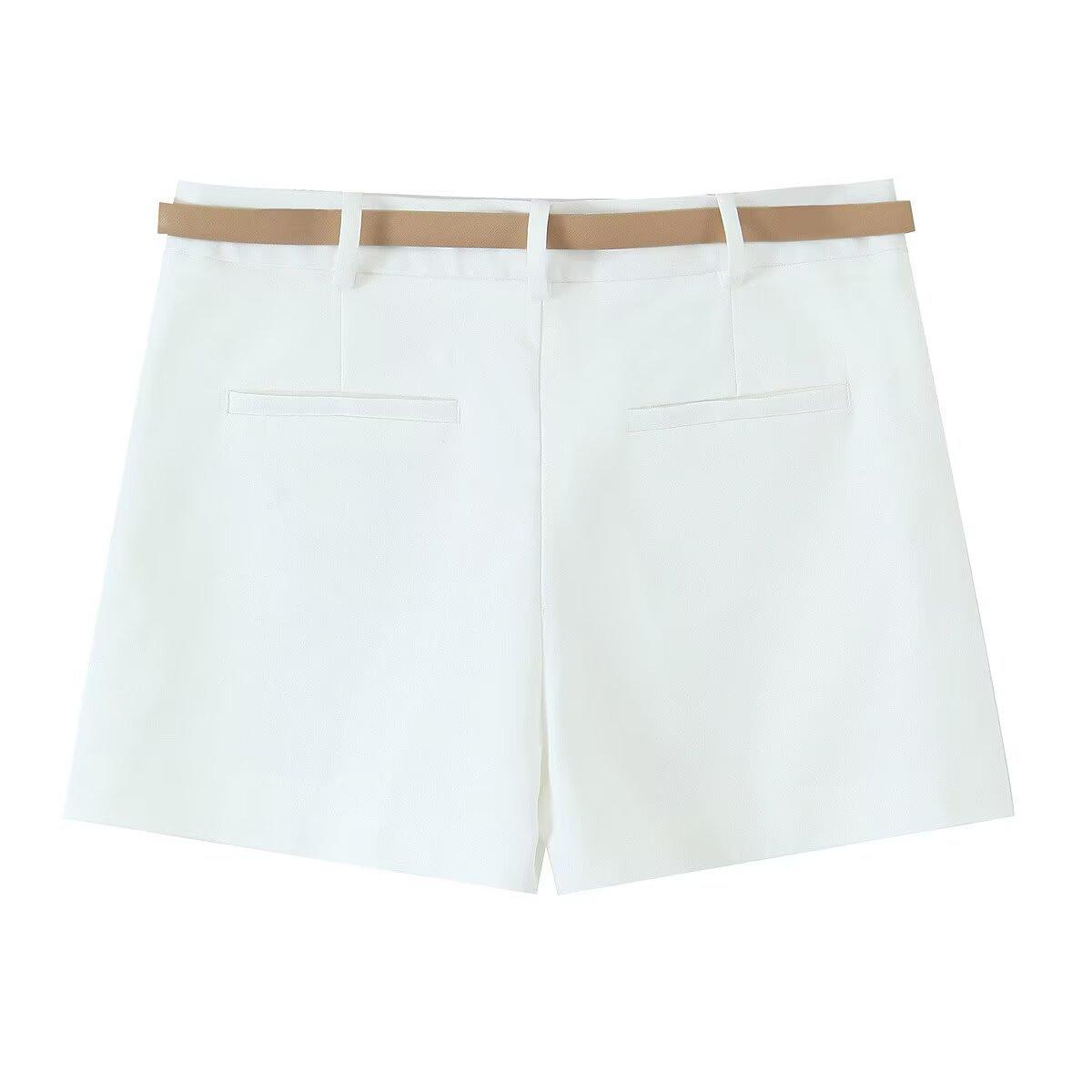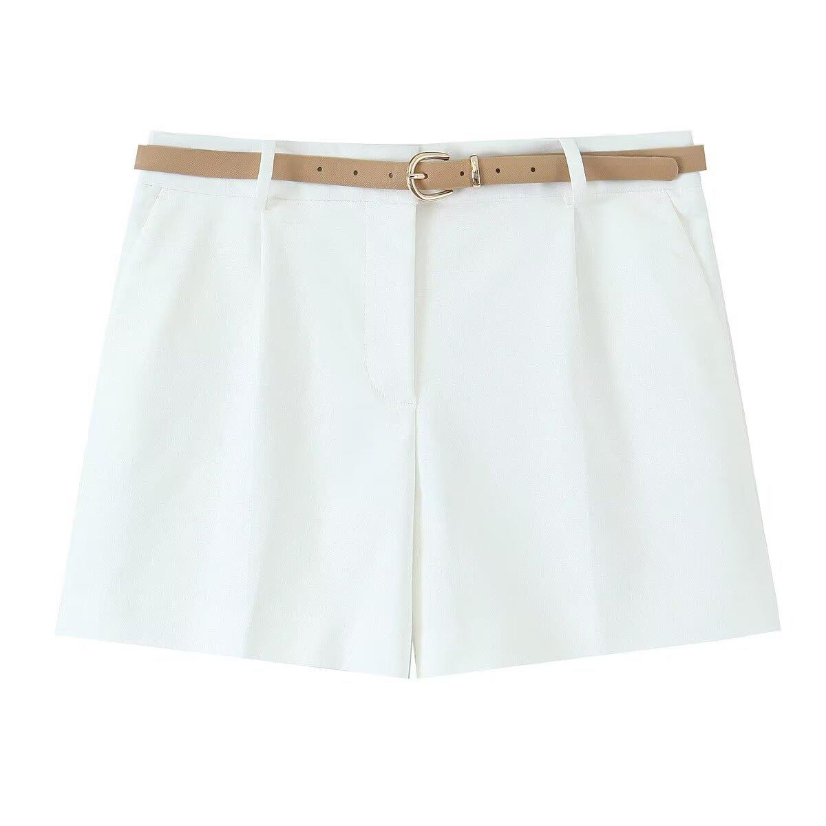 Venta al por mayor Exportación Transfronteriza Ropa de Mujer 2025 Verano Estilo Europeo y Americano Traje Casual Plisado Shorts con Cinturón para Mujer L36241
