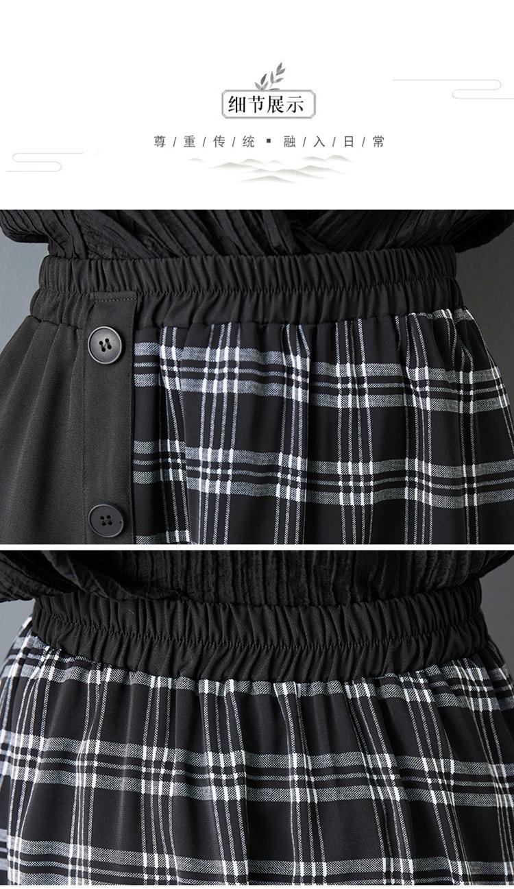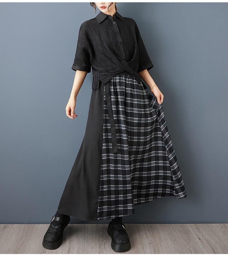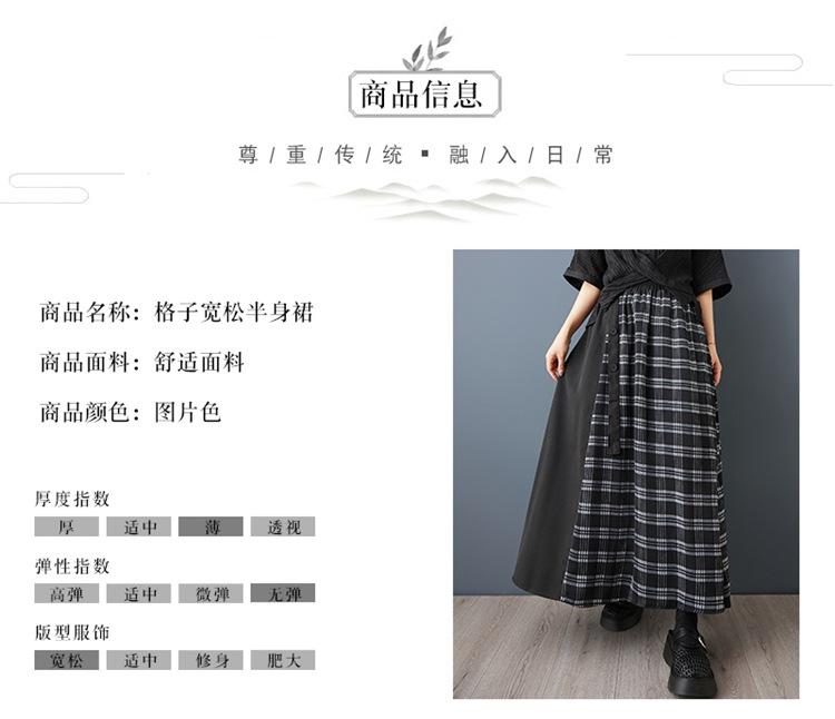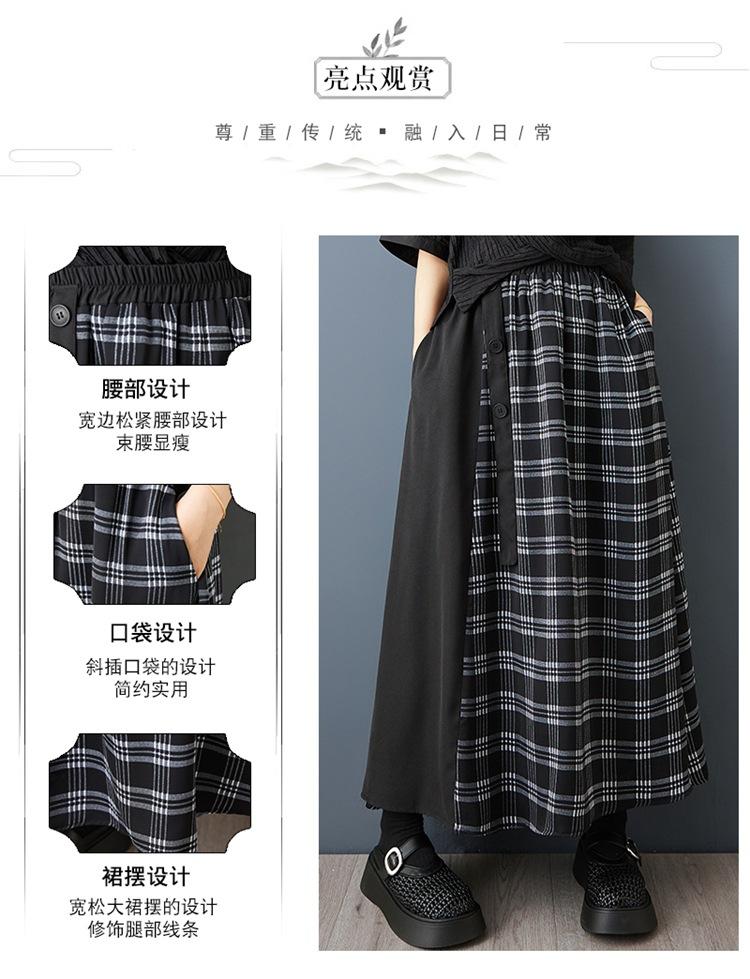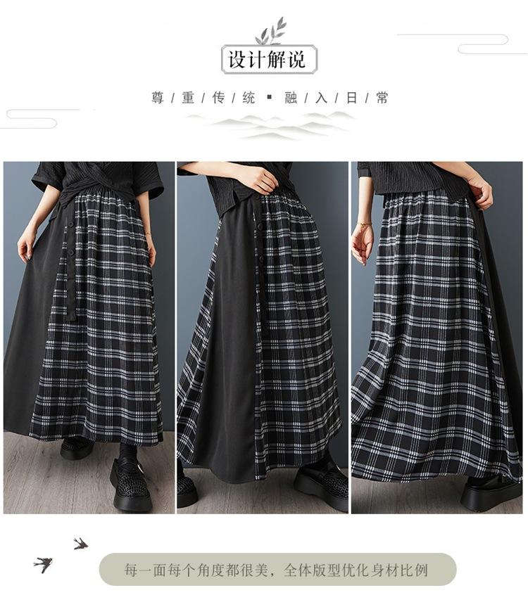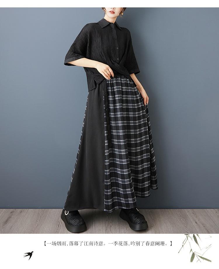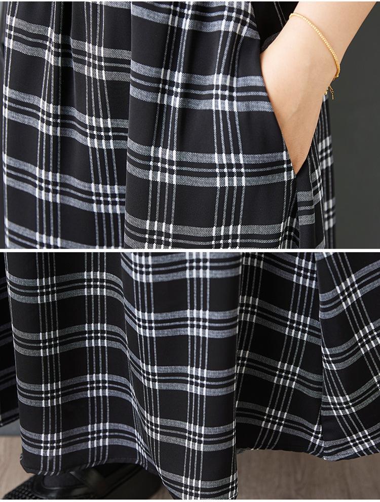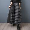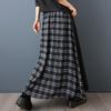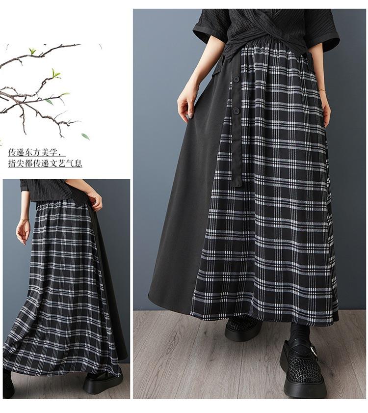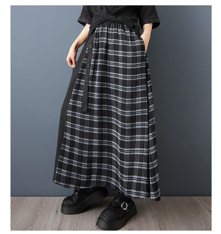 Verano 2025 Nueva Falda Artística Midi Acampanada Suelta Adelgazante Estampado de Cuadros Negros Empalmada