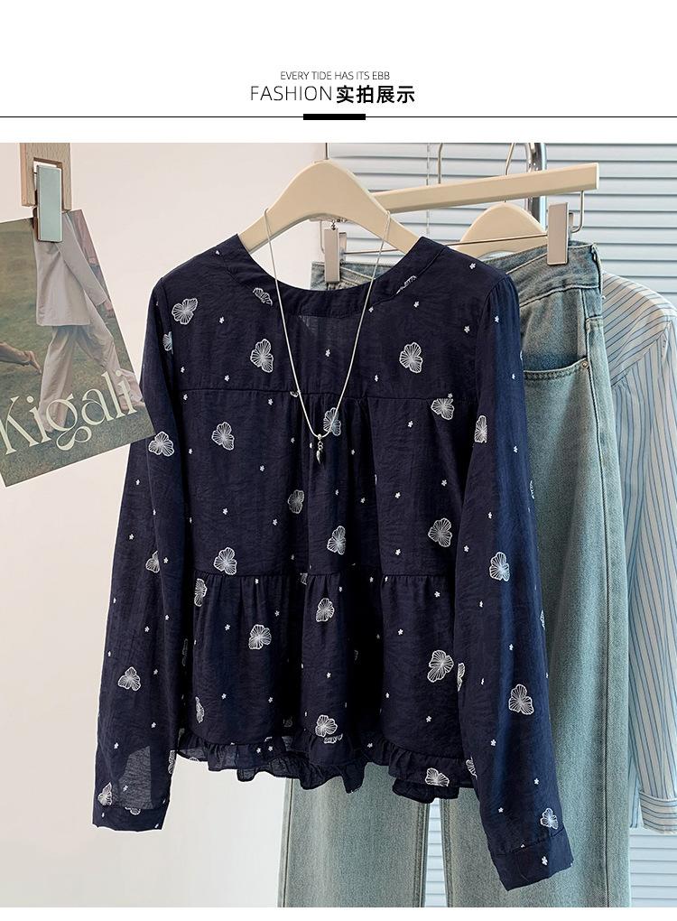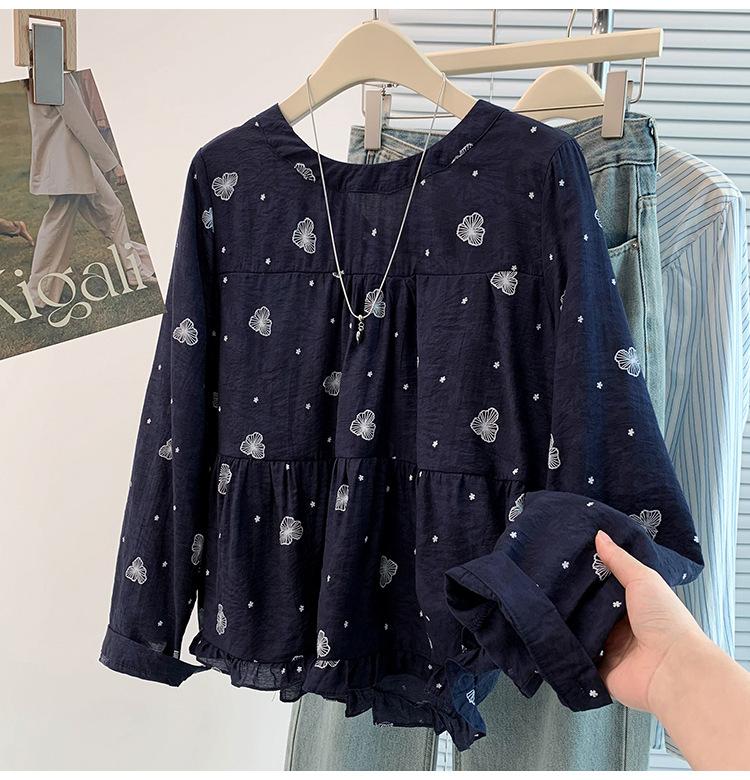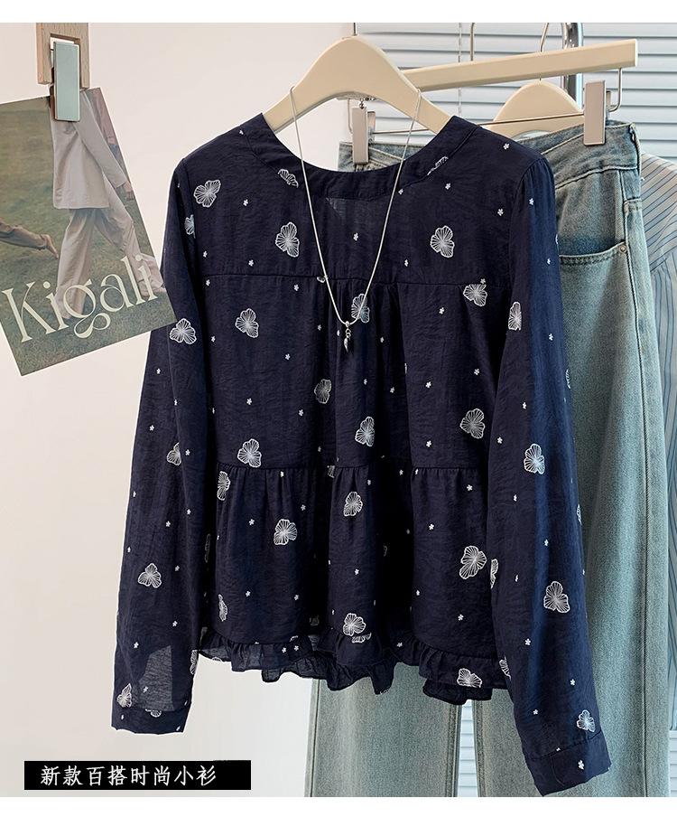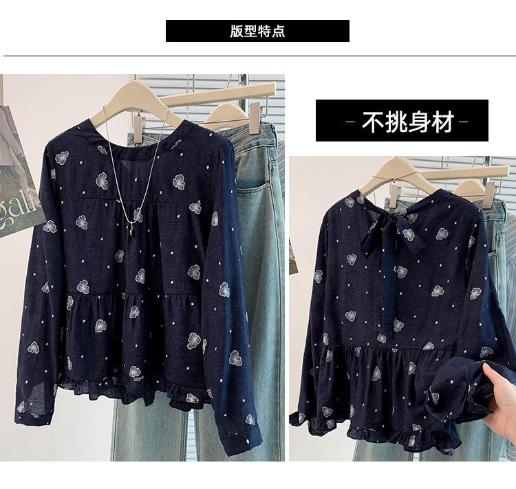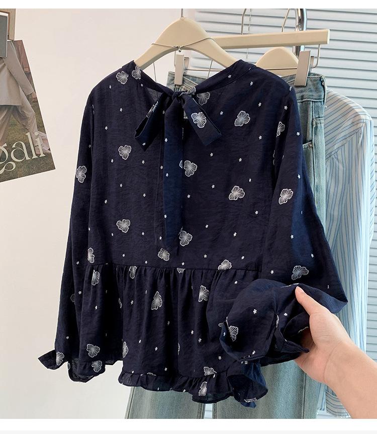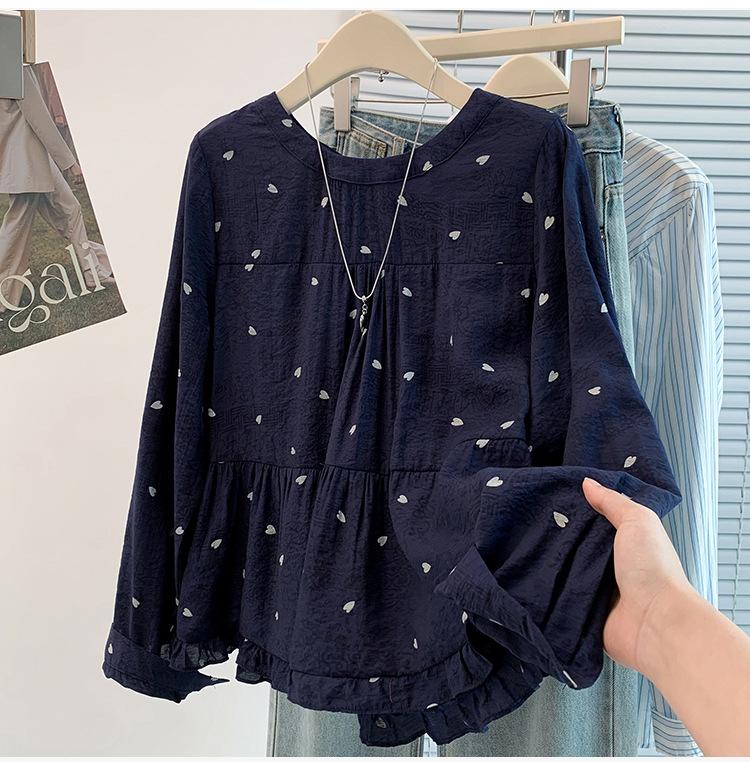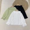 Foto Real Moda Francesa de Alta Gama Versátil Volante Adelgazante Manga Larga Camisa Mujer Sentido del Diseño Camiseta Base Top