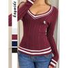 Ropa de Mujer Transfronteriza Otoño 2025 Estilo Europeo y Americano Cuello POLO Manga Larga Pulóver Diamante Top de Punto para Mujer D635804