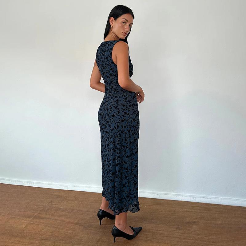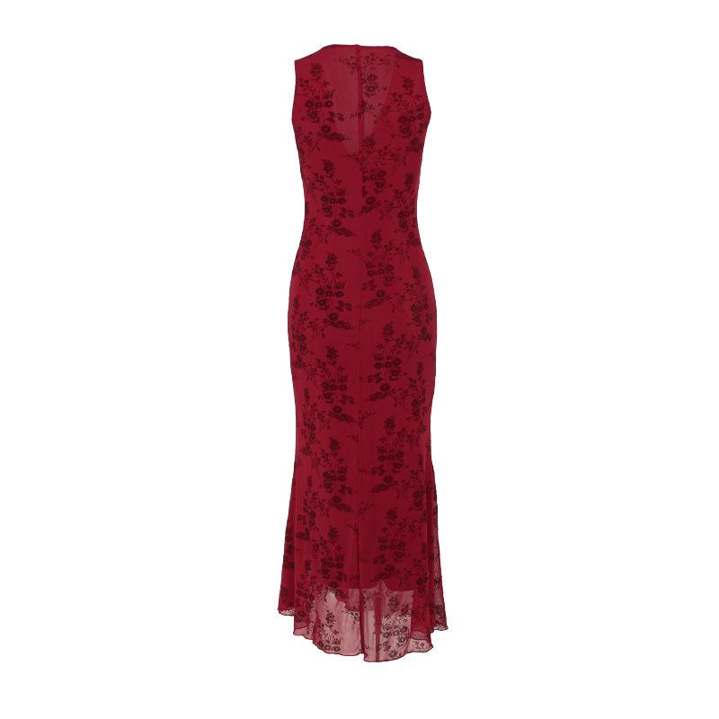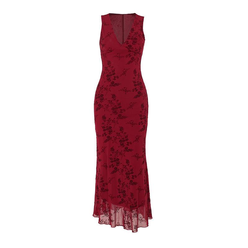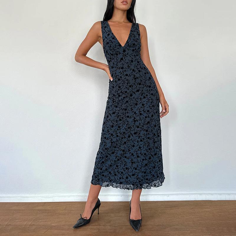 Yj24243 Verano 2024 Nuevo Falda Larga de Cintura Ajustada Estilo Europeo y Americano Moda Vestido de Tirantes Estampado Cuello en V para Mujer