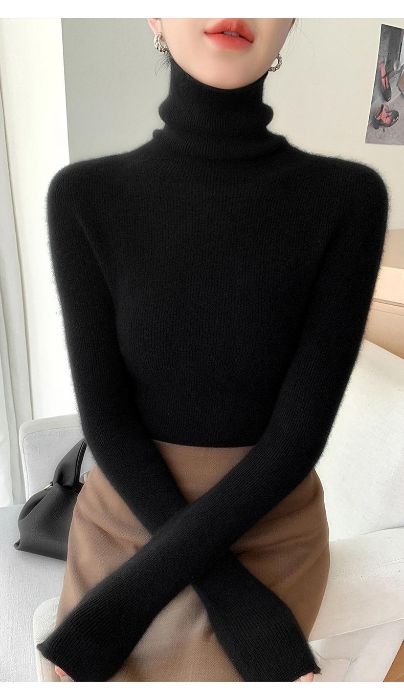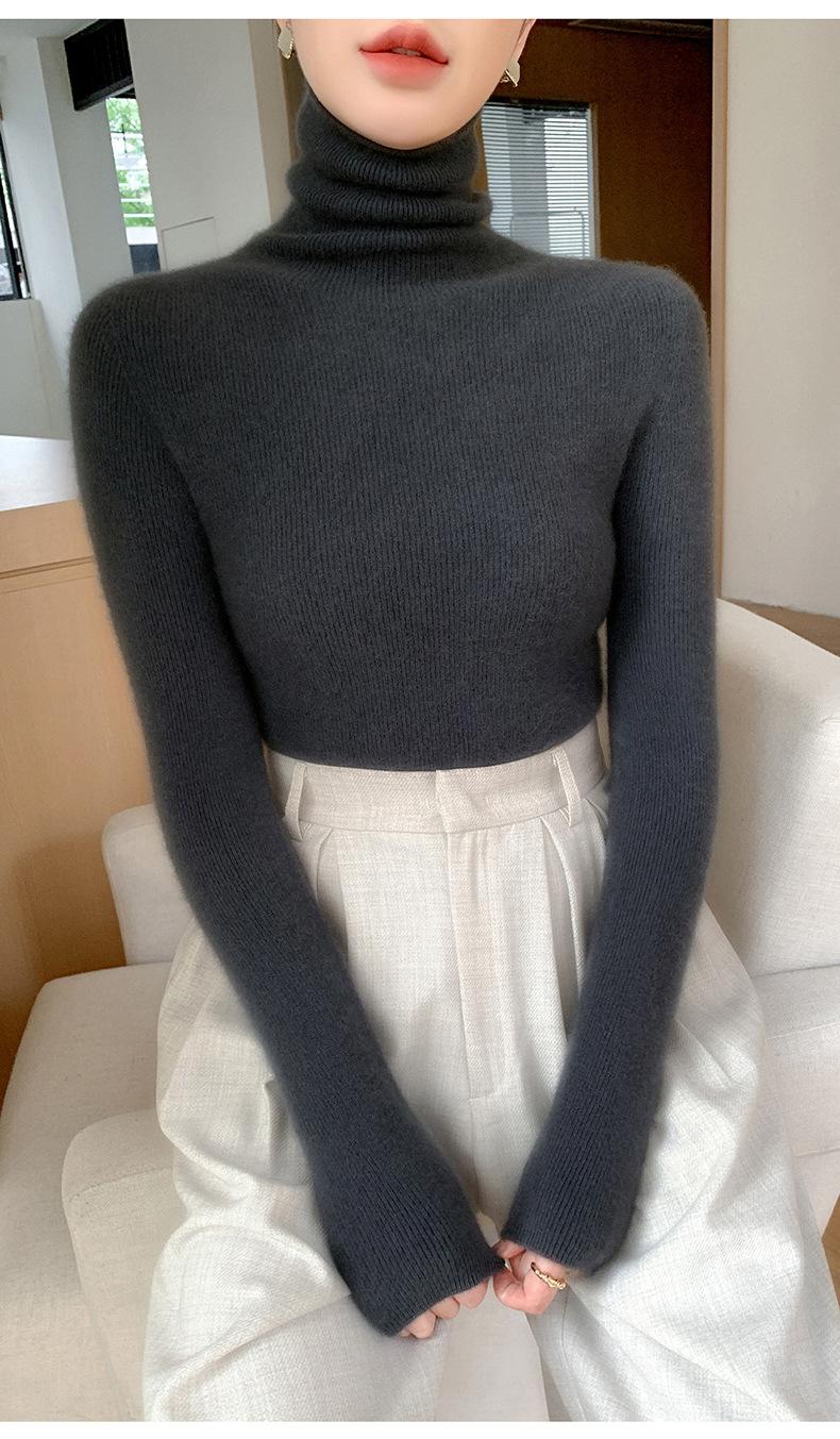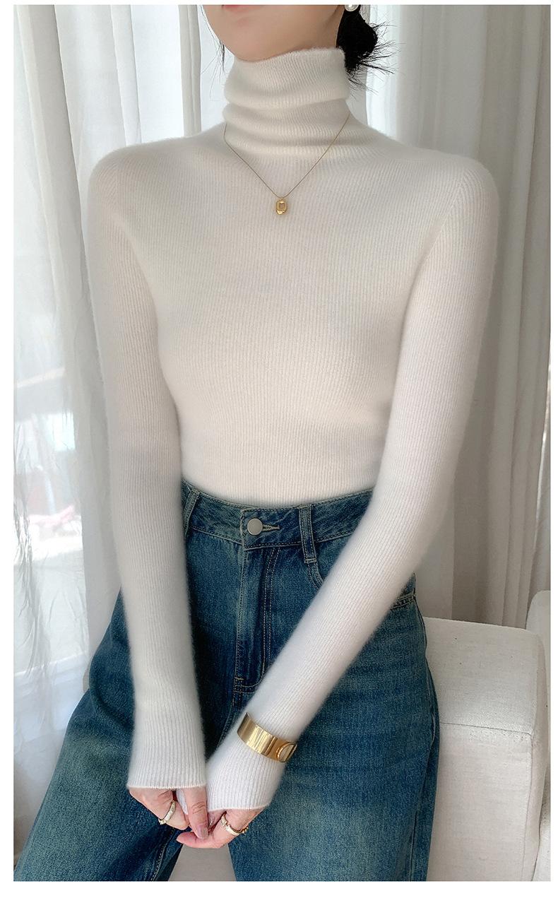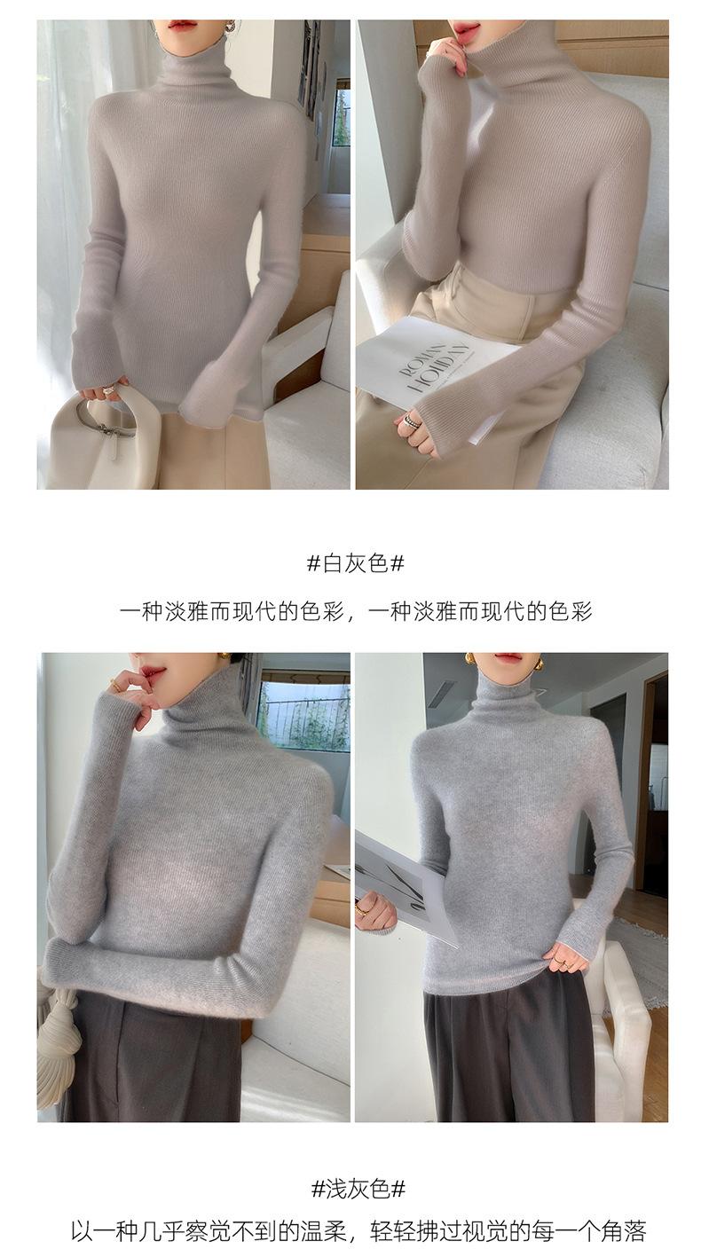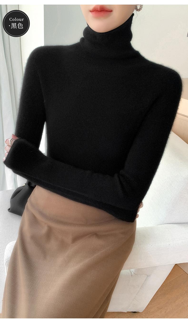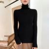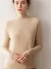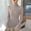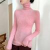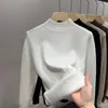 Nueva Otoño/Invierno Color Sólido Cachemira Tejido Capa Base Ajuste Slim Suave y Delicado con la Piel Top Pulóver de Manga Larga para Mujer Ropa Interior