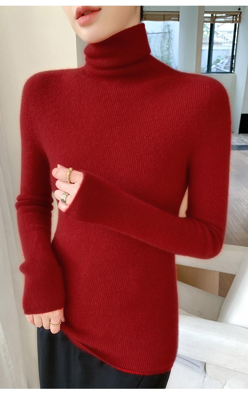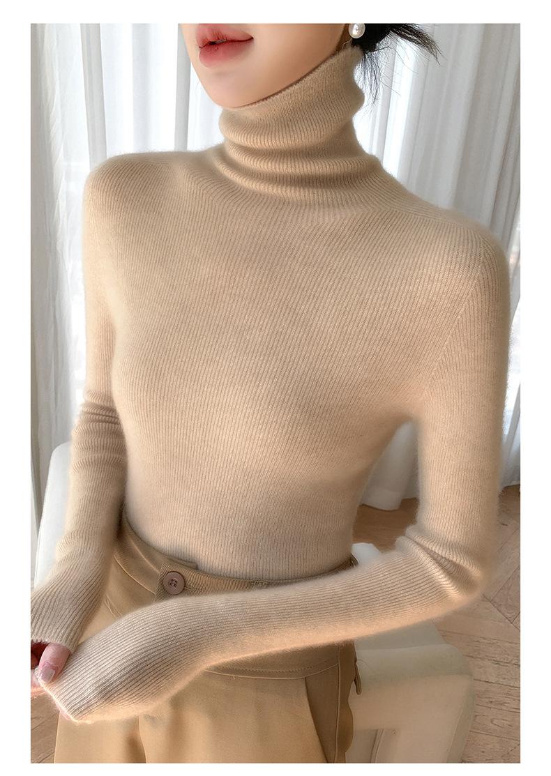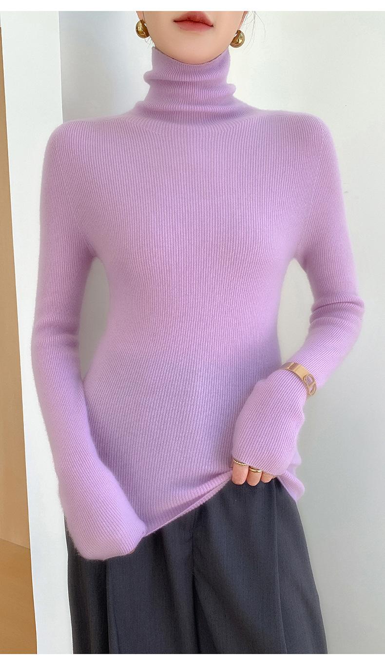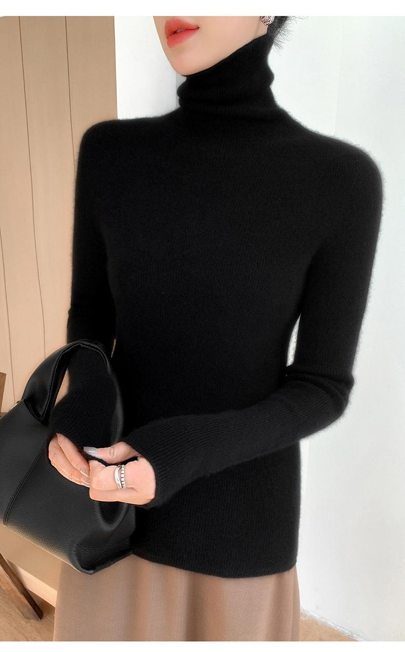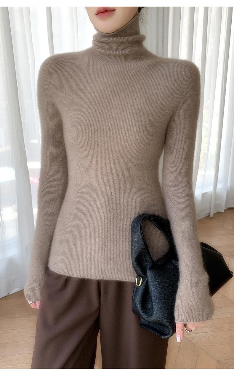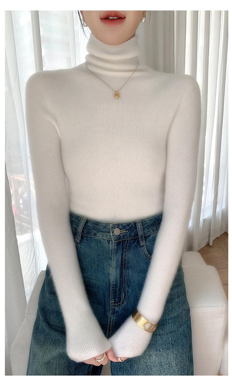 Nueva Otoño/Invierno Color Sólido Cachemira Tejido Capa Base Ajuste Slim Suave y Delicado con la Piel Top Pulóver de Manga Larga para Mujer Ropa Interior