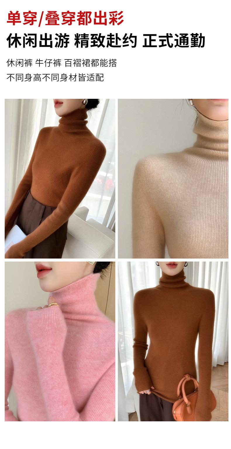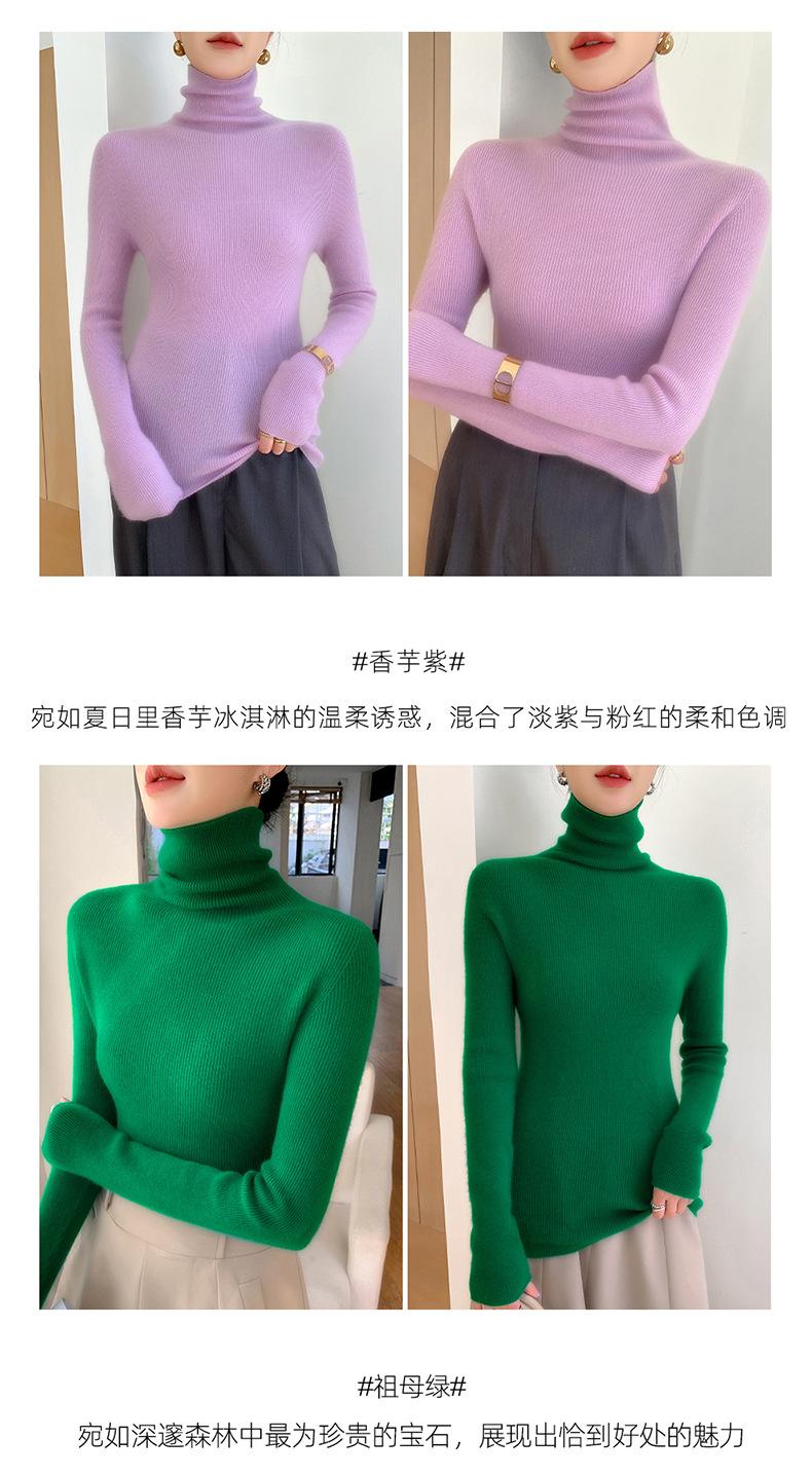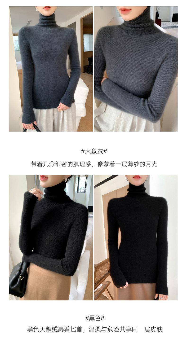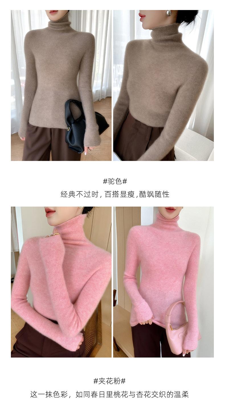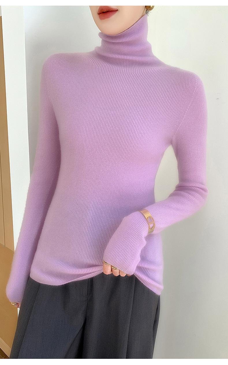 Nueva Otoño/Invierno Color Sólido Cachemira Tejido Capa Base Ajuste Slim Suave y Delicado con la Piel Top Pulóver de Manga Larga para Mujer Ropa Interior