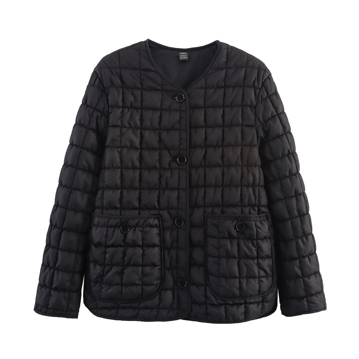 Z Estilo Europeo y Americano Transfronterizo 2025 Nueva Moda Temperamento Venta al por Mayor Chaqueta Corta Texturizada Negra Acolchada Algodón Nube Tridimensional