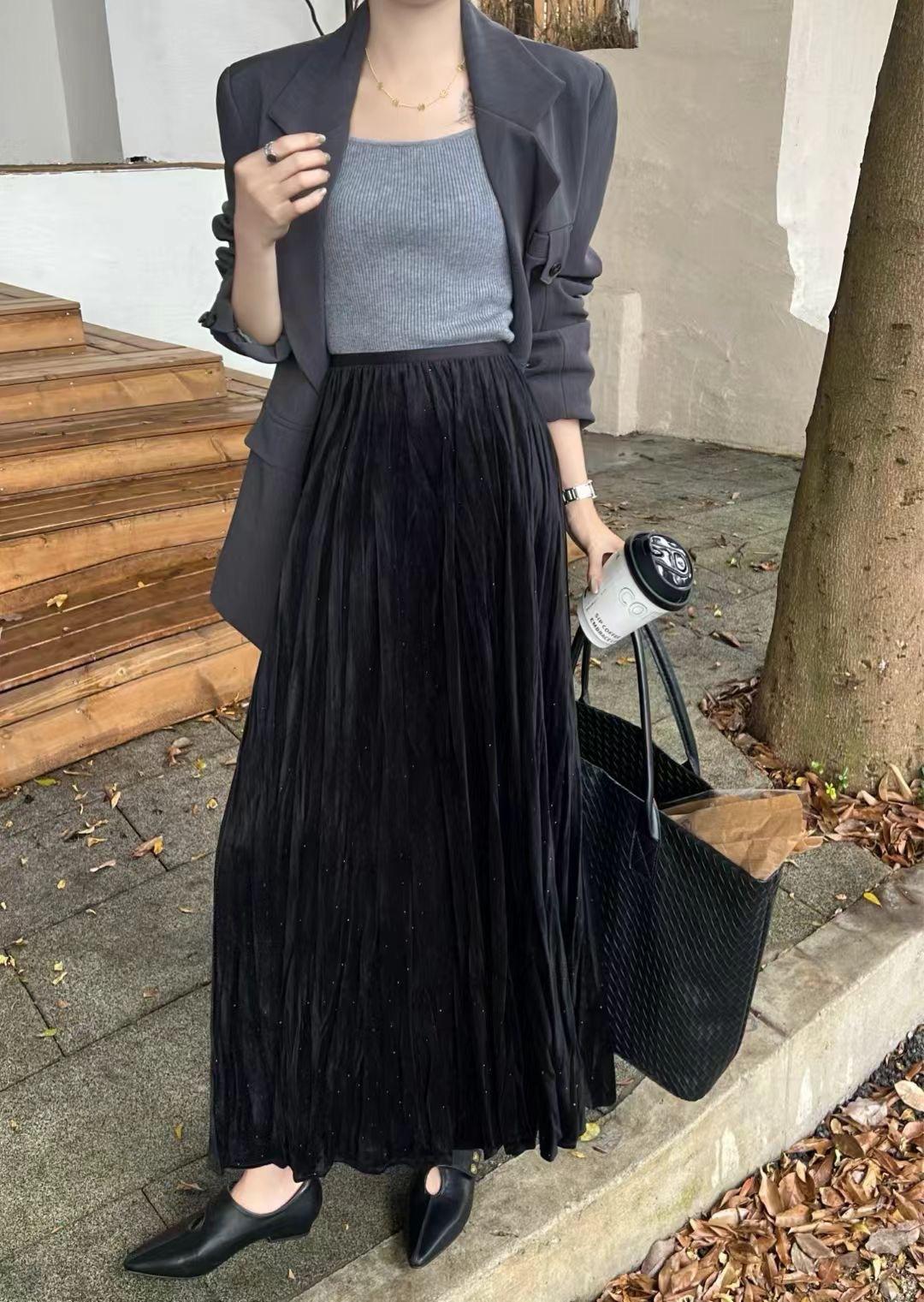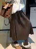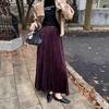 Nueva Falda Midi Acampanada de Terciopelo Plisada Simple de Estilo Coreano de Otoño/Invierno para Mujer, Suelta, de Cintura Alta Adelgazante, Versátil