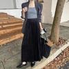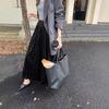 Nueva Falda Midi Acampanada de Terciopelo con Pliegues Simple de Estilo Coreano de Otoño/Invierno para Mujer, Holgada, de Cintura Alta Adelgazante, Versátil