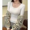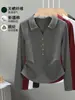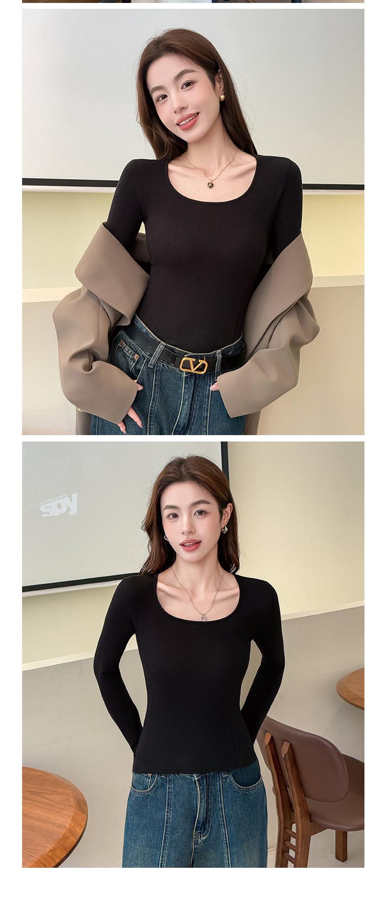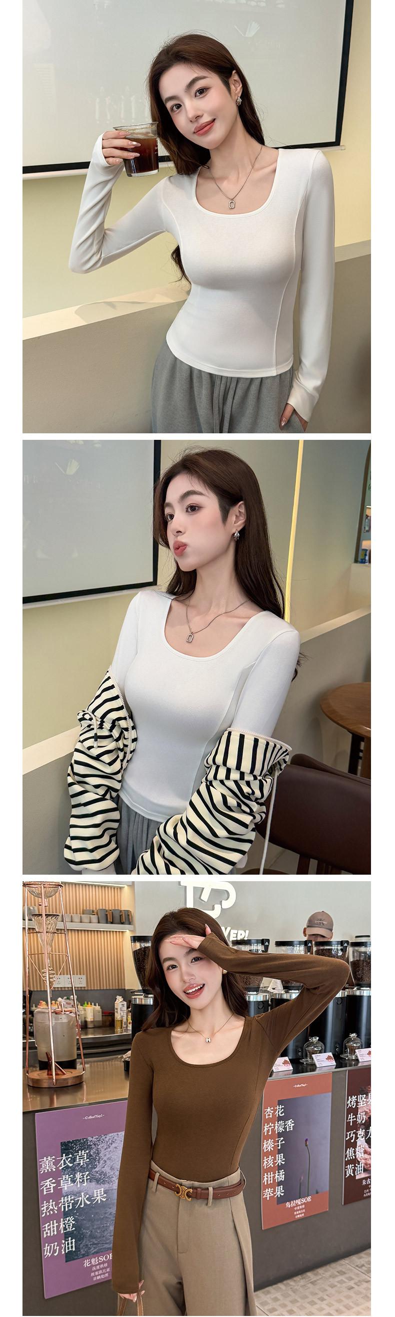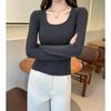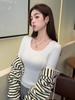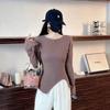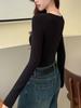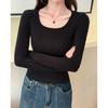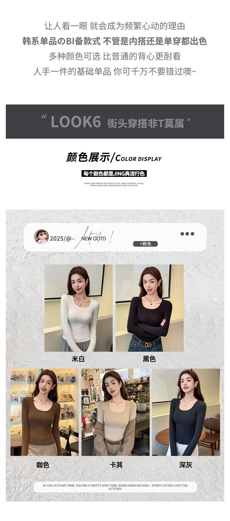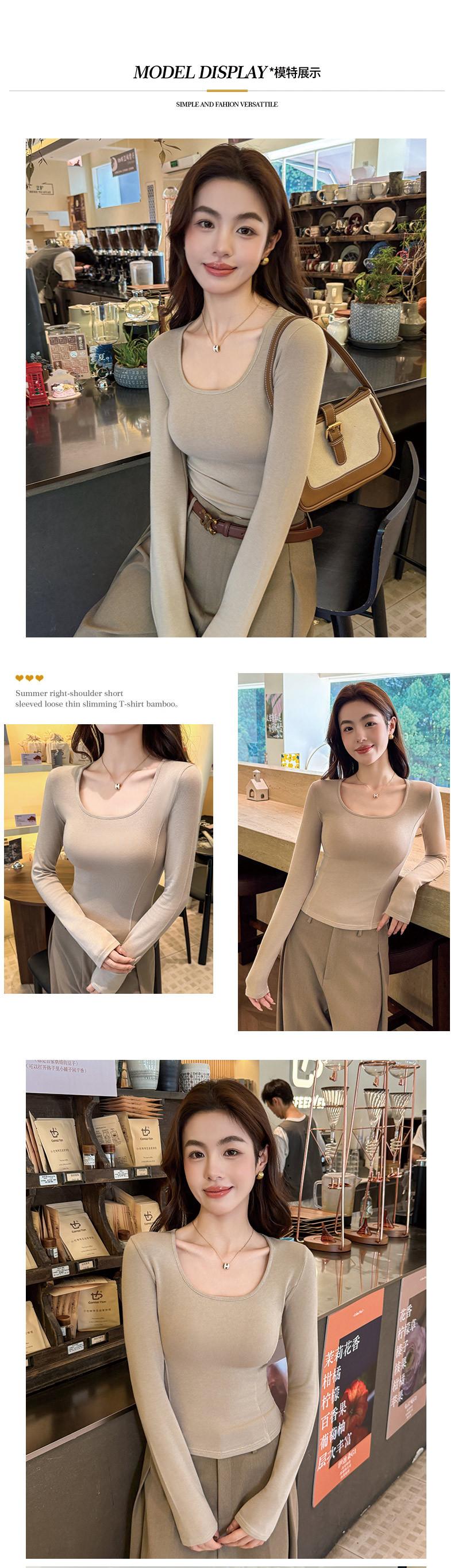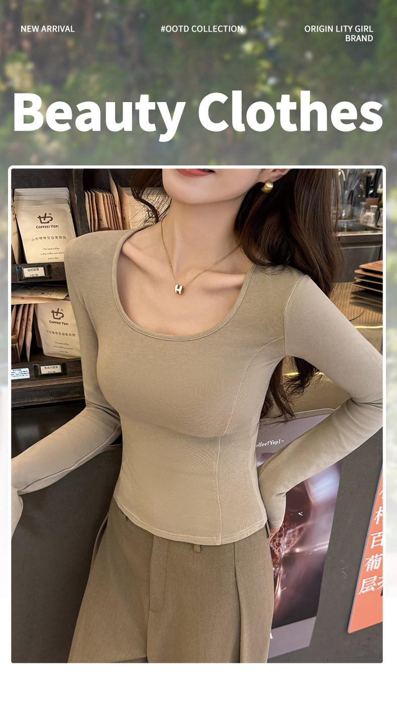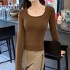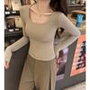 Playera caqui de manga larga para mujer 2025 principios de otoño nueva corte ajustado cuello U top chica picante americana capa interior camiseta base