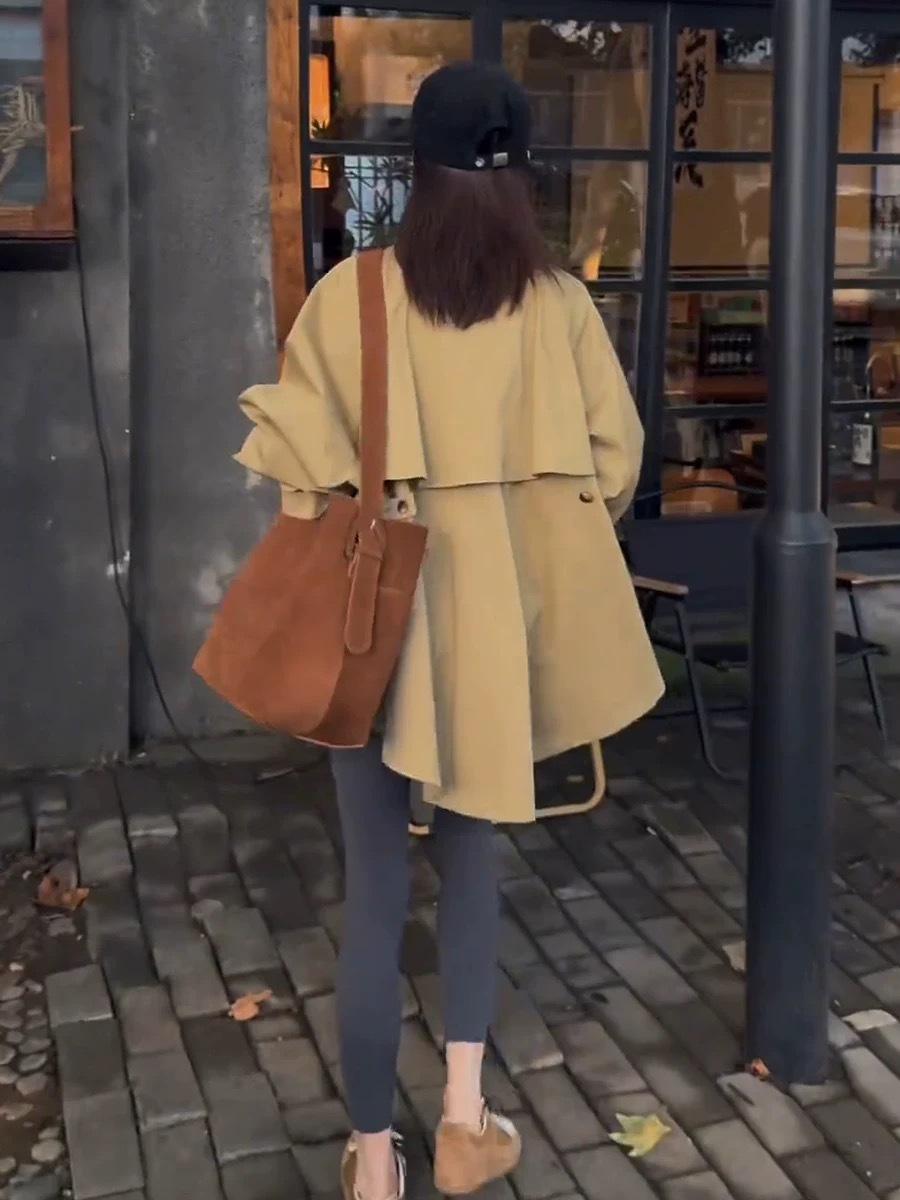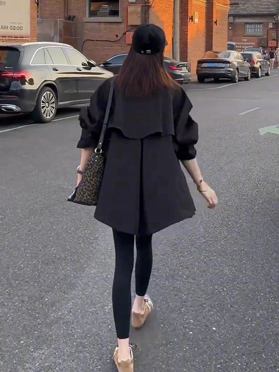 Abrigo Trench de Alta Gama para Mujer 2025 Primavera y Otoño Nuevo Estilo Coreano Temperamento Petite Casual Suelto Largo Medio Top