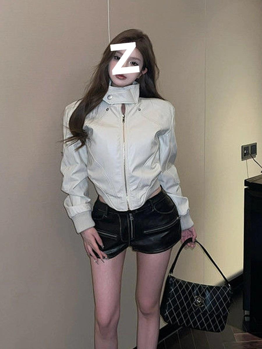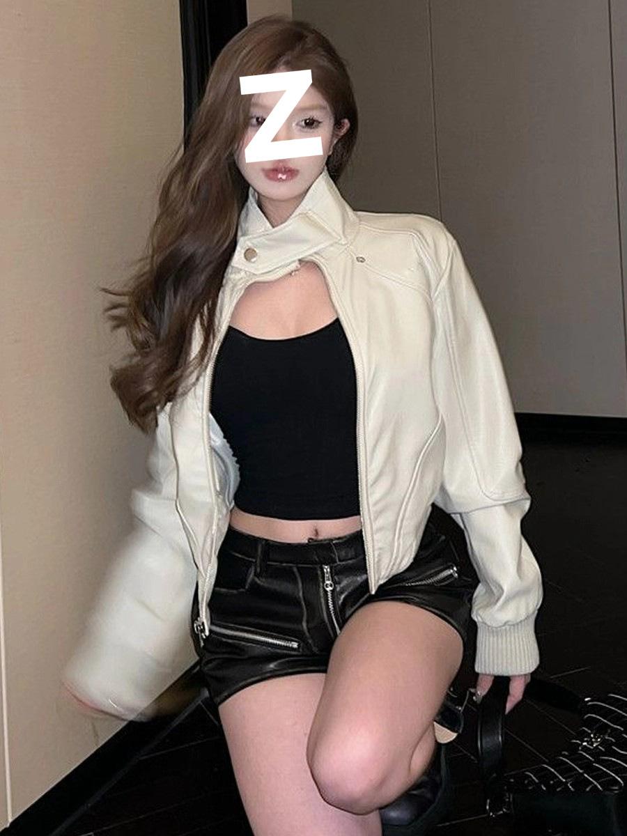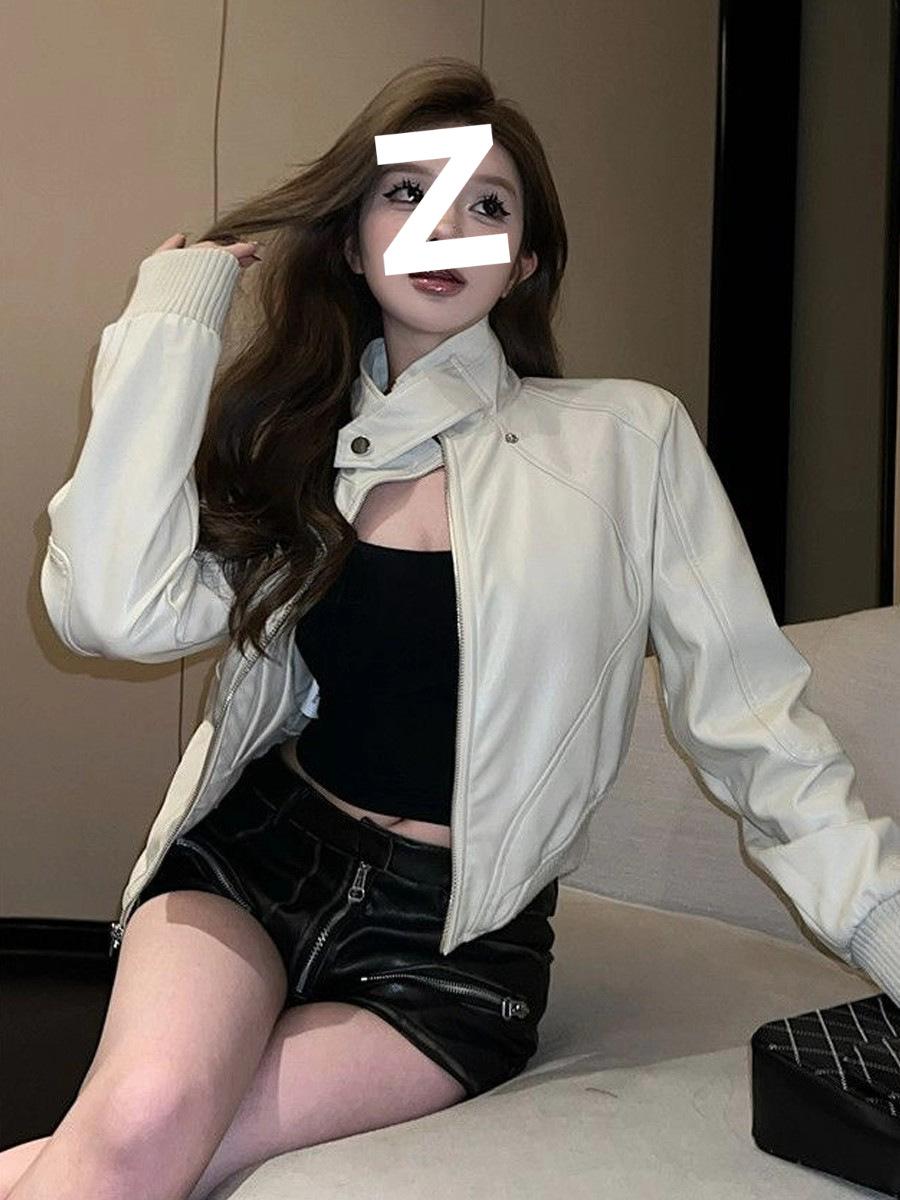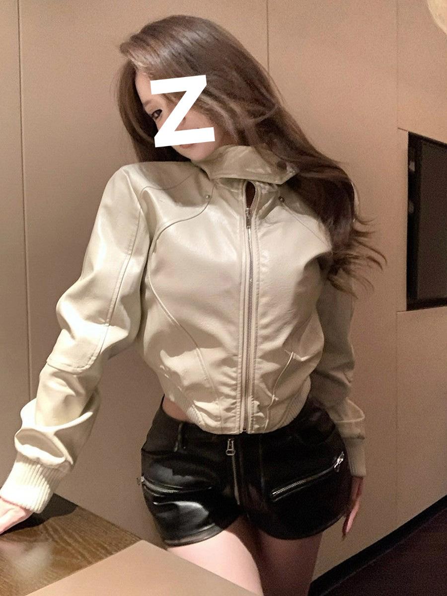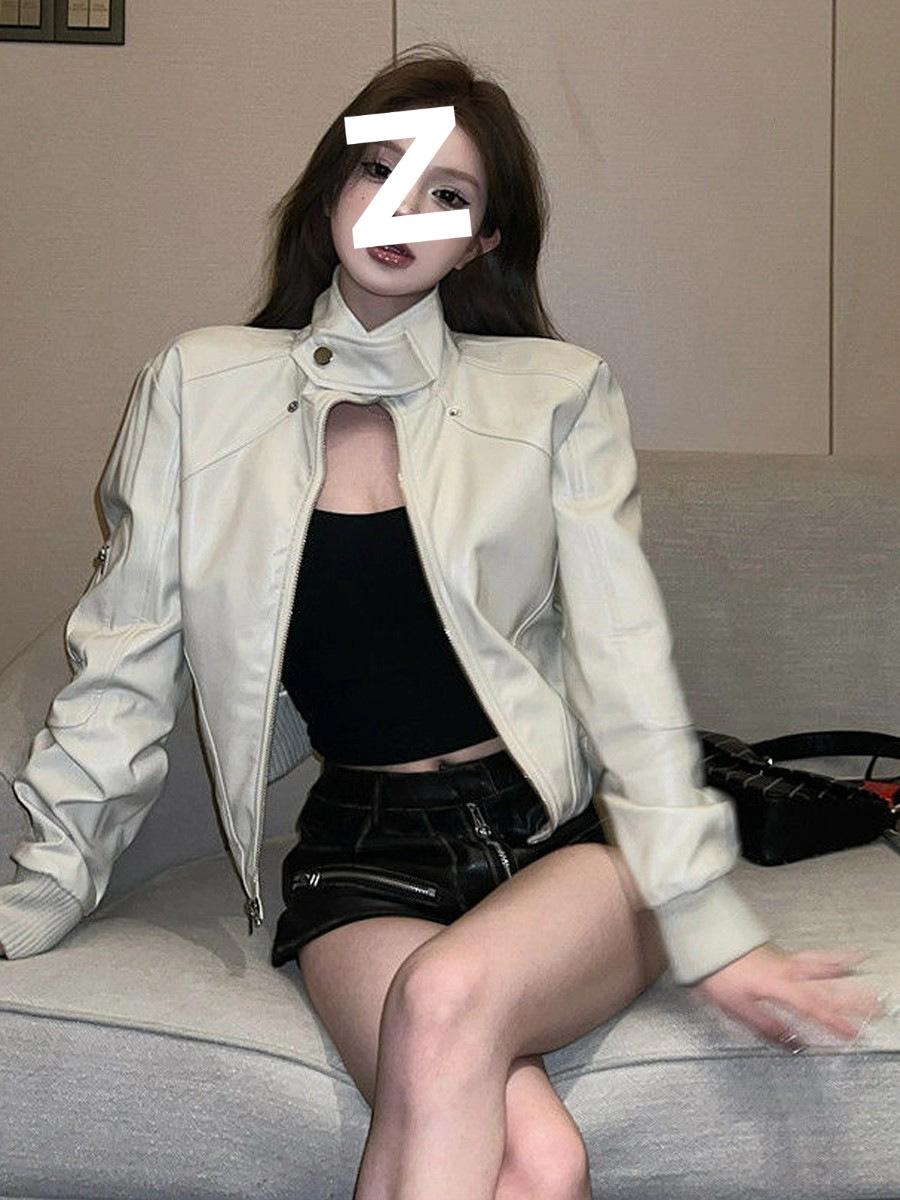 Chaqueta Corta de Cuero Retro Americano para Mujer Primavera y Otoño Nuevo Diseño Holgado Versátil Sentido Nicho Chica Caliente Chaqueta de Motociclista Tendencia