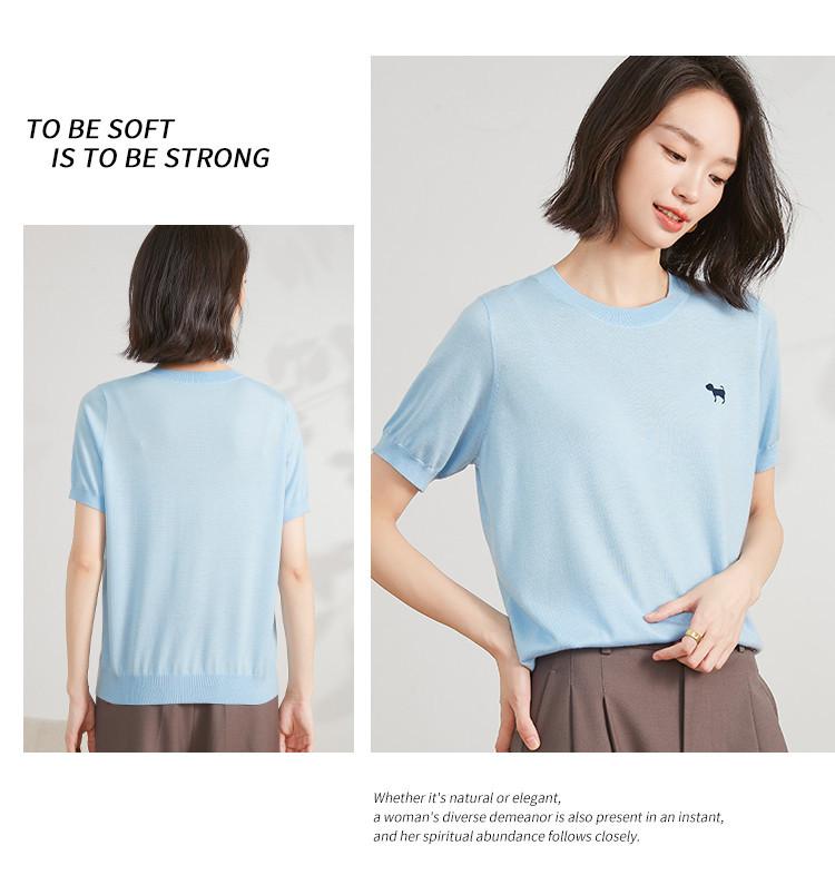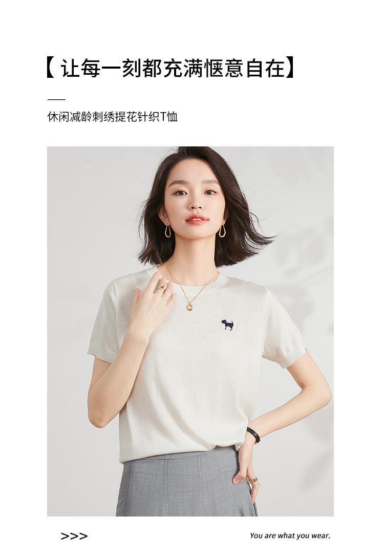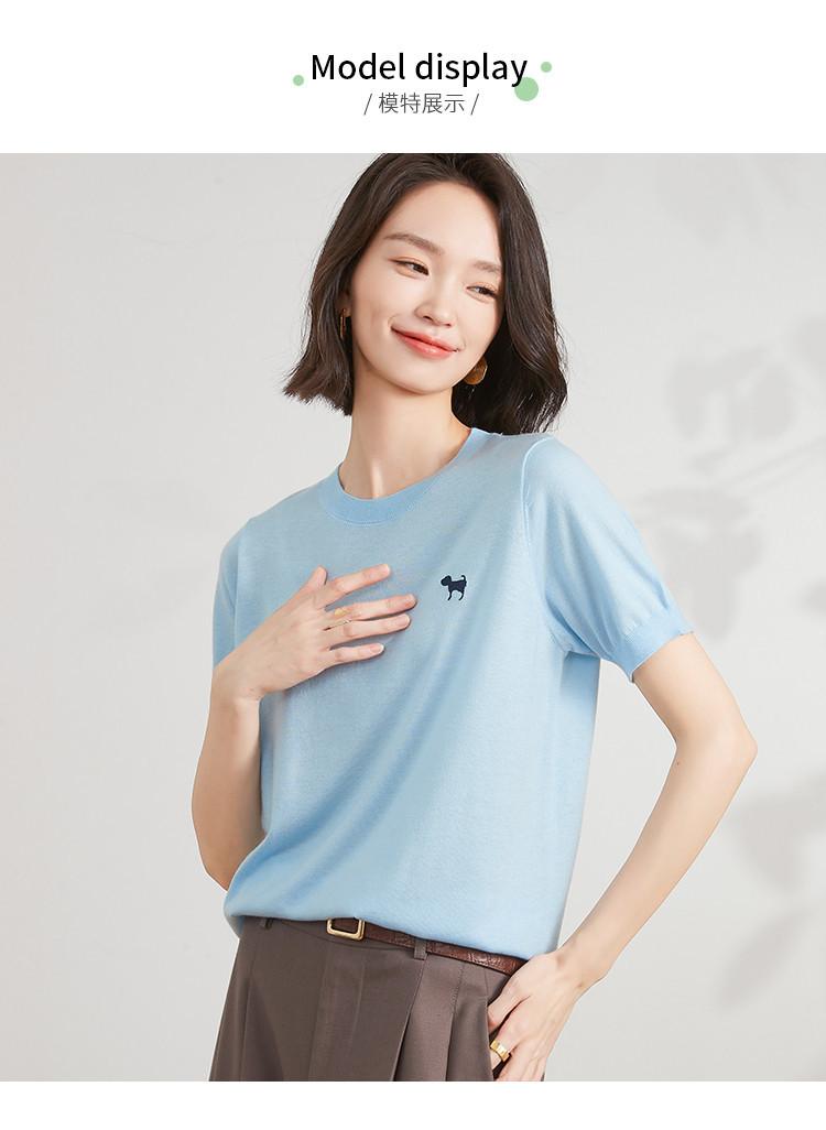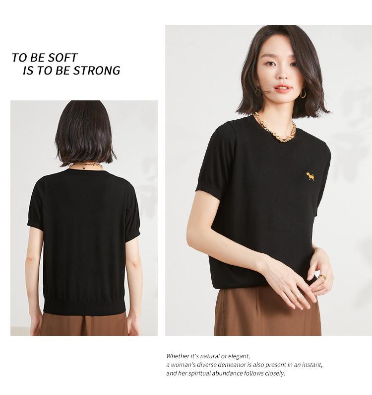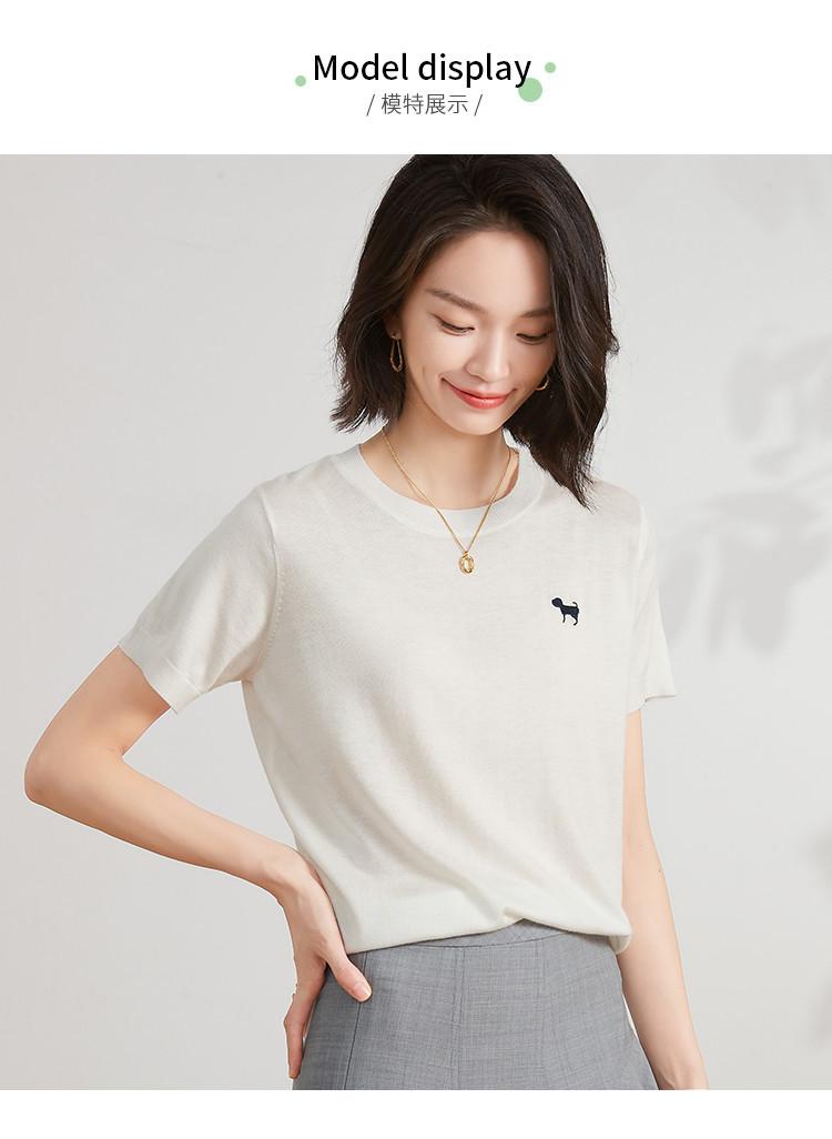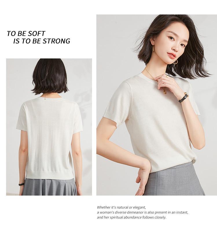 Playera de Manga Corta de Seda de Morera para Mujer, Nueva Playera de Verano de Seda de Manga Corta de Ajuste Slim, Hombro Regular, Simple, Básica, Versátil para Mujer