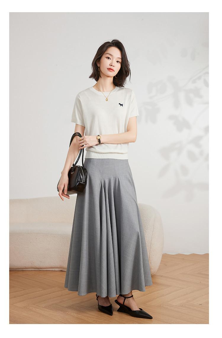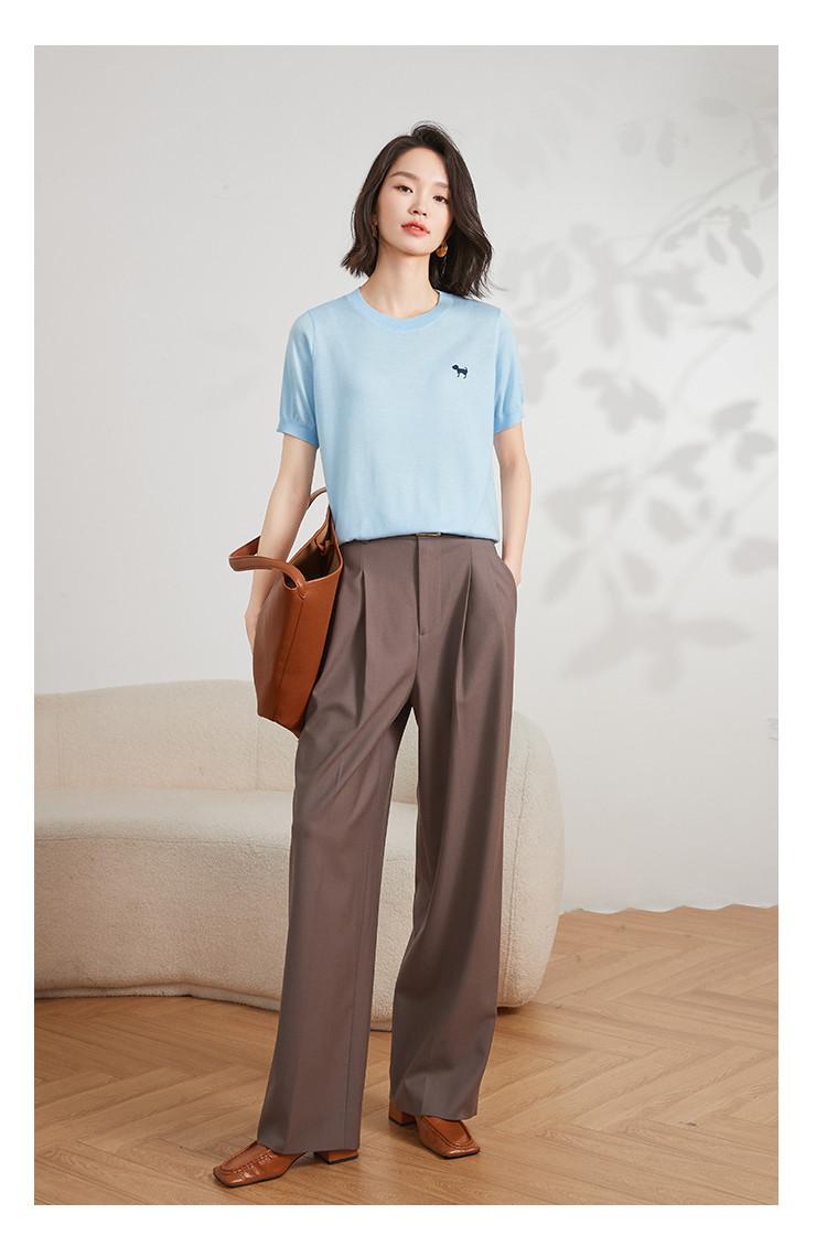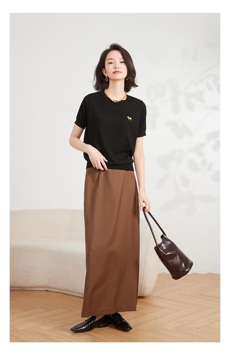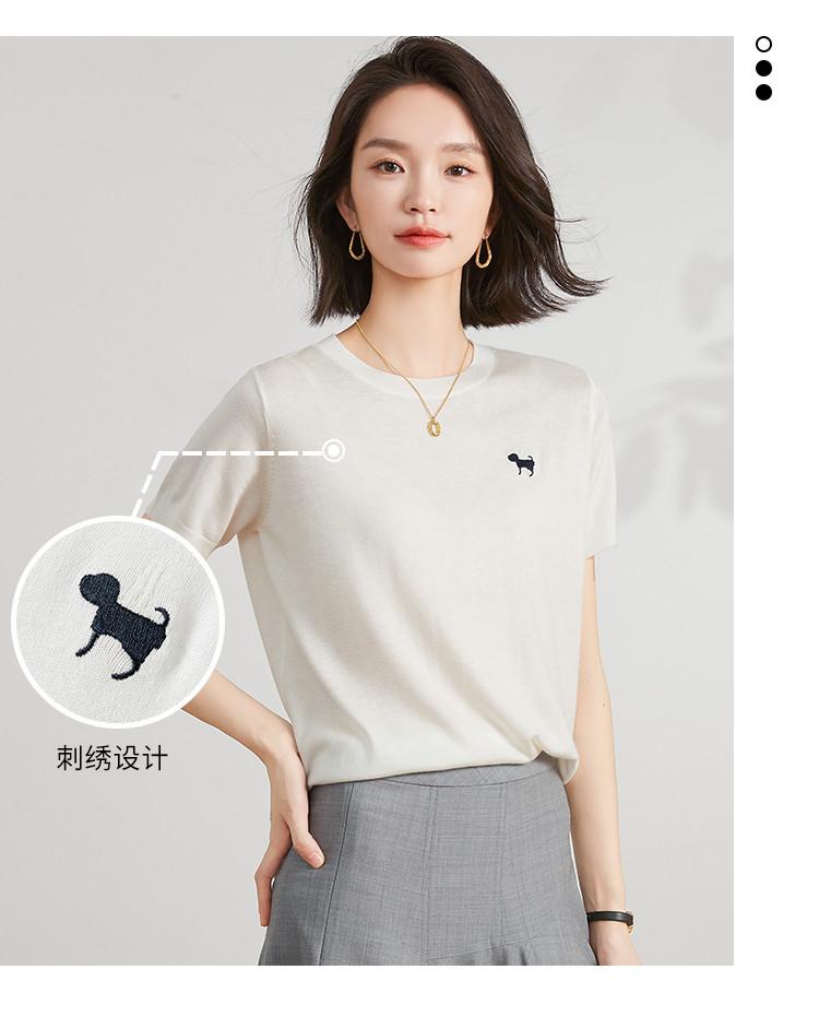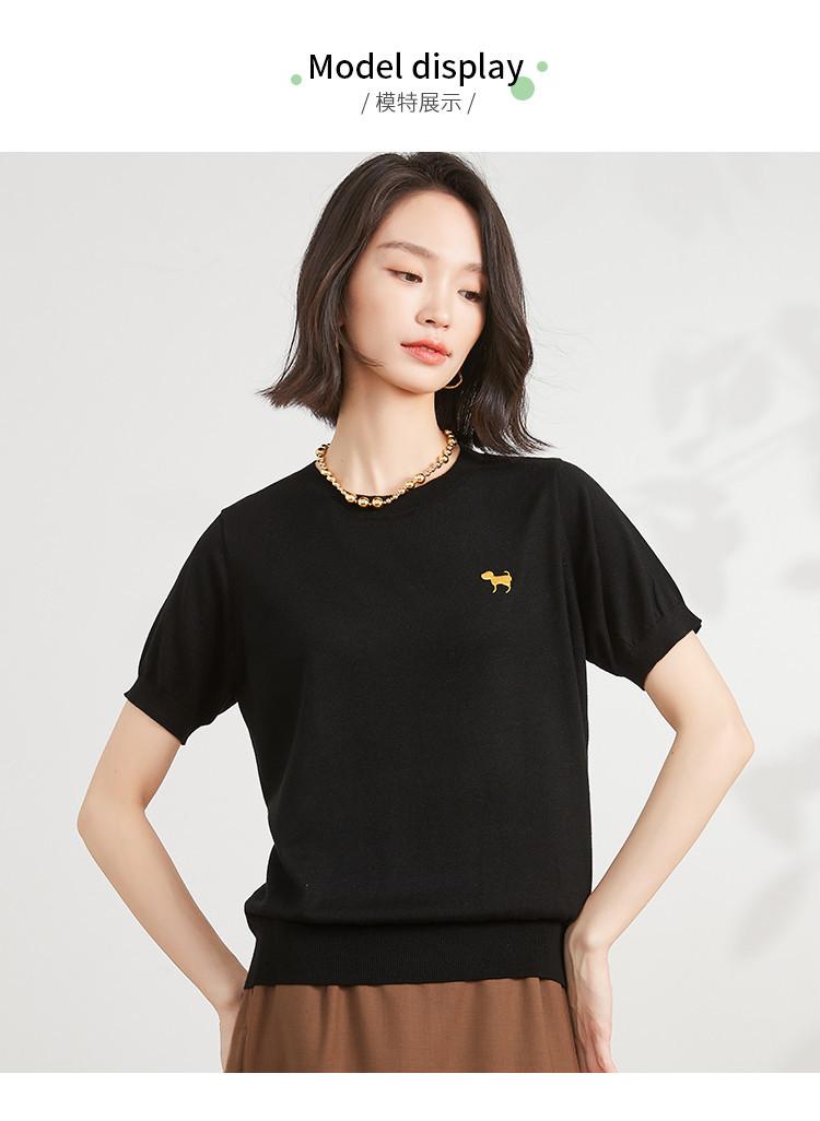 Playera de Manga Corta de Seda de Morera para Mujer, Nueva Playera de Verano de Seda de Manga Corta de Ajuste Slim, Hombro Regular, Simple, Básica, Versátil para Mujer