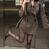 Gabardina retro de estilo británico de silueta pequeña para mujer, otoño, nueva personalidad, abertura, cuello alto, ropa exterior casual de alta gama