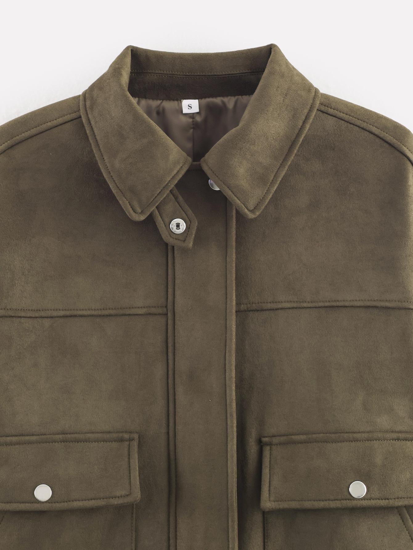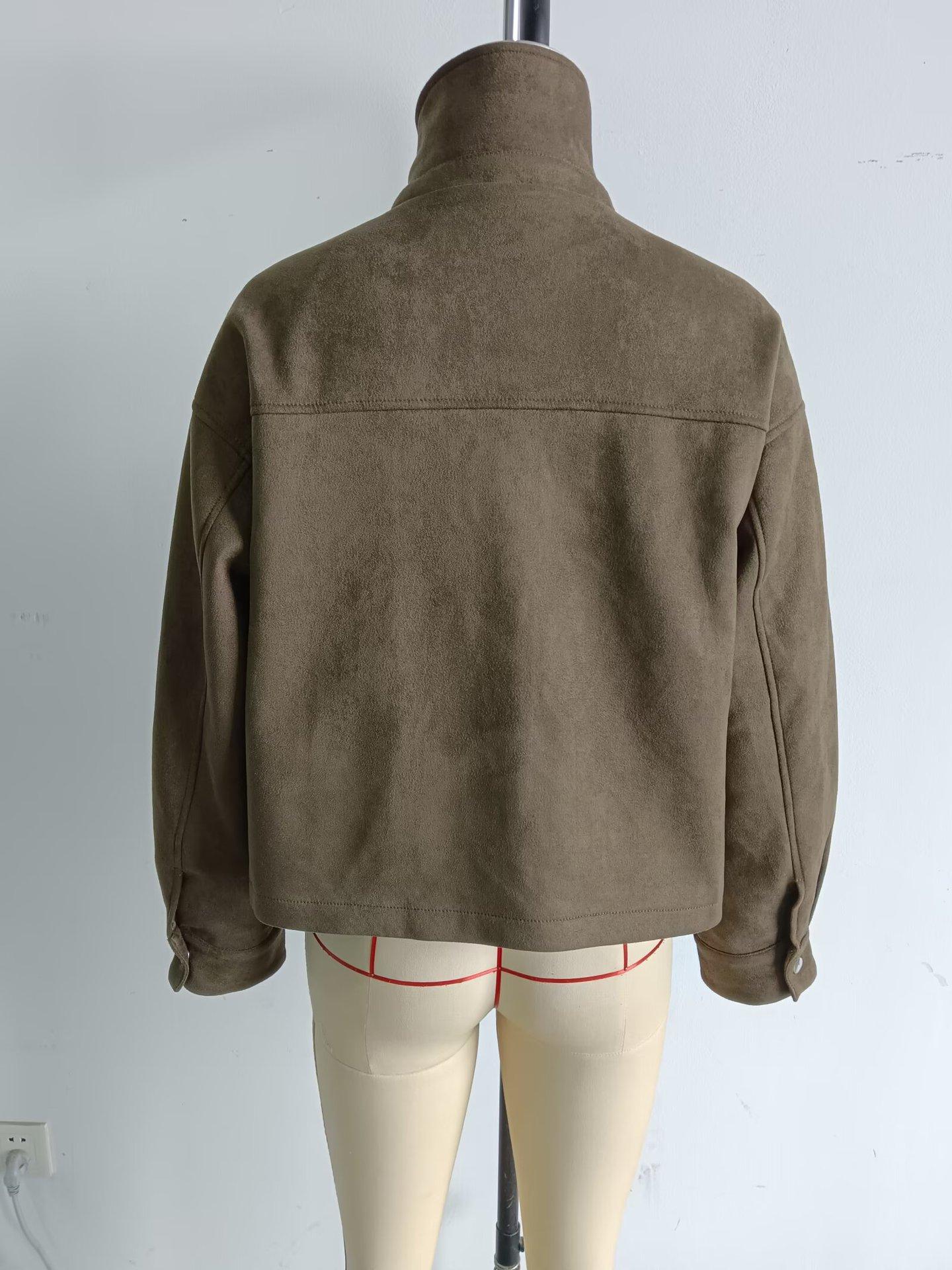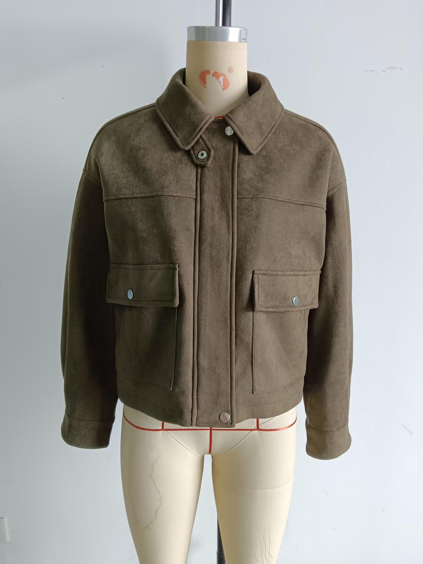 Ropa de mujer de comercio exterior transfronterizo 2025 otoño e invierno estilo europeo y americano decoración de bolsillo chaqueta de gamuza abrigo mujer A15081