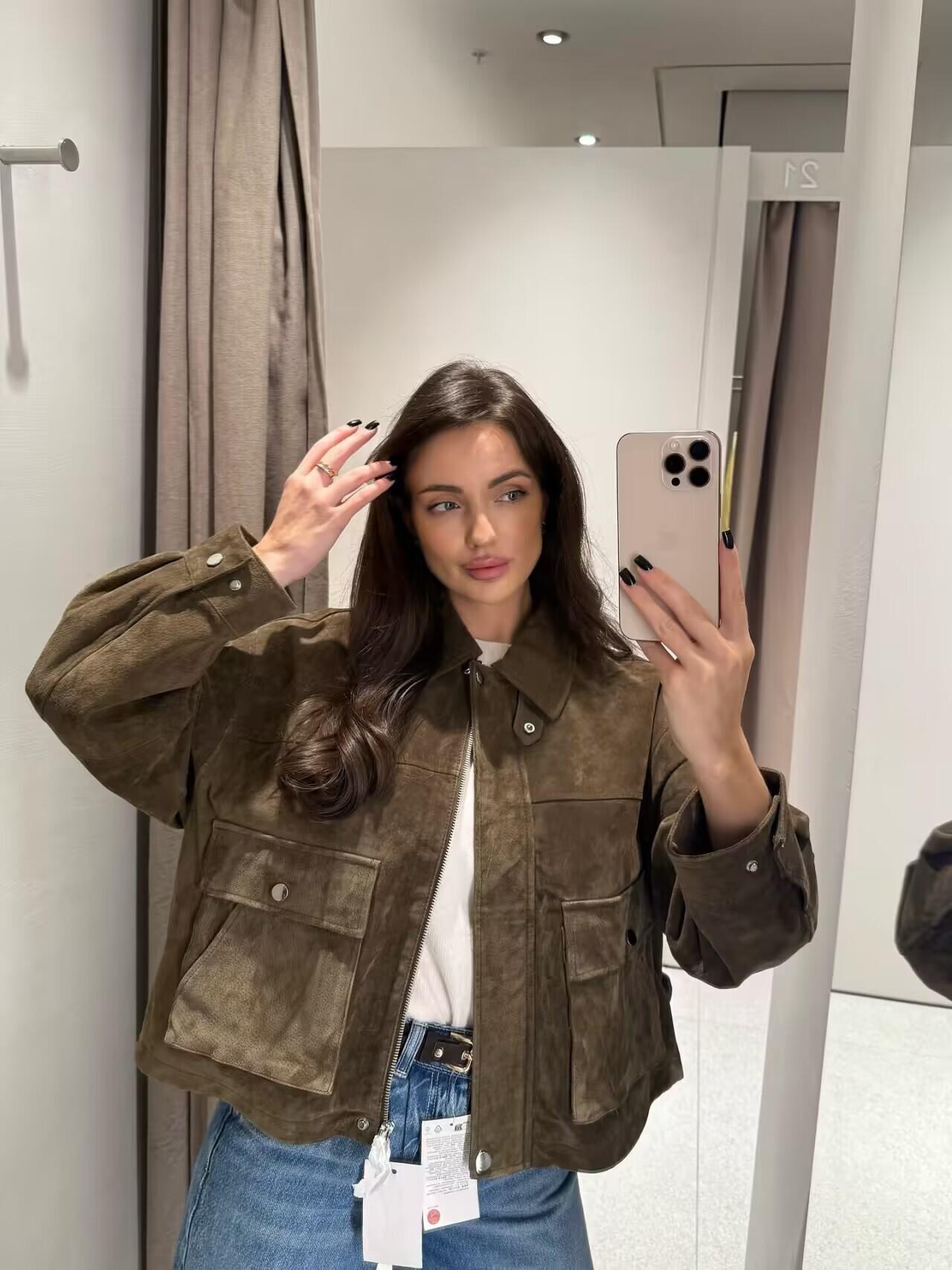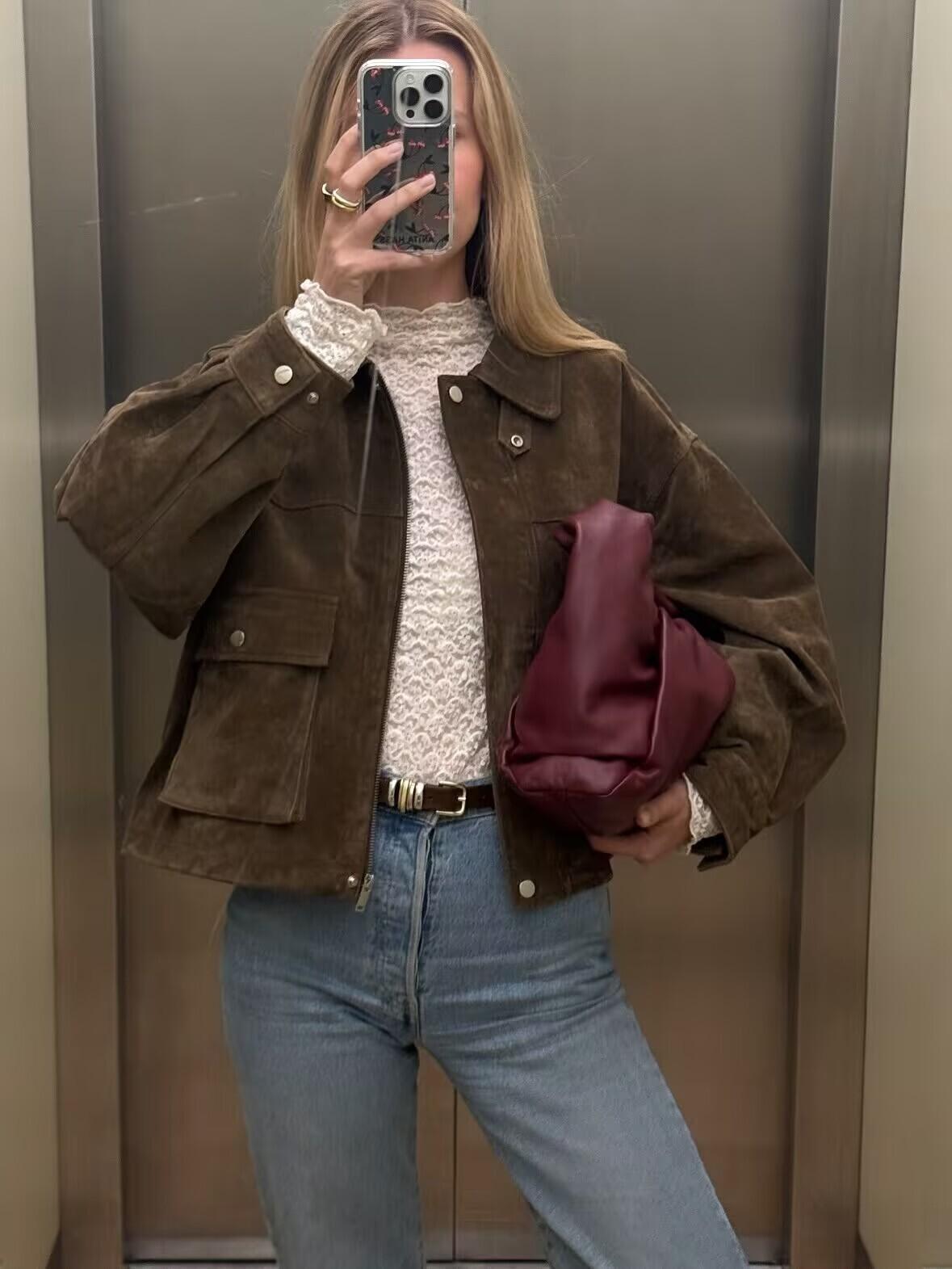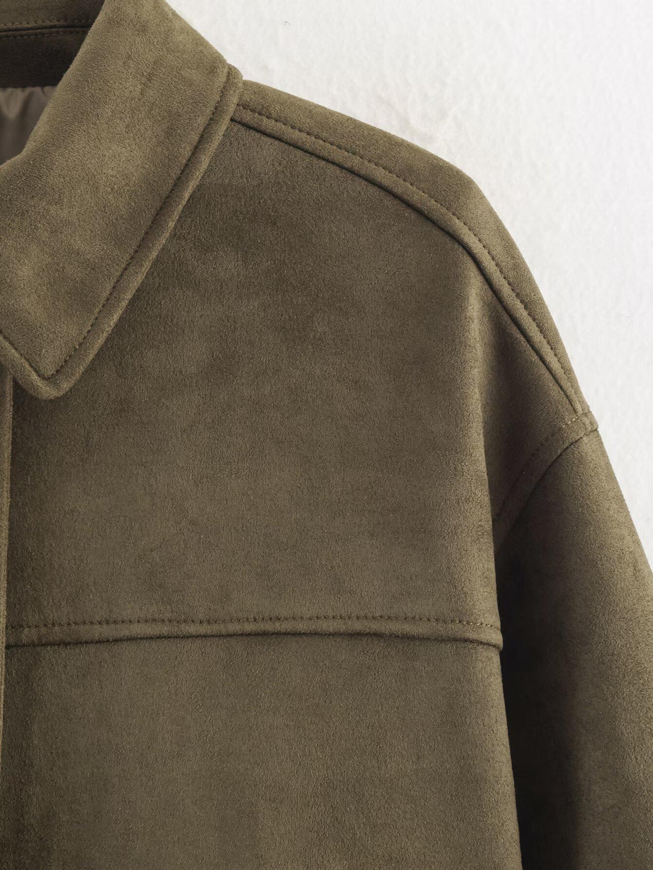 Ropa de mujer de comercio exterior transfronterizo 2025 otoño e invierno estilo europeo y americano decoración de bolsillo chaqueta de gamuza abrigo mujer A15081