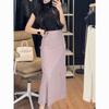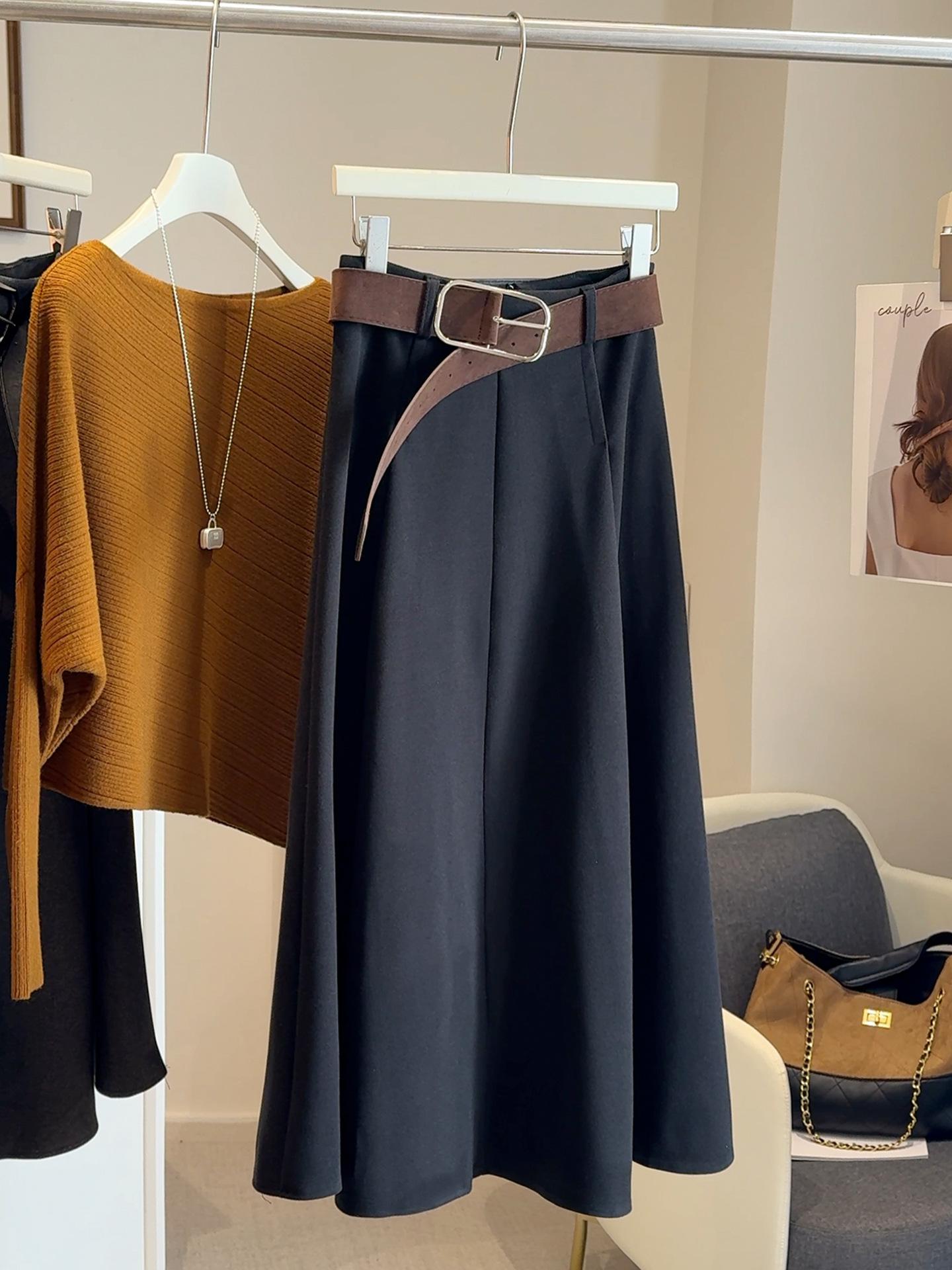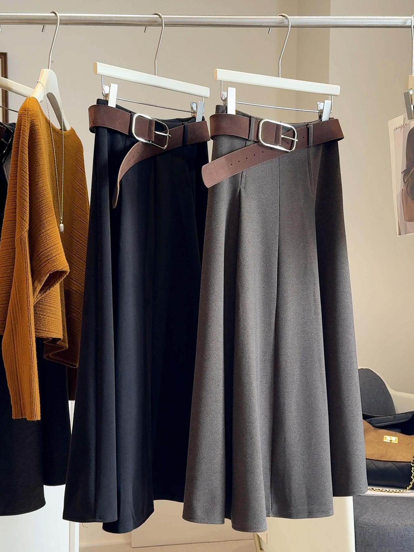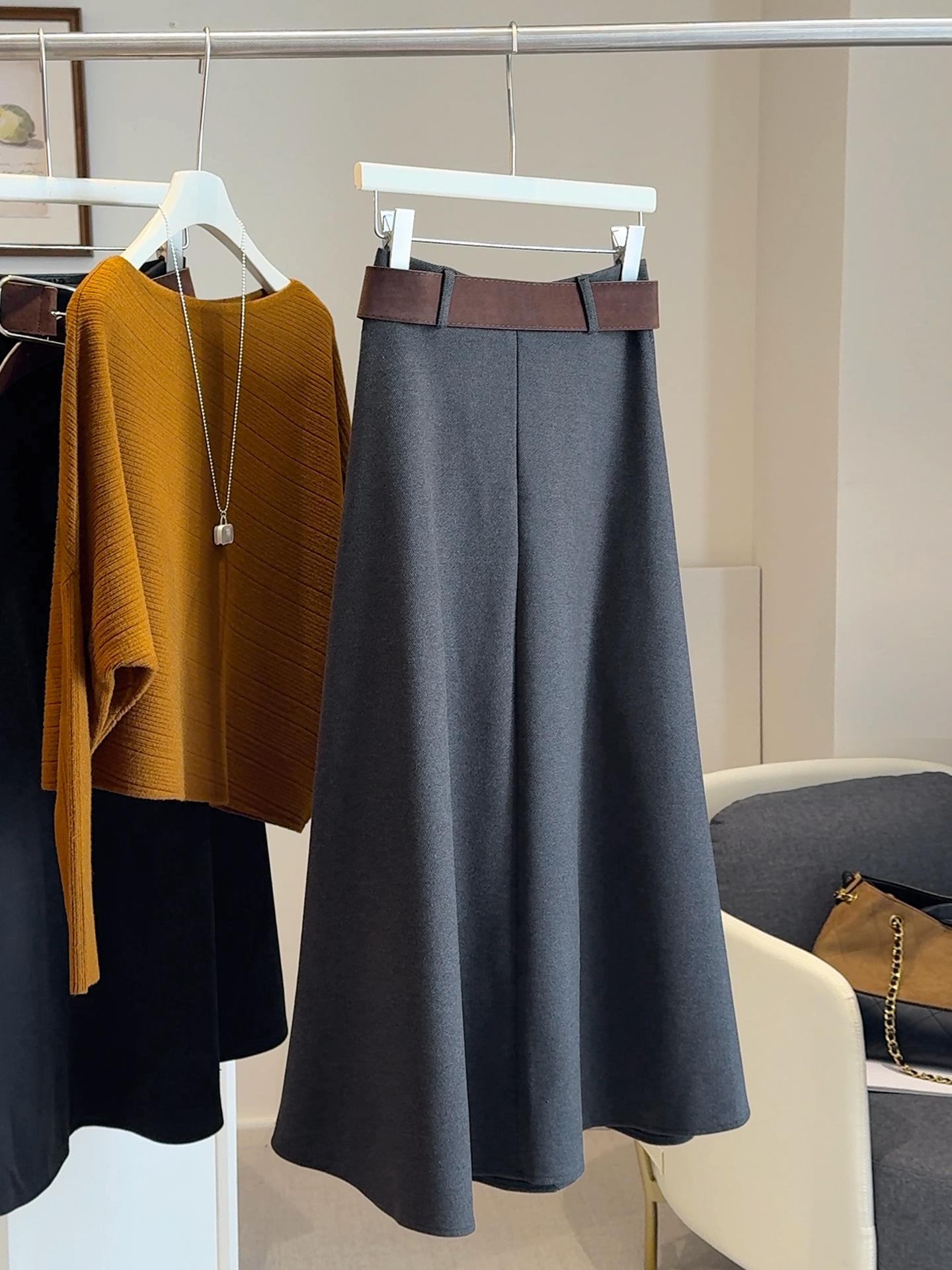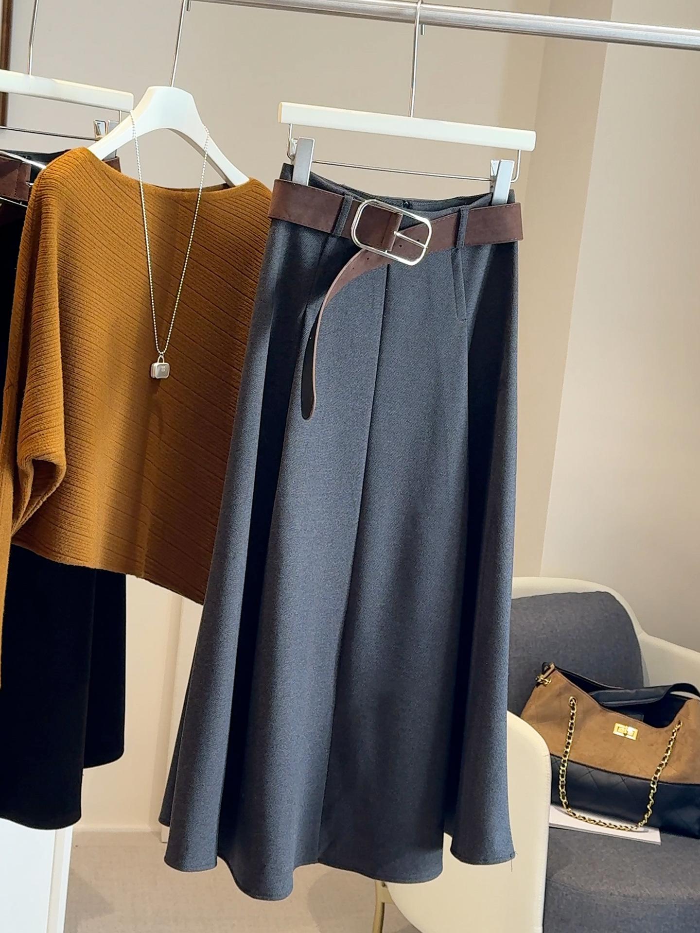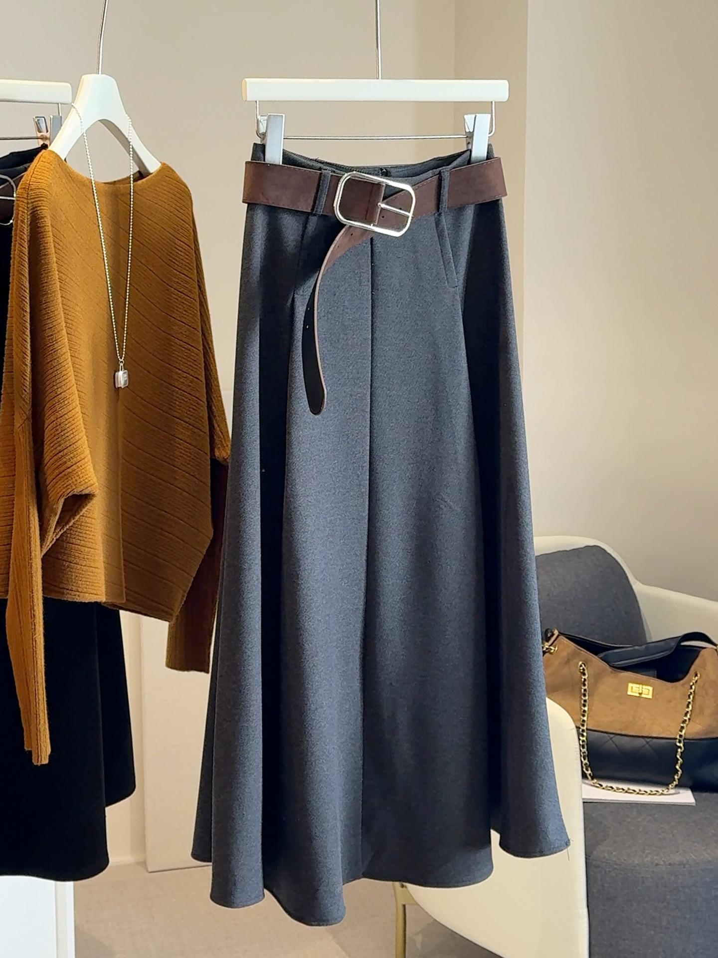 Saia midi de lã de alta qualidade para mulheres 2025 outono/inverno moda estilo coreano temperamento emagrecedora saia evasê