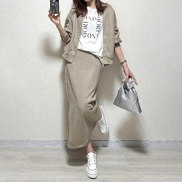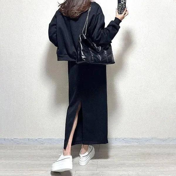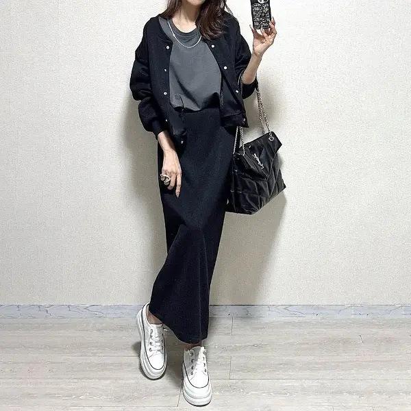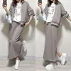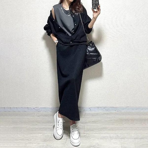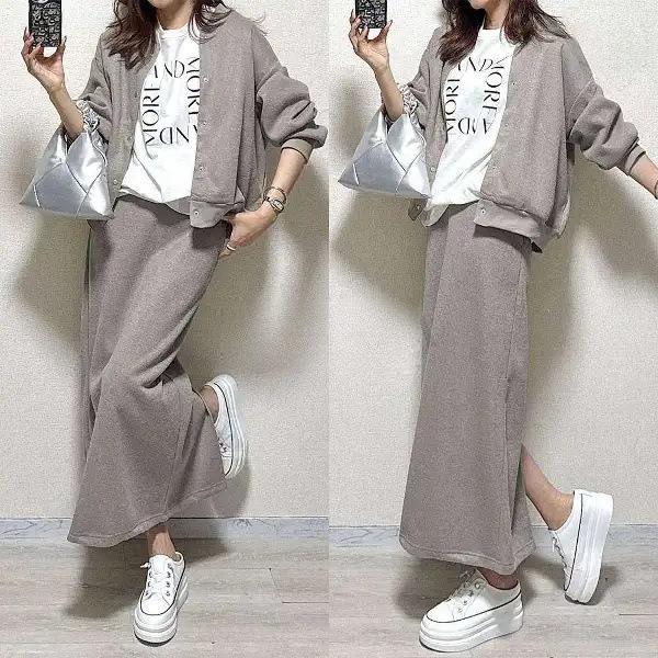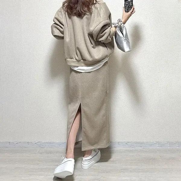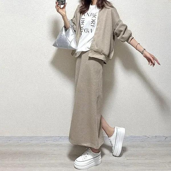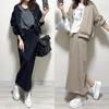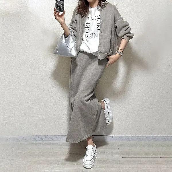 3 colores en stock estilo japonés 2025 nuevo cuello redondo abotonadura sencilla falda midi recta conjunto de dos piezas