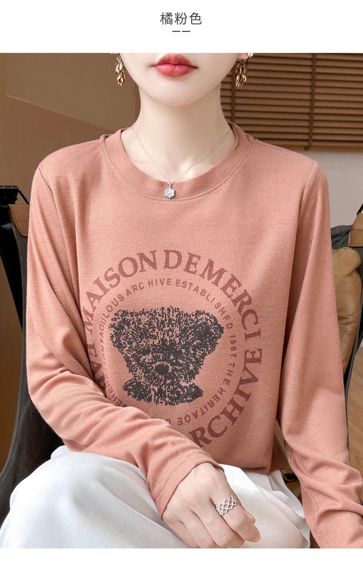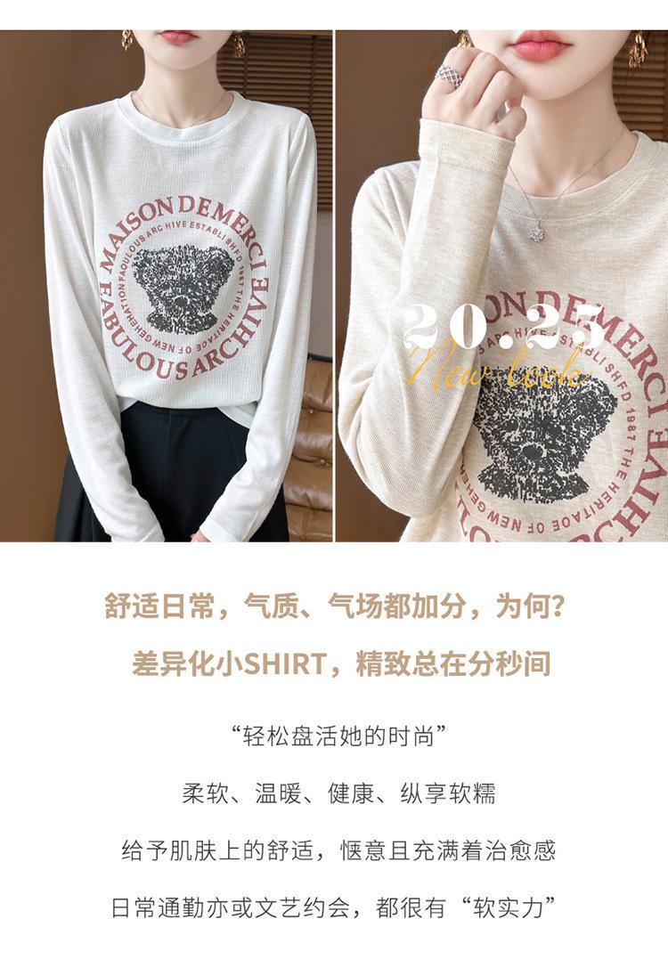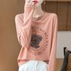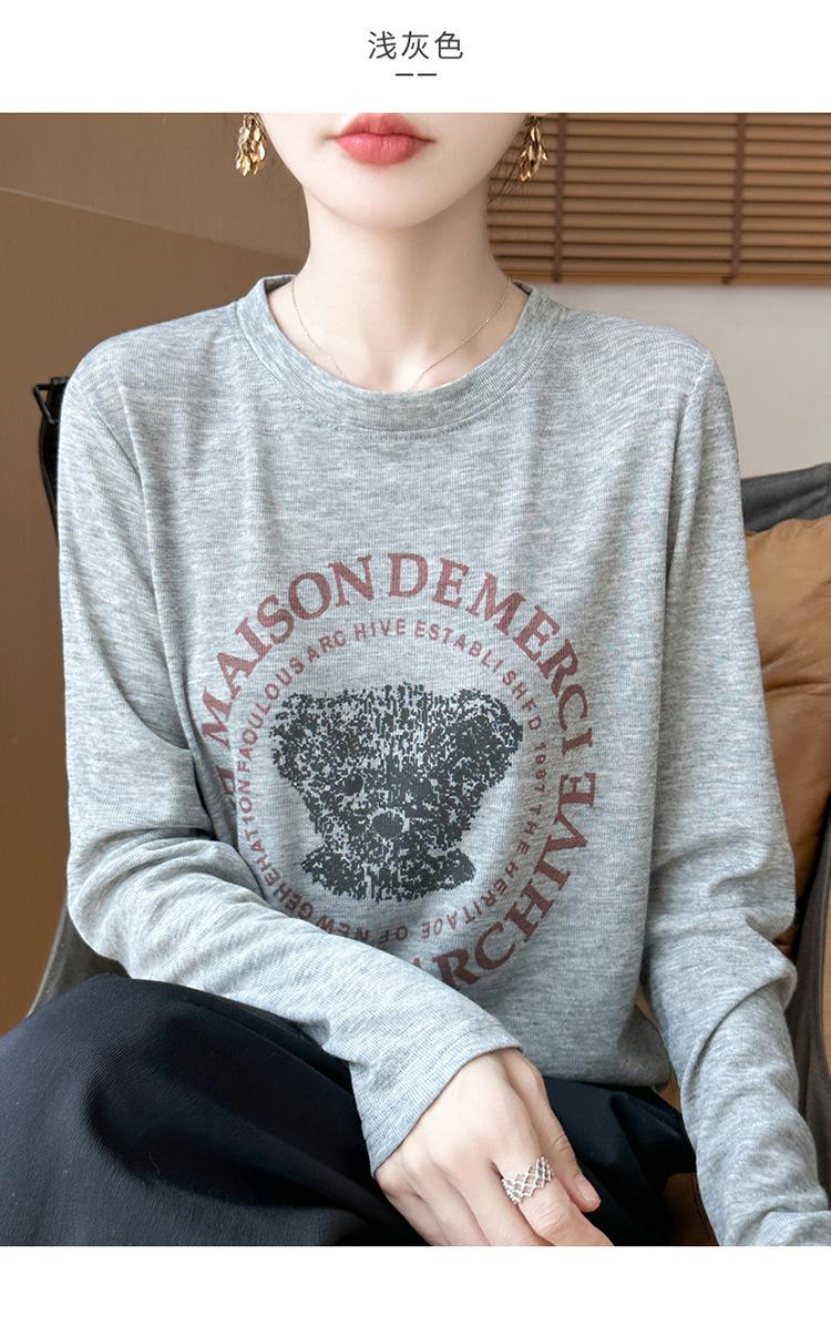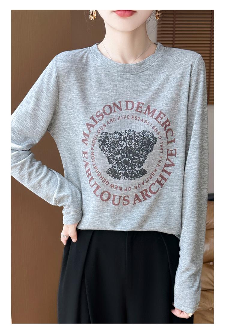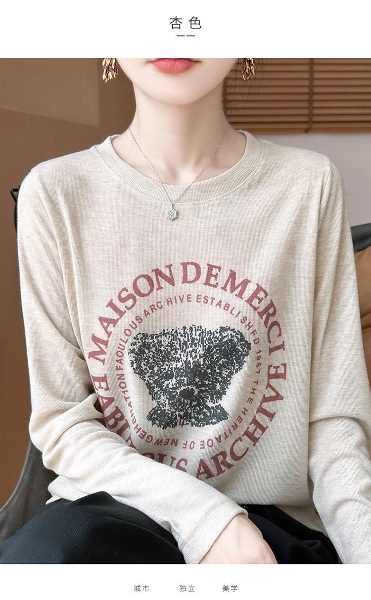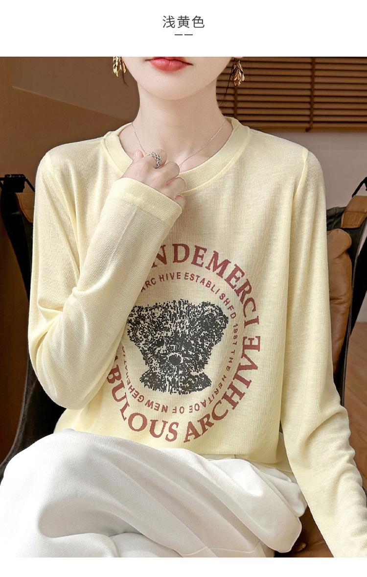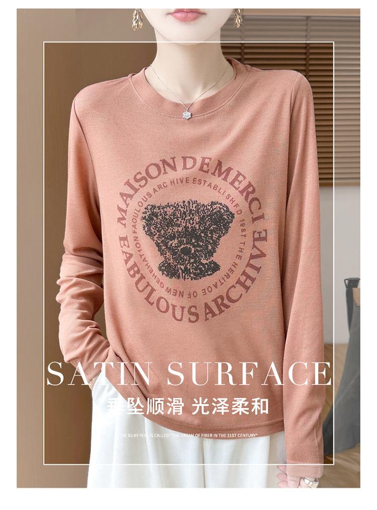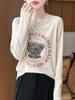 2025 Principios de Otoño Nuevo Tejido Fino Cuello Redondo Manga Larga Mujer Estampado de Oso Suéter Holgado Capa Base