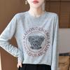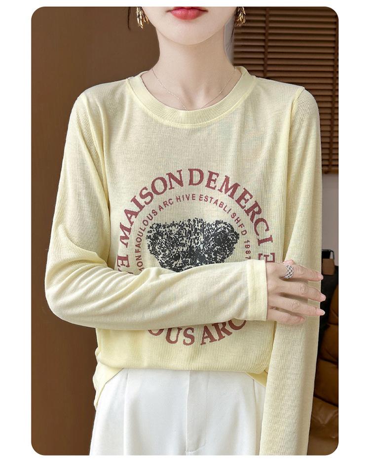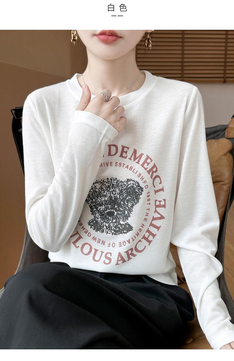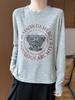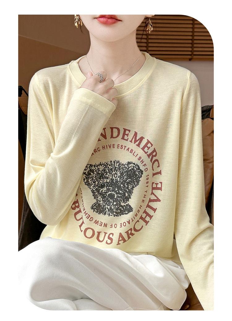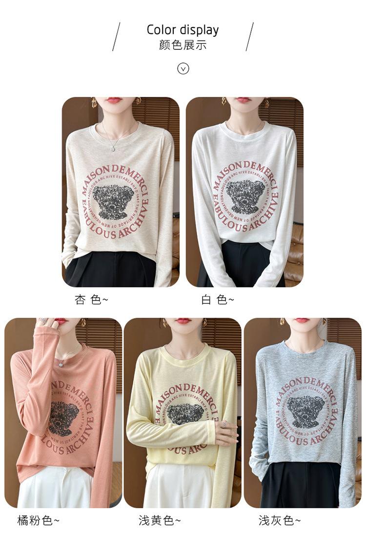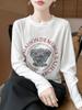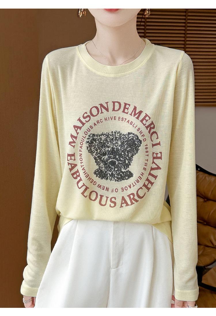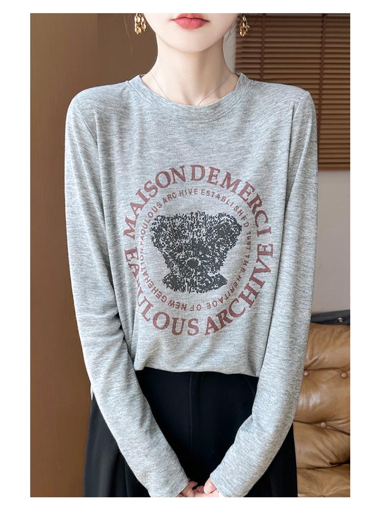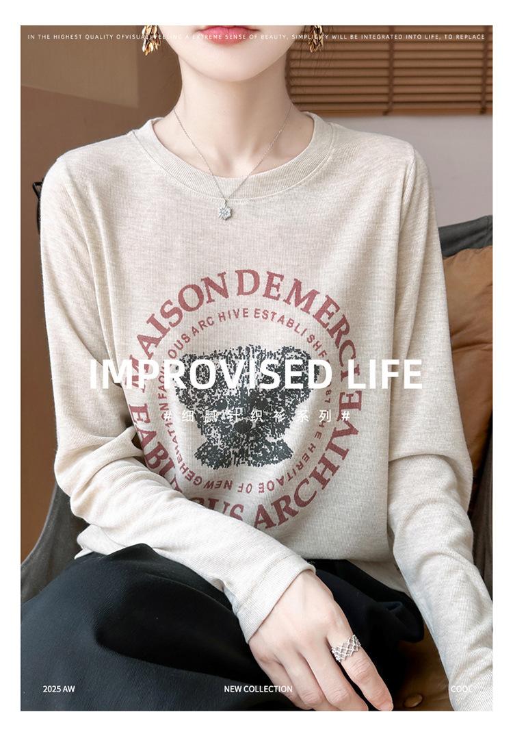 2025 Principios de Otoño Nuevo Tejido Fino Cuello Redondo Manga Larga Mujer Estampado de Oso Suéter Holgado Capa Base