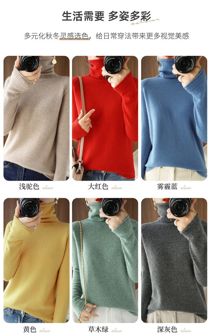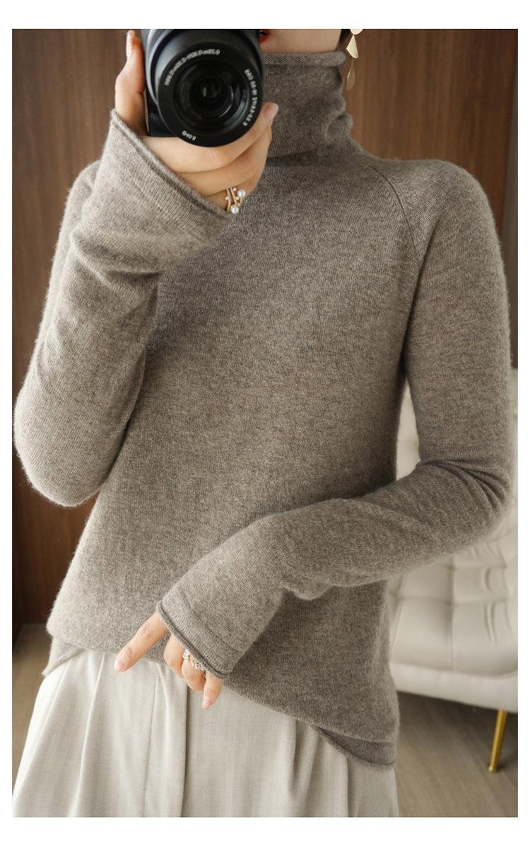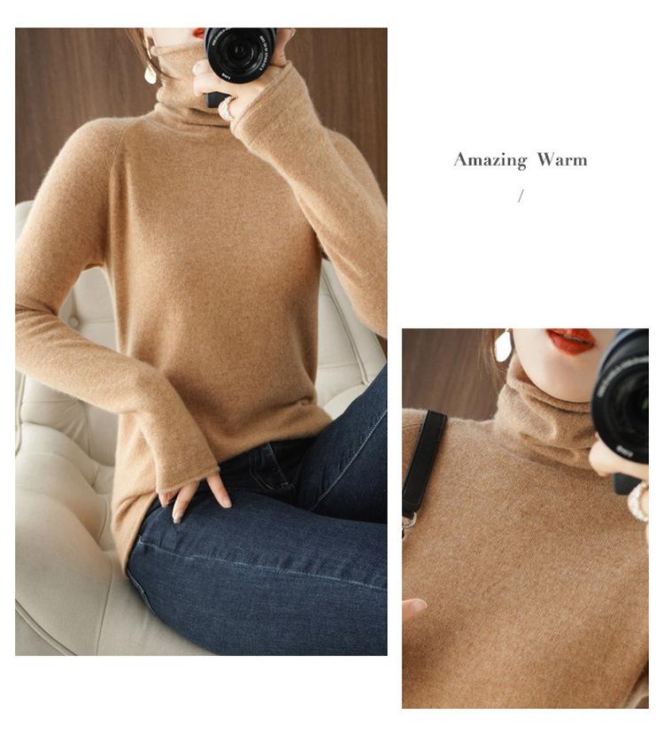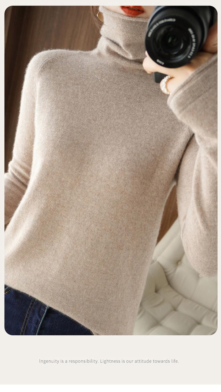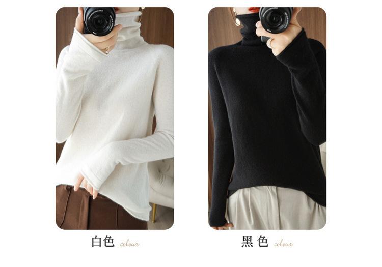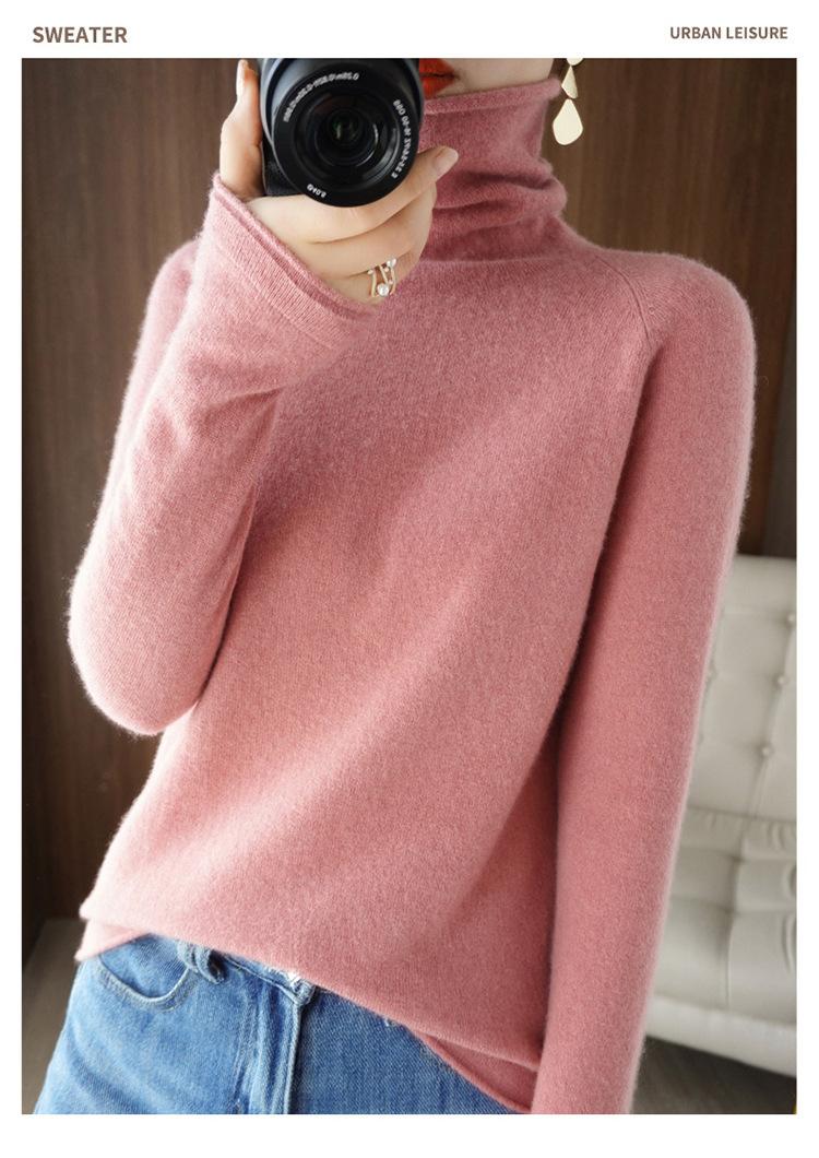 Suéter Nuevo de Punto para Mujer Manga Larga Cuello de Tortuga Adelgazante Otoño Invierno Cuello Alto Camiseta Base Top Holgado Moderno Color Sólido