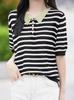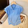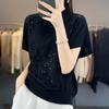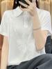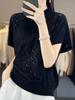 Camiseta de Diseño Sense Verano Nueva Camiseta Polo Tencel Manga Corta Camiseta de Mujer Flor Bordada de Industria Pesada Top de Media Manga