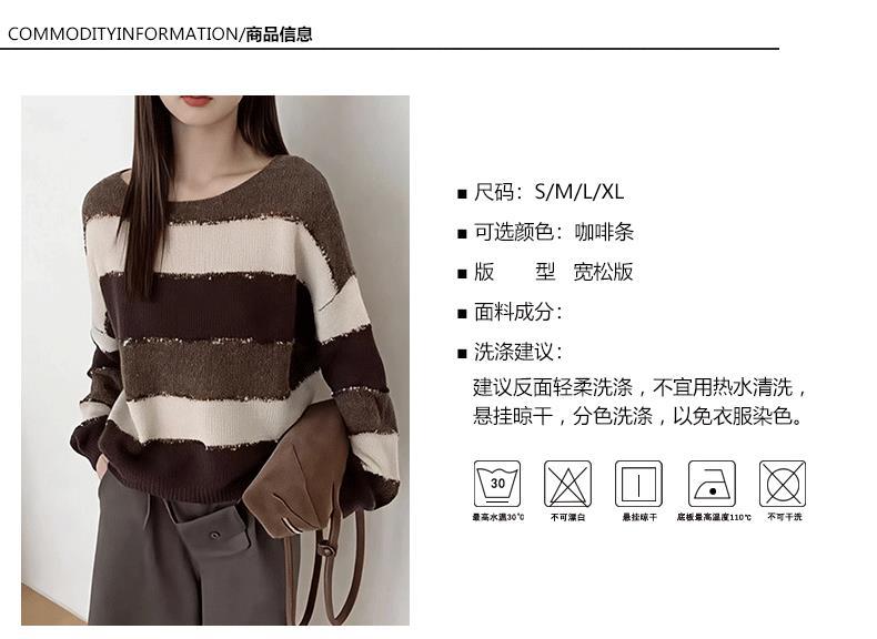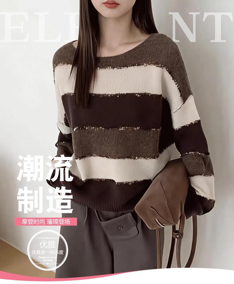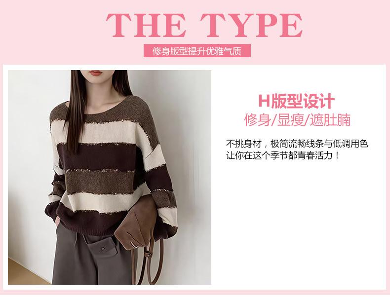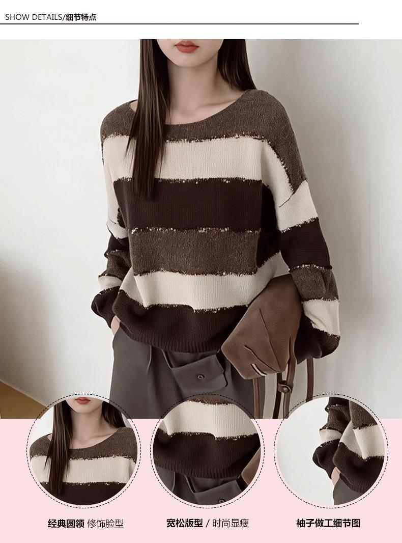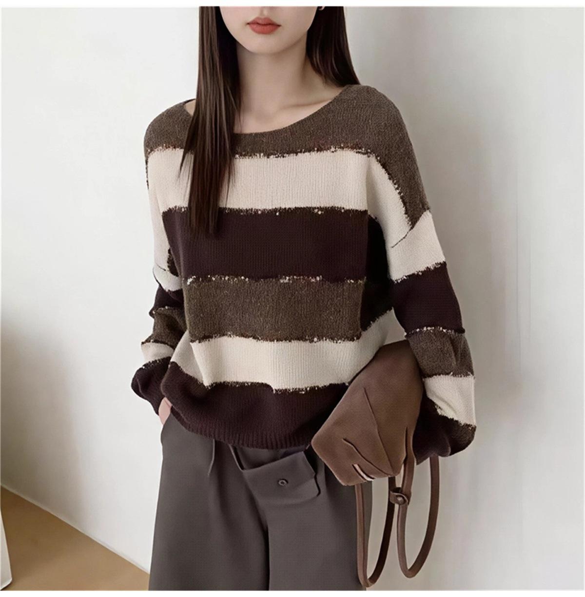 Suéter Holgado de Rayas para Mujer Otoño e Invierno Nuevo 2025 Tejido de Punto Básico de Gama Alta Perezoso Ropa Exterior