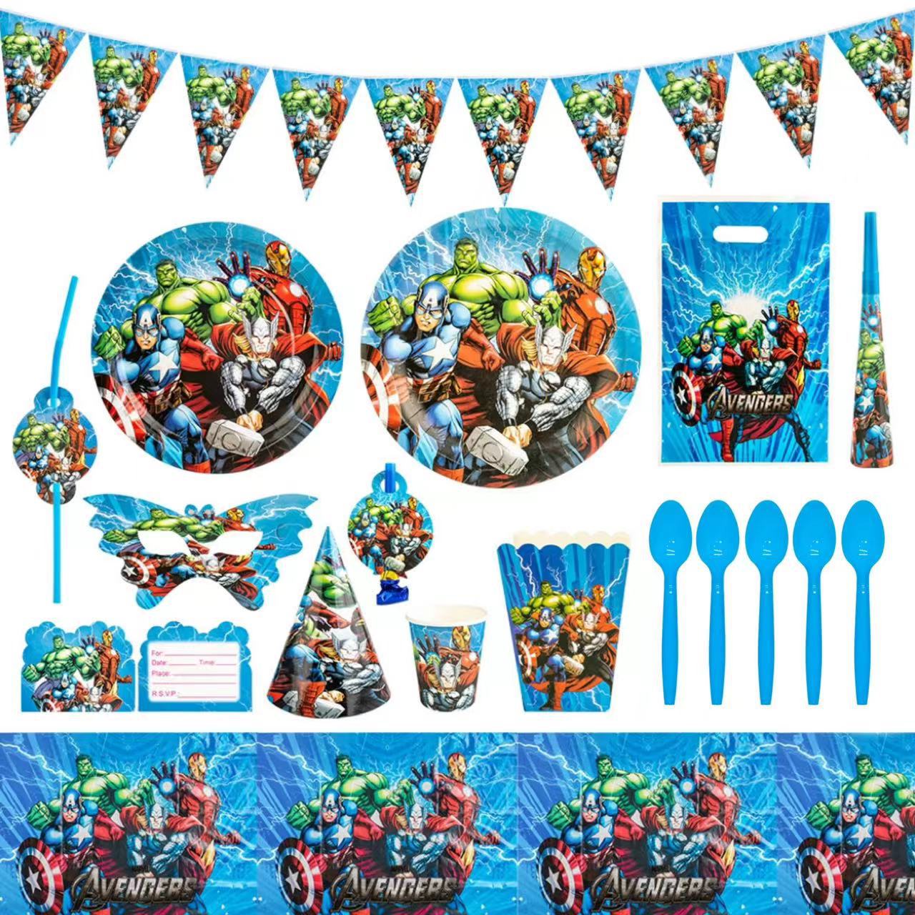 Fiesta Temática de los Vengadores Capitán América Spiderman Hulk Decoración Banner Set Liga de Leyendas