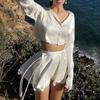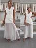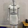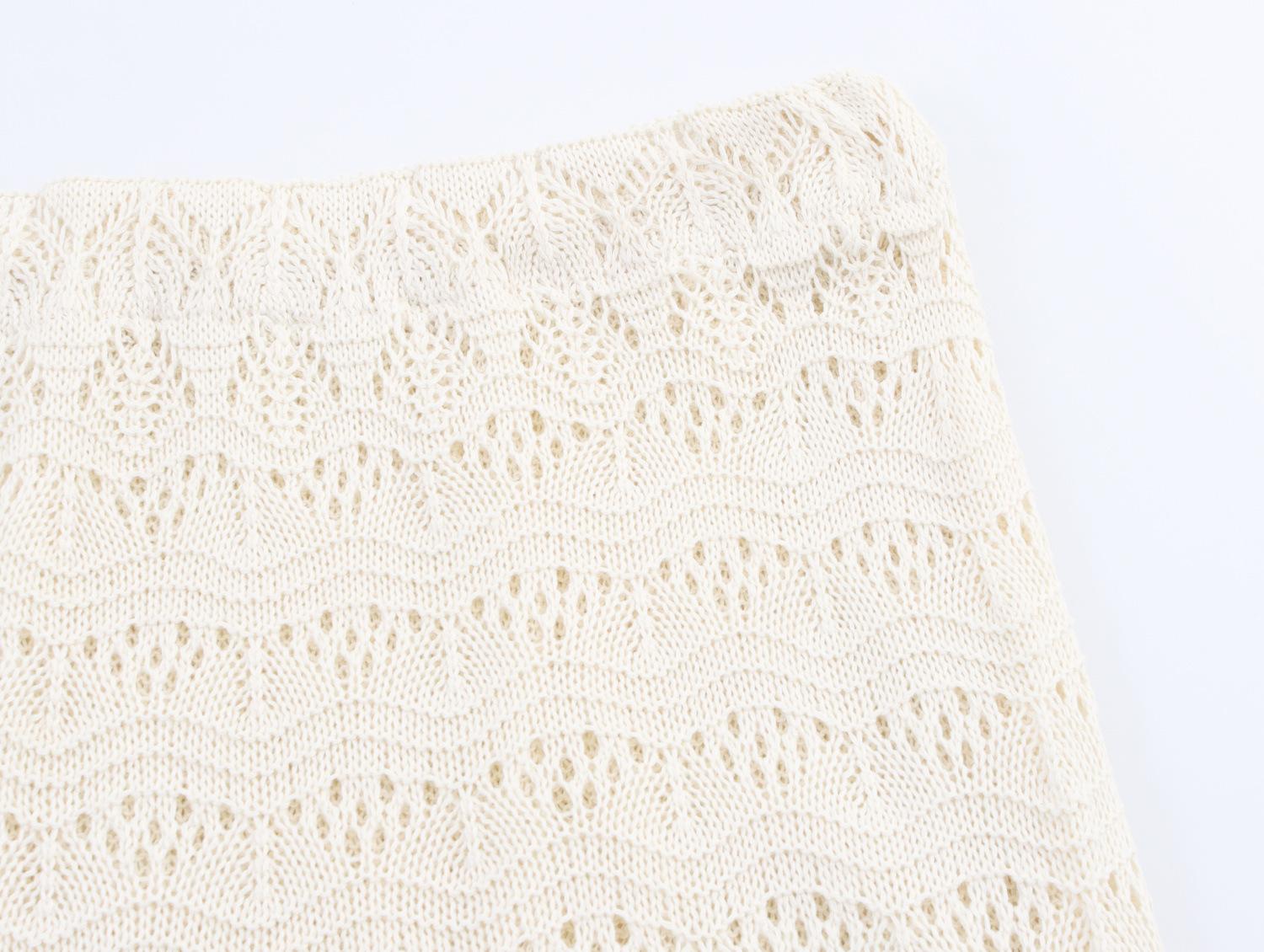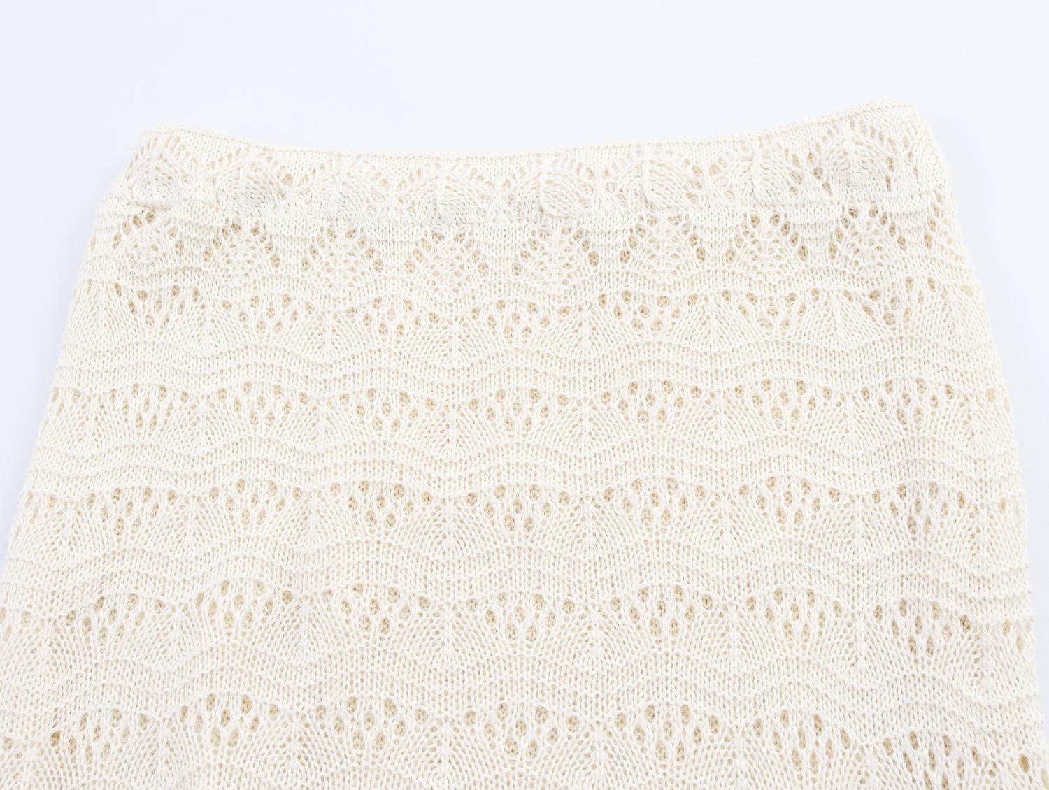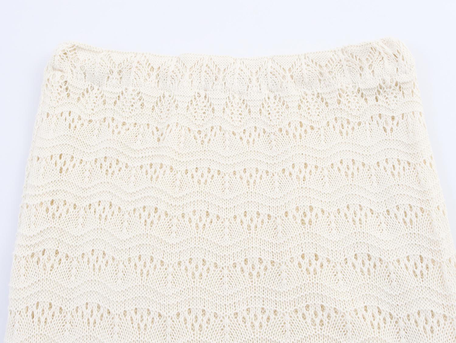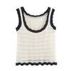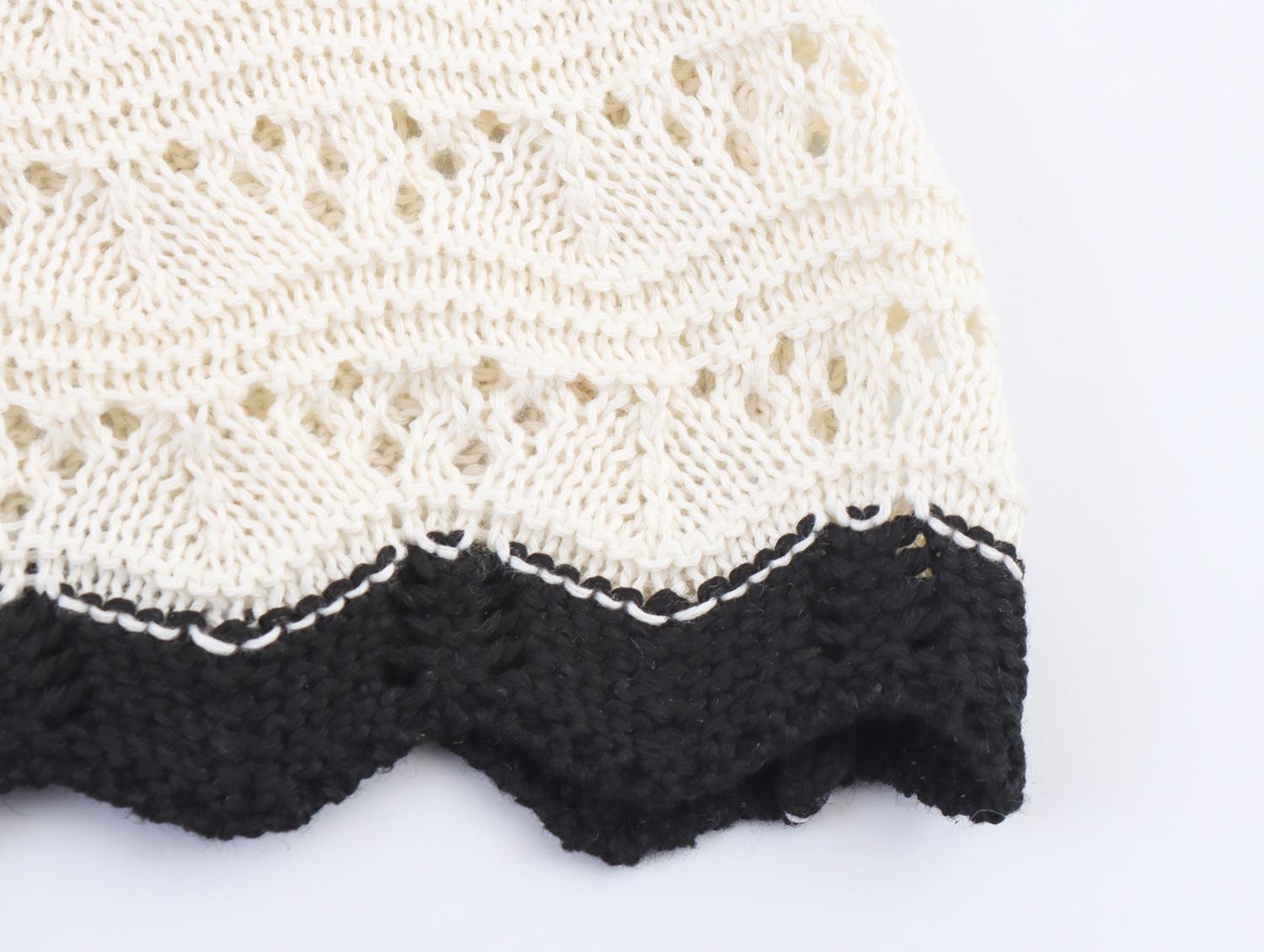 Ropa de Mujer al Por Mayor Transfronteriza Verano Nuevo Estilo Europeo y Americano Bloque de Color Tejido Calado Tirantes Espagueti + Set Falda Midi con Lazo en la Cintura