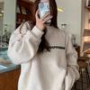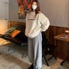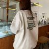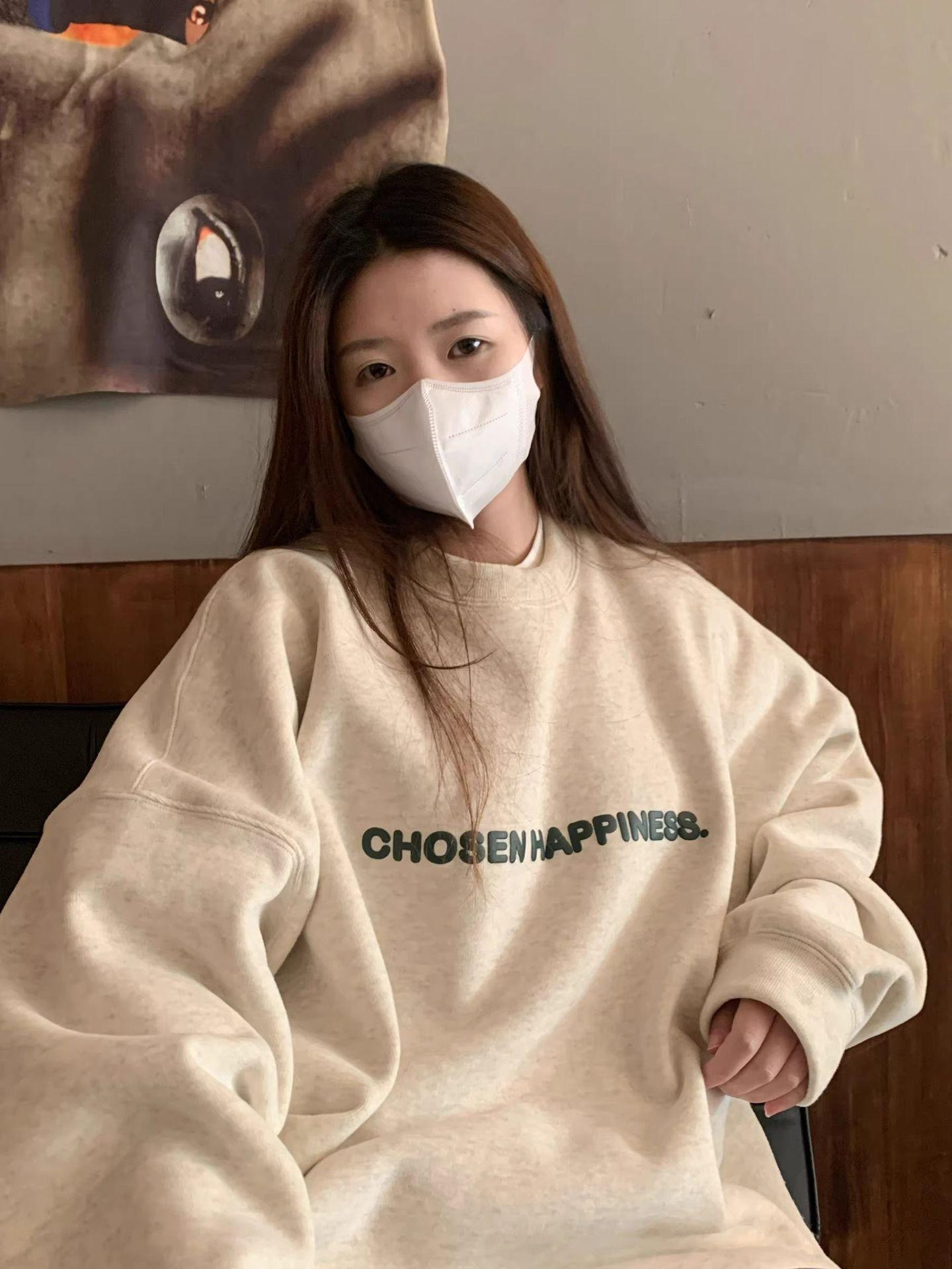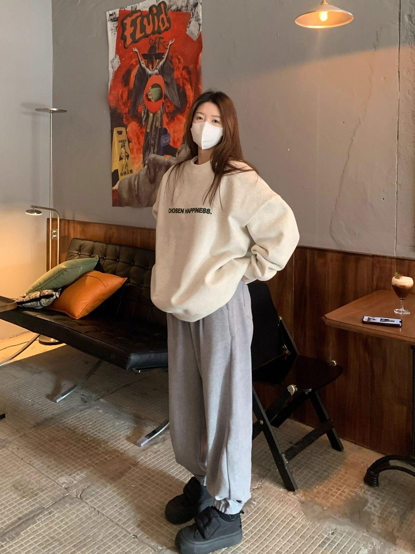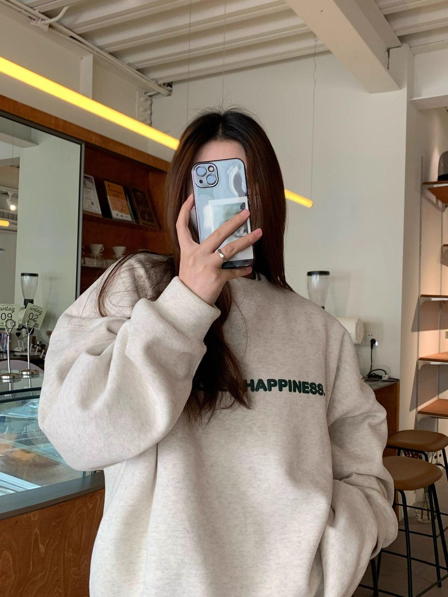Sudadera con capucha gris de talla pequeña retro americana para mujer primavera otoño de alta gama estilo Hong Kong chic estilo holgazán top de cuello redondo