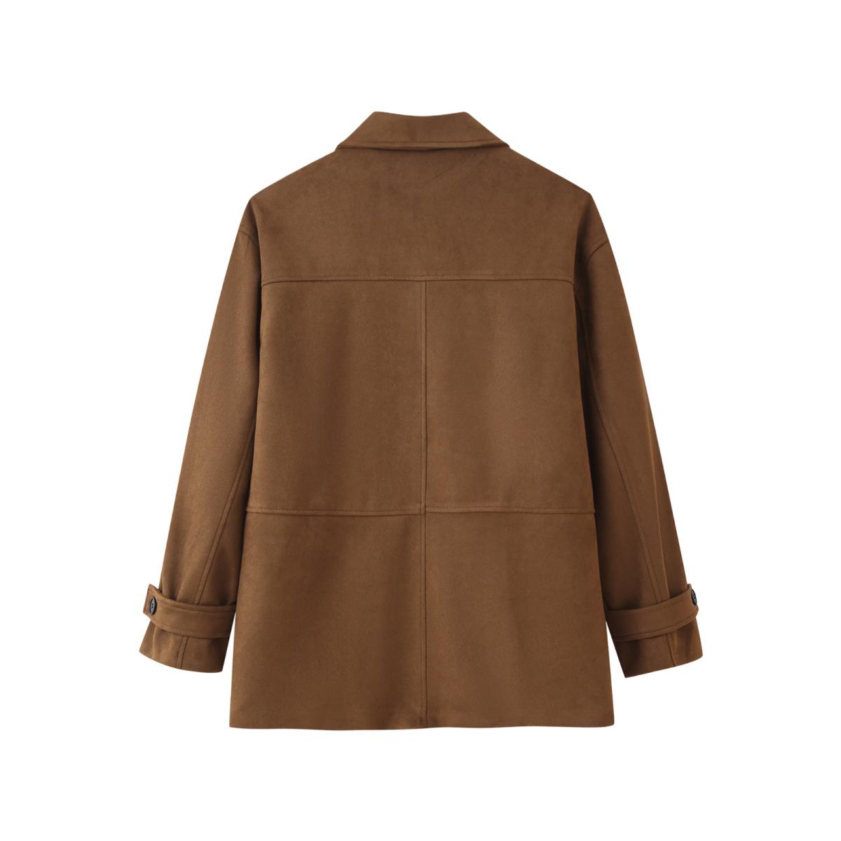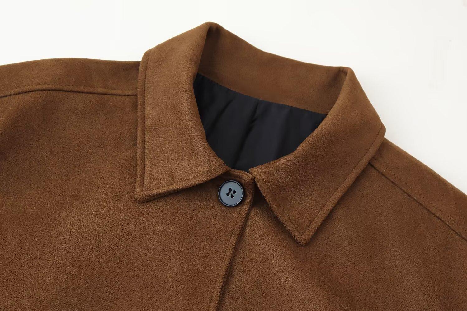 Z Estilo Europeo y Americano Transfronterizo 2025 Nueva Moda Temperamento Ropa de Mujer Venta al por Mayor Chaqueta de Ante de Manga Larga con Cuello Vuelto y Abotonadura Sencilla