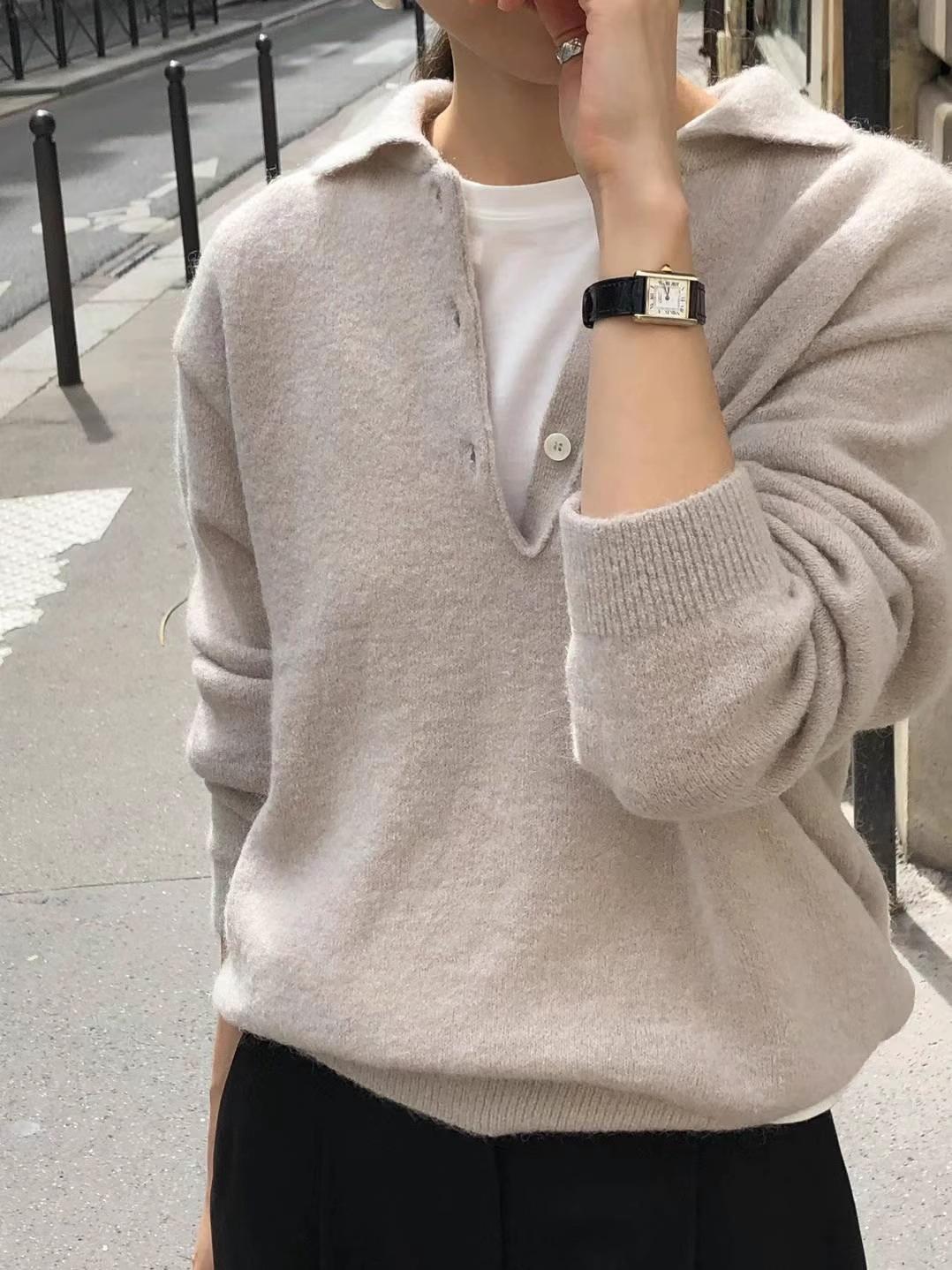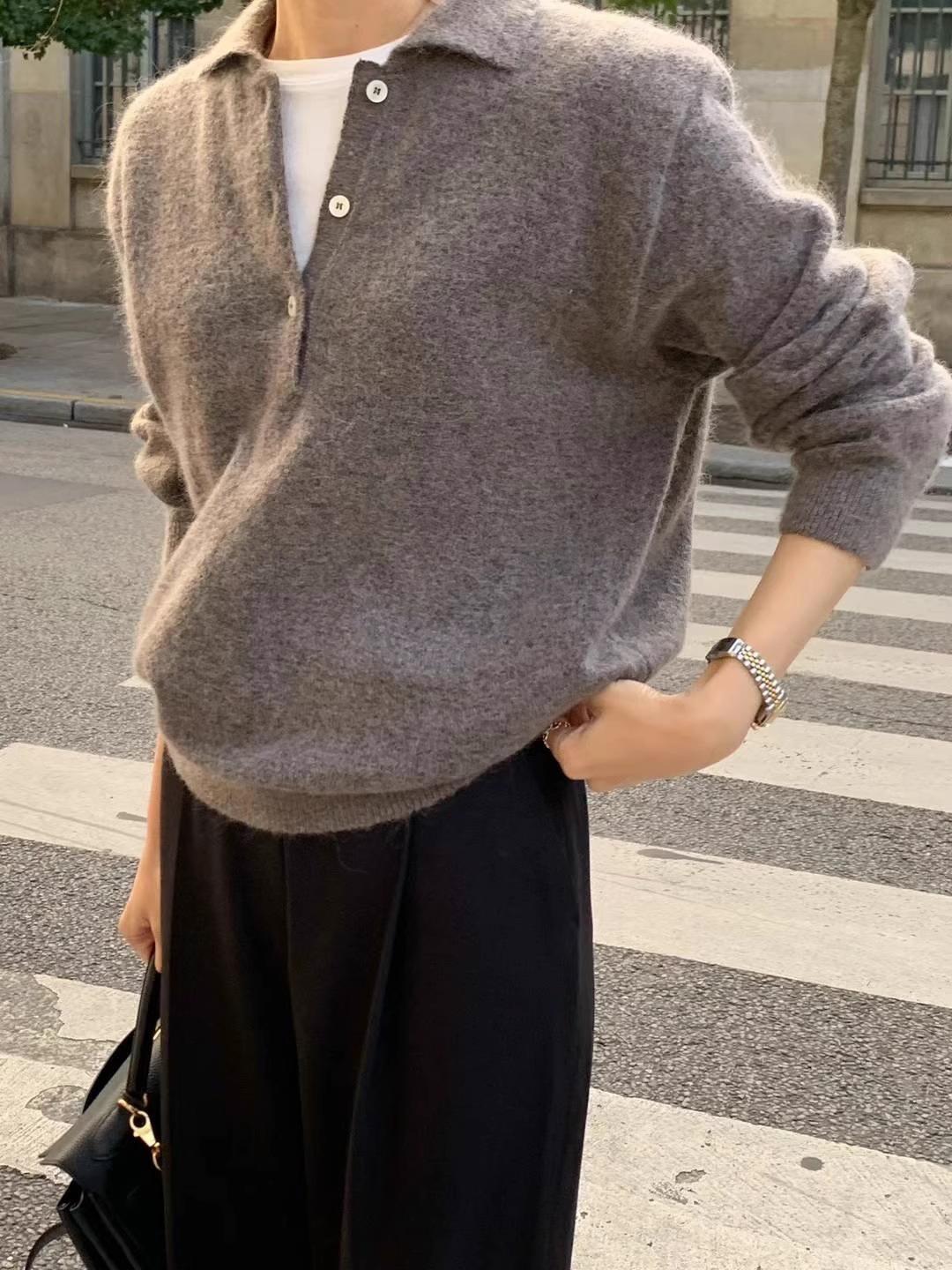 Sentido del diseño moderno y versátil, jersey de punto de lana con cuello polo para mujer, nuevo para otoño e invierno, holgado, perezoso, con solapa