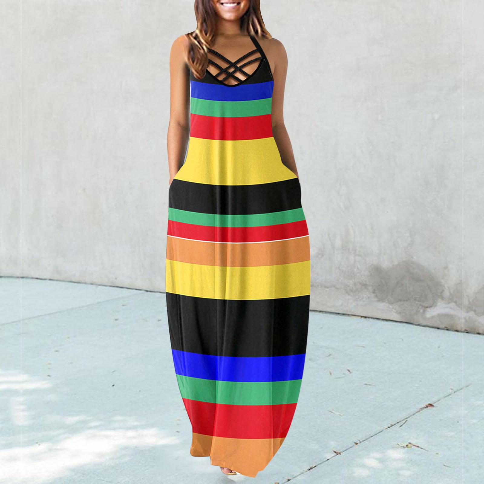 20258 Exportación Amazon Nuevo Europeo y Americano Moda Casual Verano Suelto Sin Mangas Tirantes Falda Larga Vestido