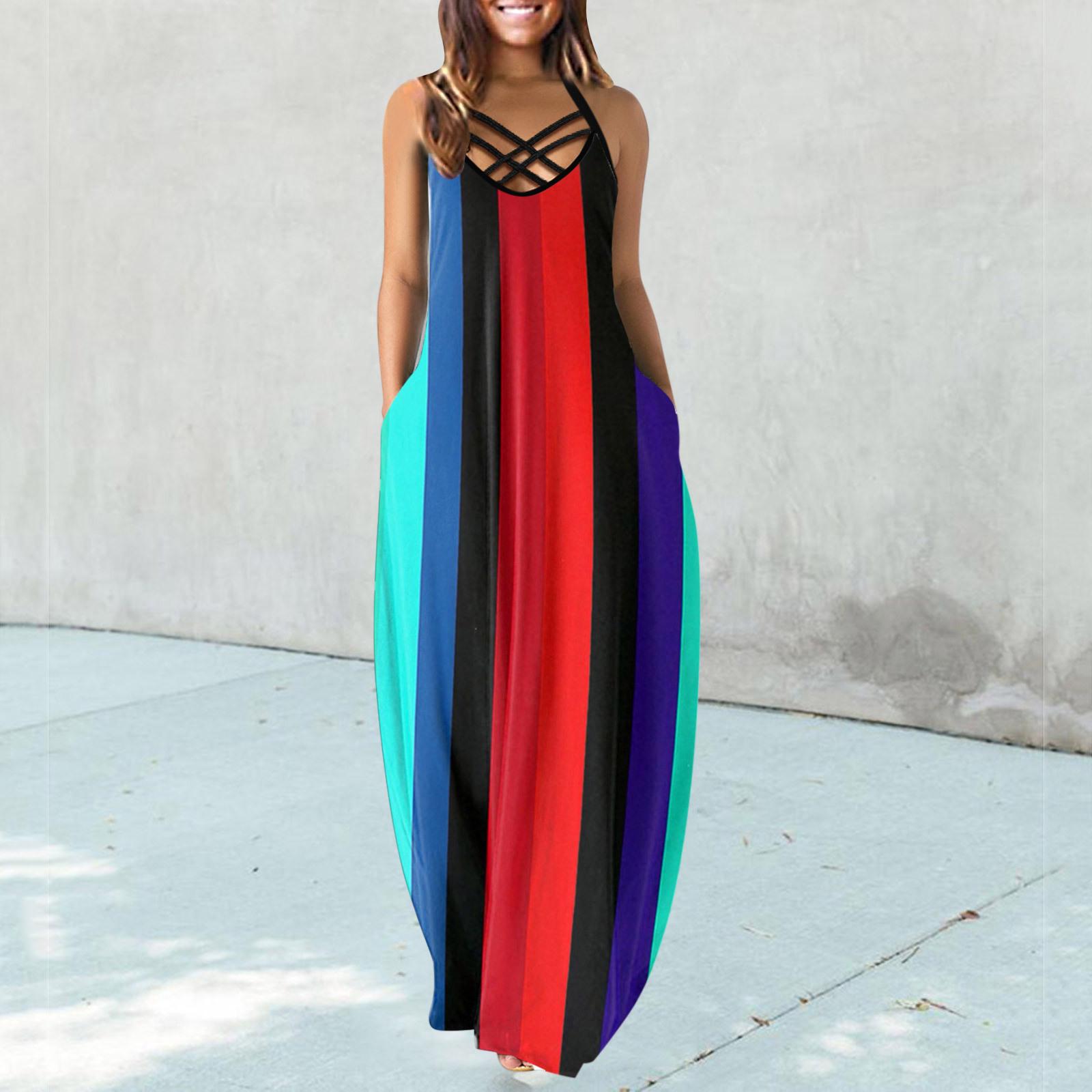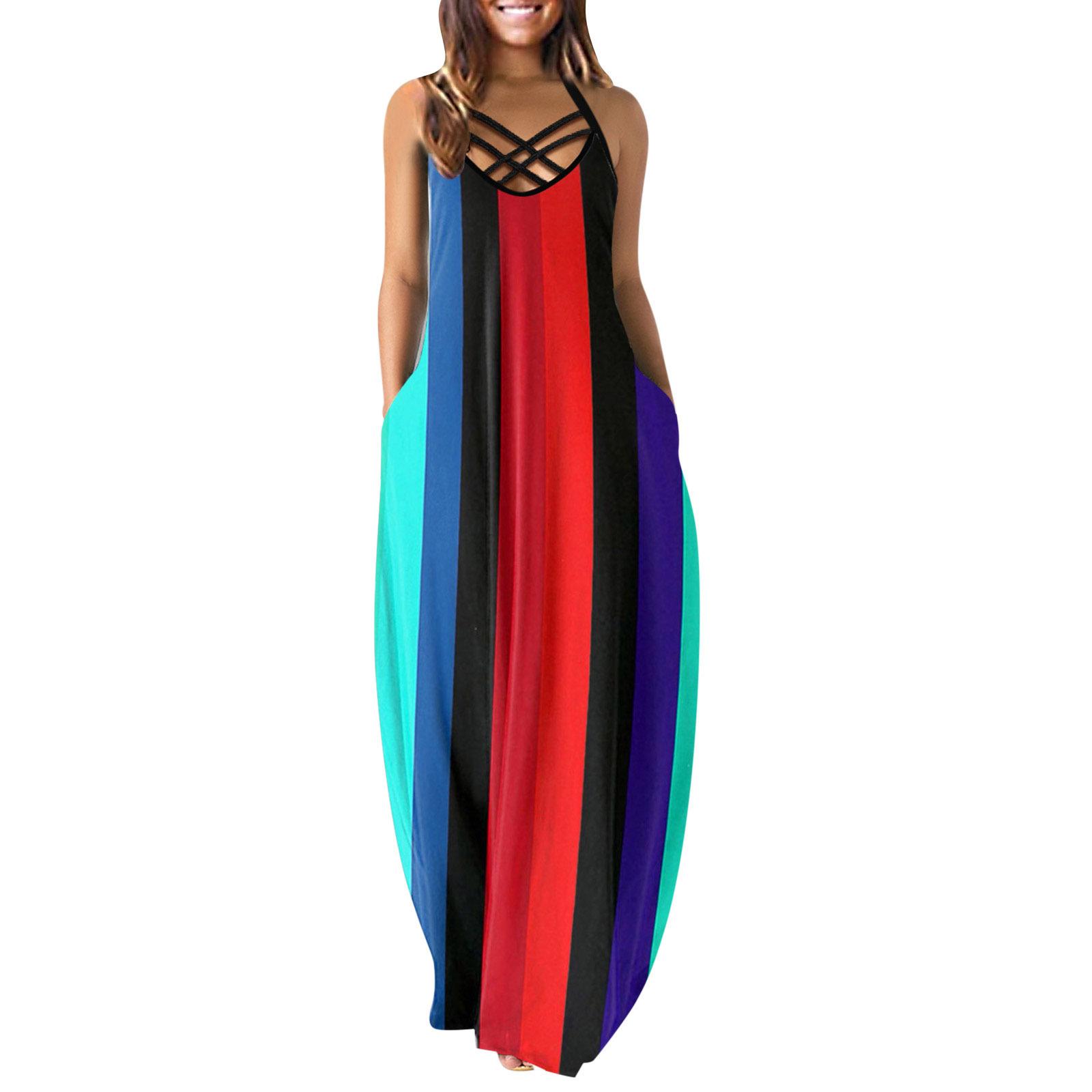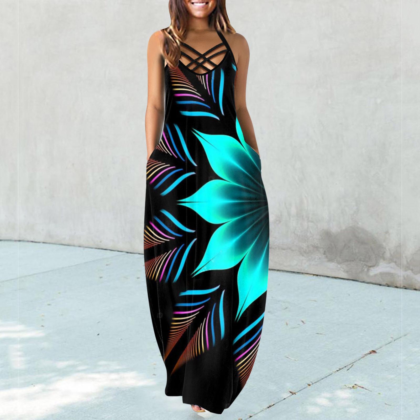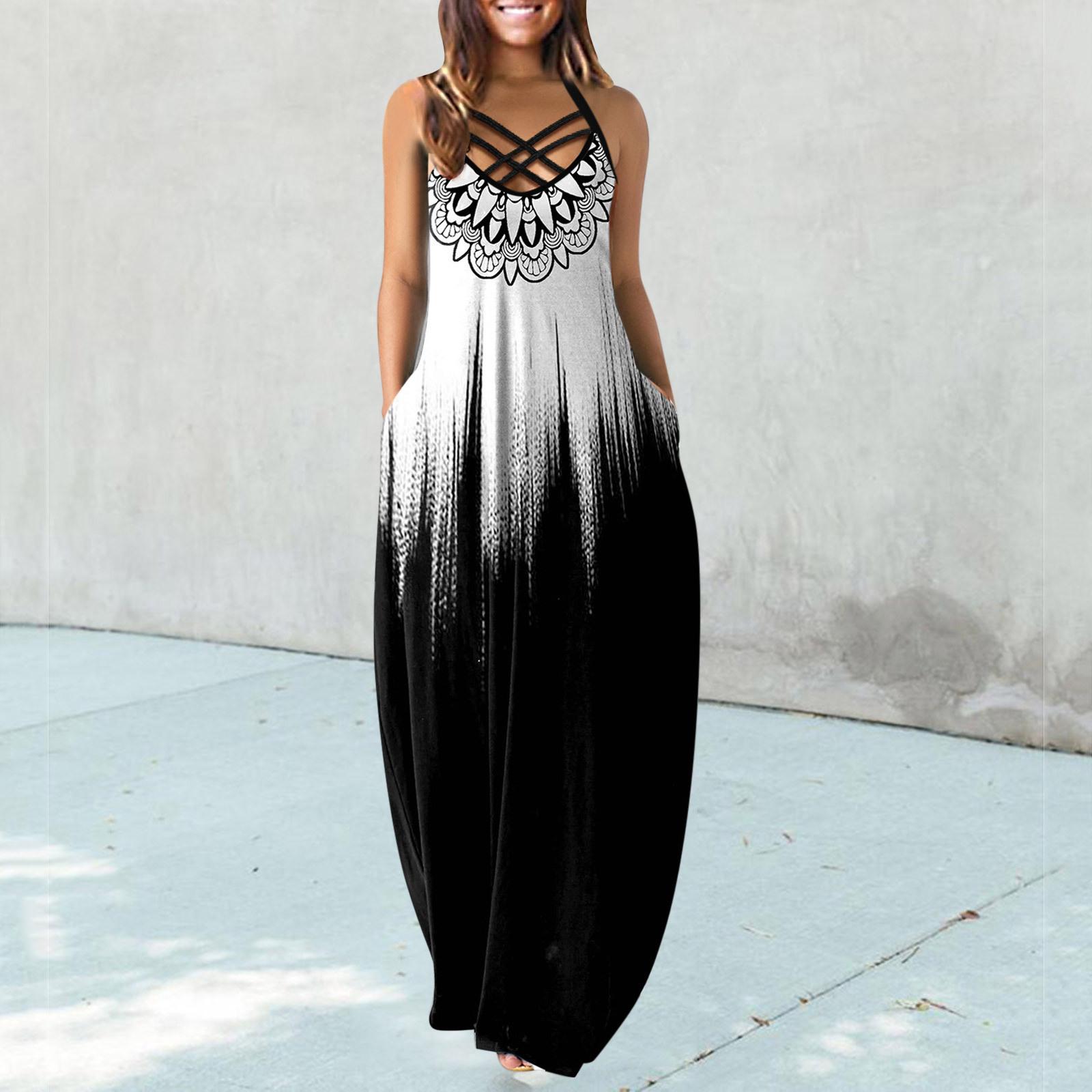 2022 Comercio Exterior Amazon Nuevo Europeo y Americano Moda Casual Verano Suelto Sin Mangas Tirantes Espagueti Vestido Largo