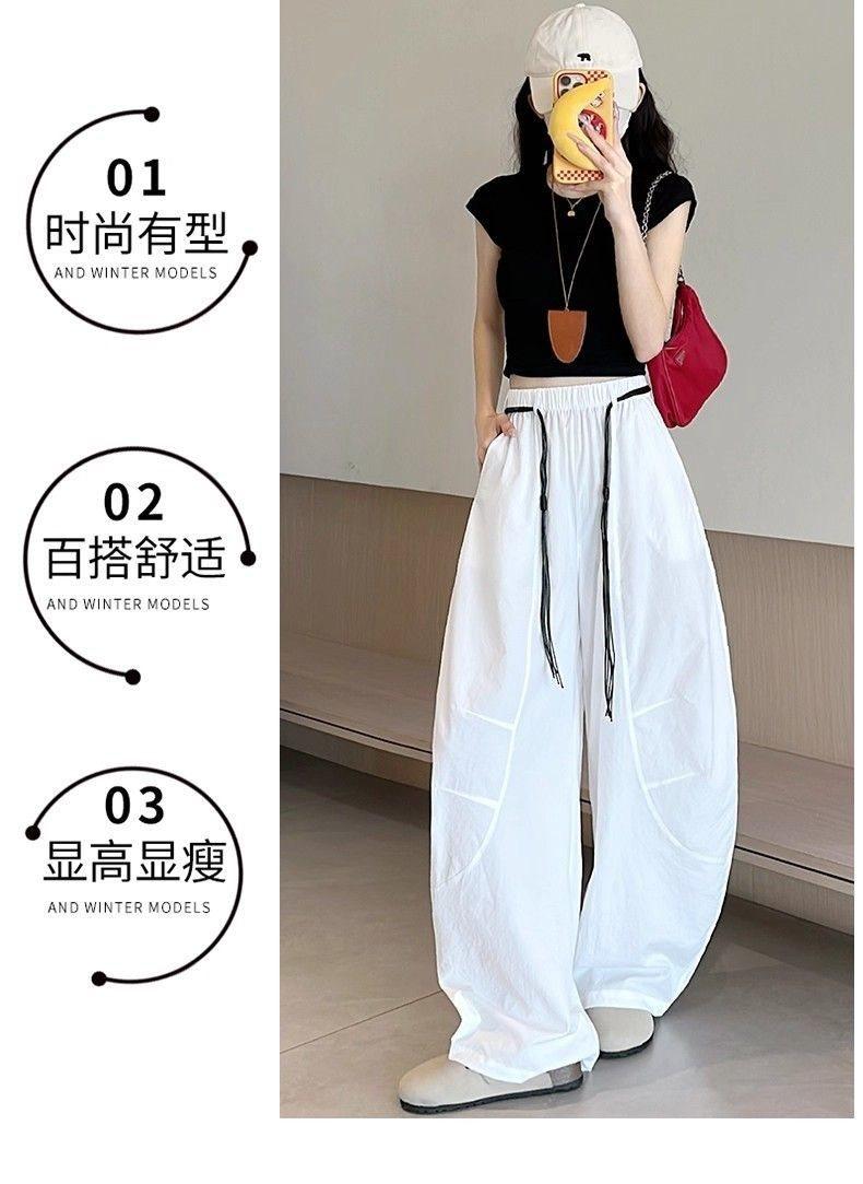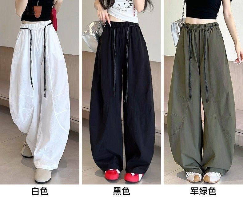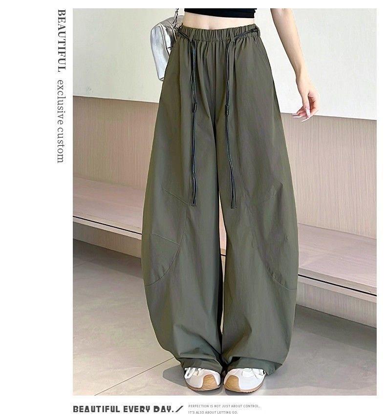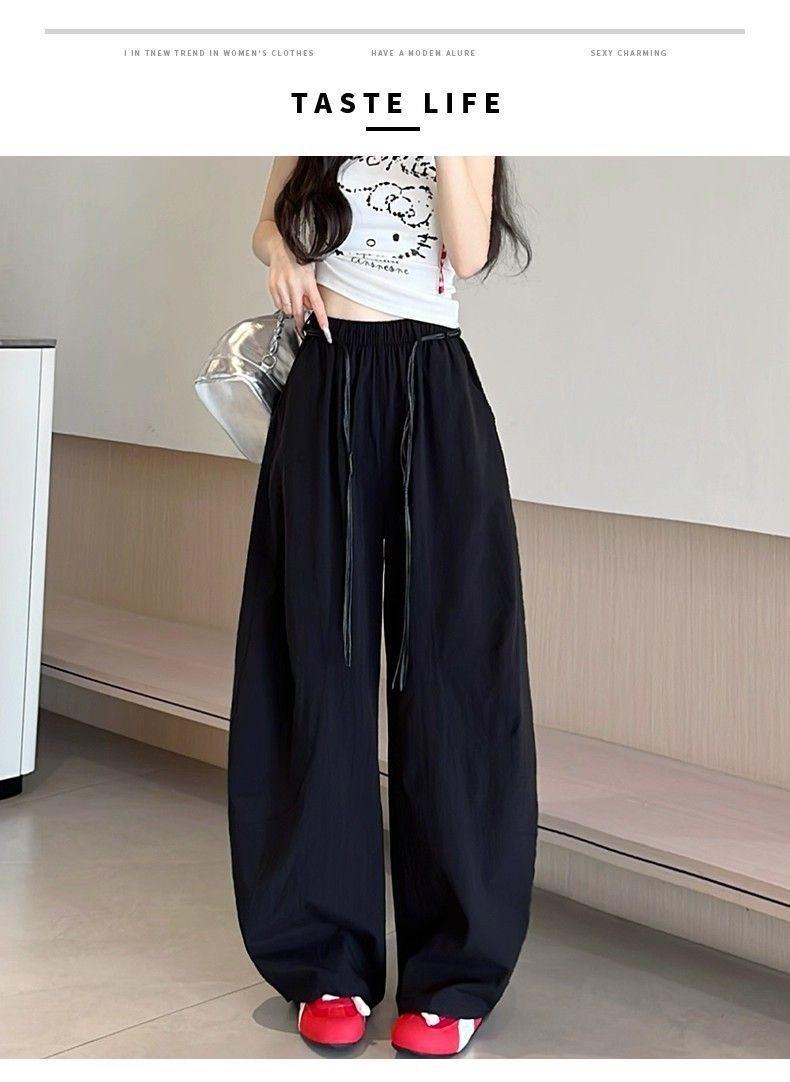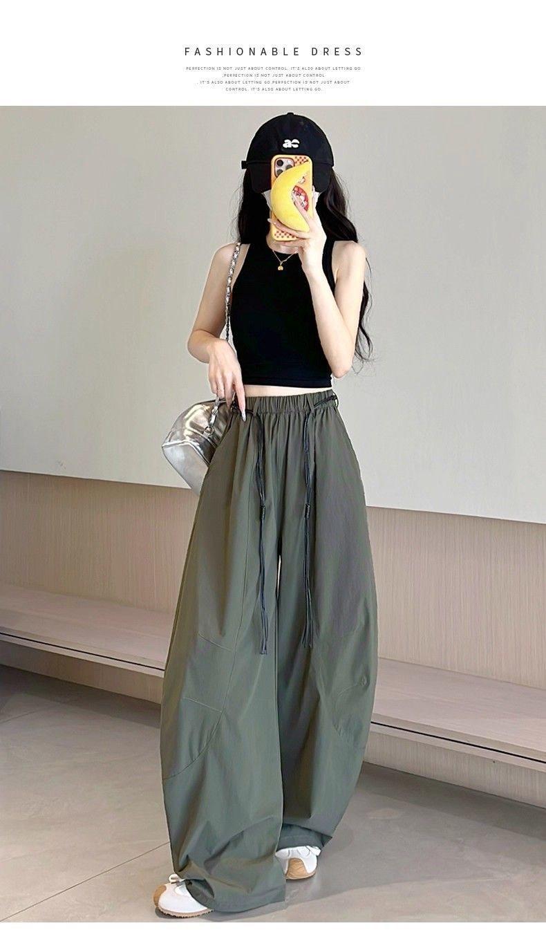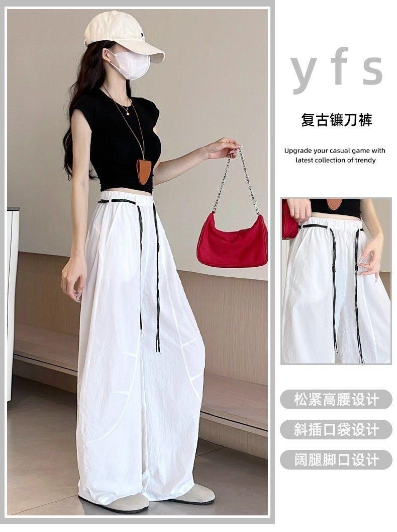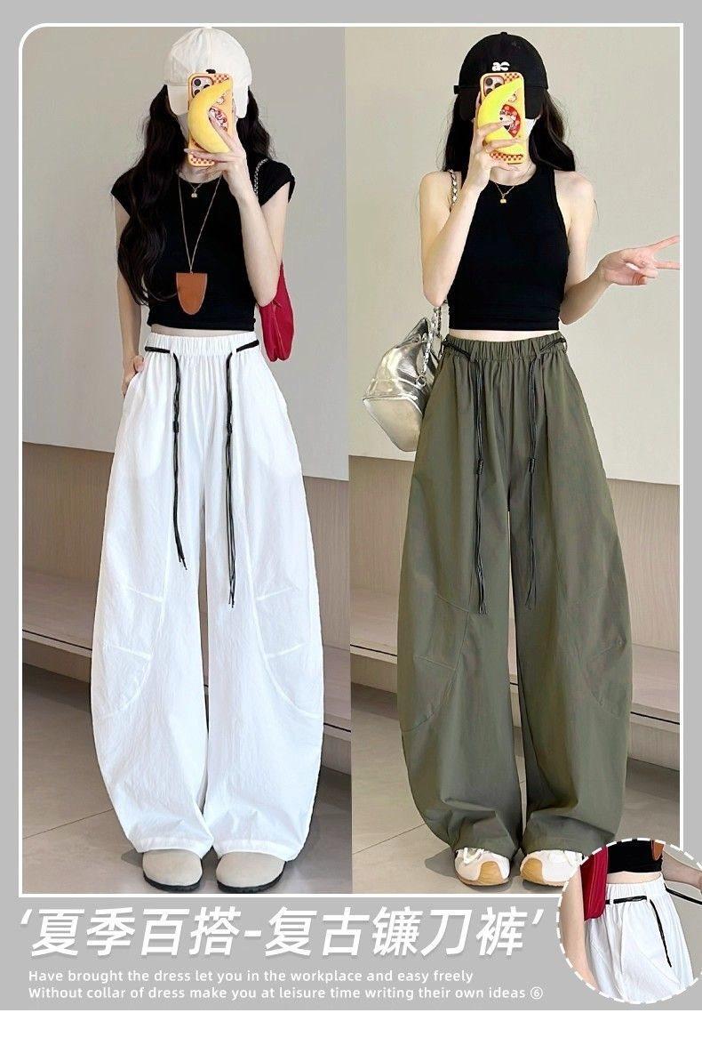 Pantalones Scimitar Americanos de Secado Rápido para Mujer Verano 2025 Nuevos Pantalones Casuales de Cintura Alta Pantalones de Hoz Sueltos Adelgazantes Deportivos de Pierna Ancha