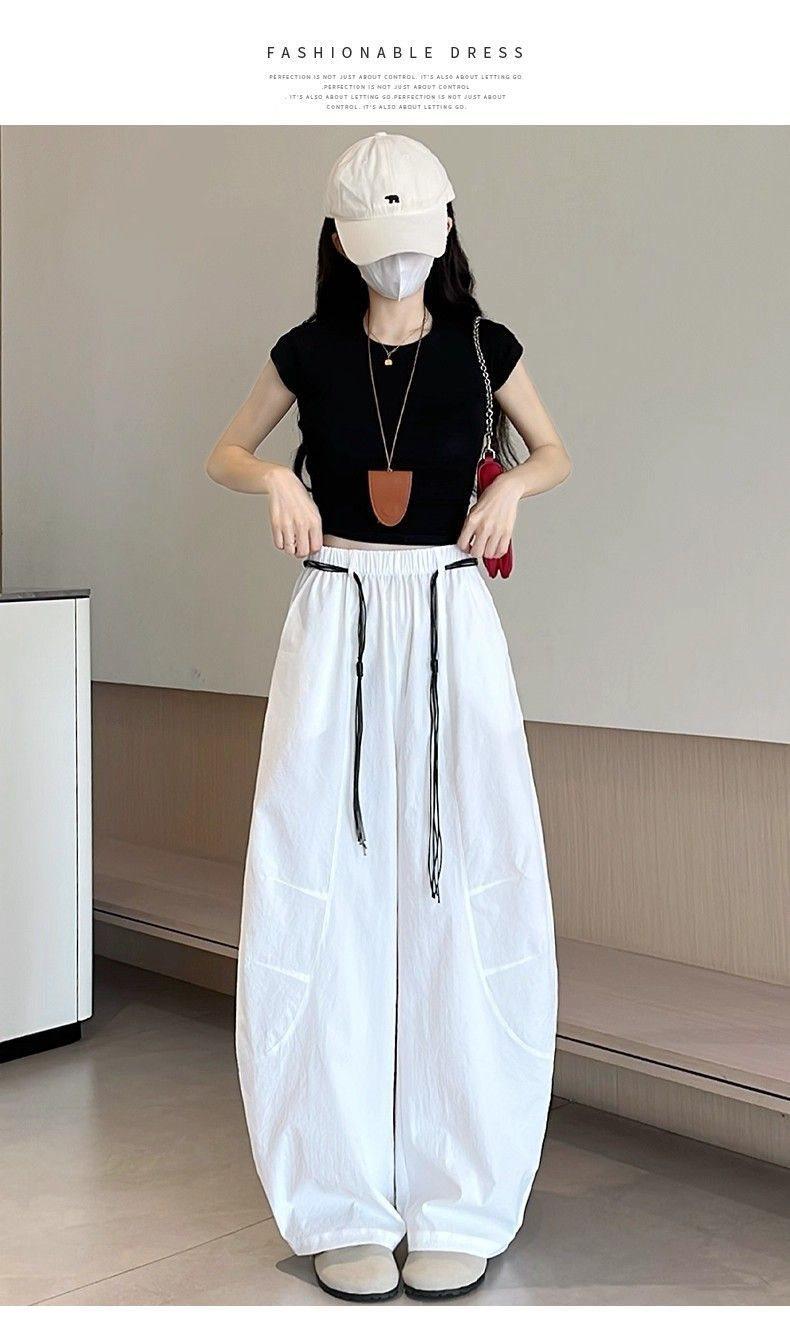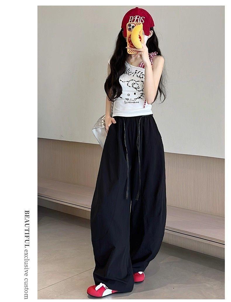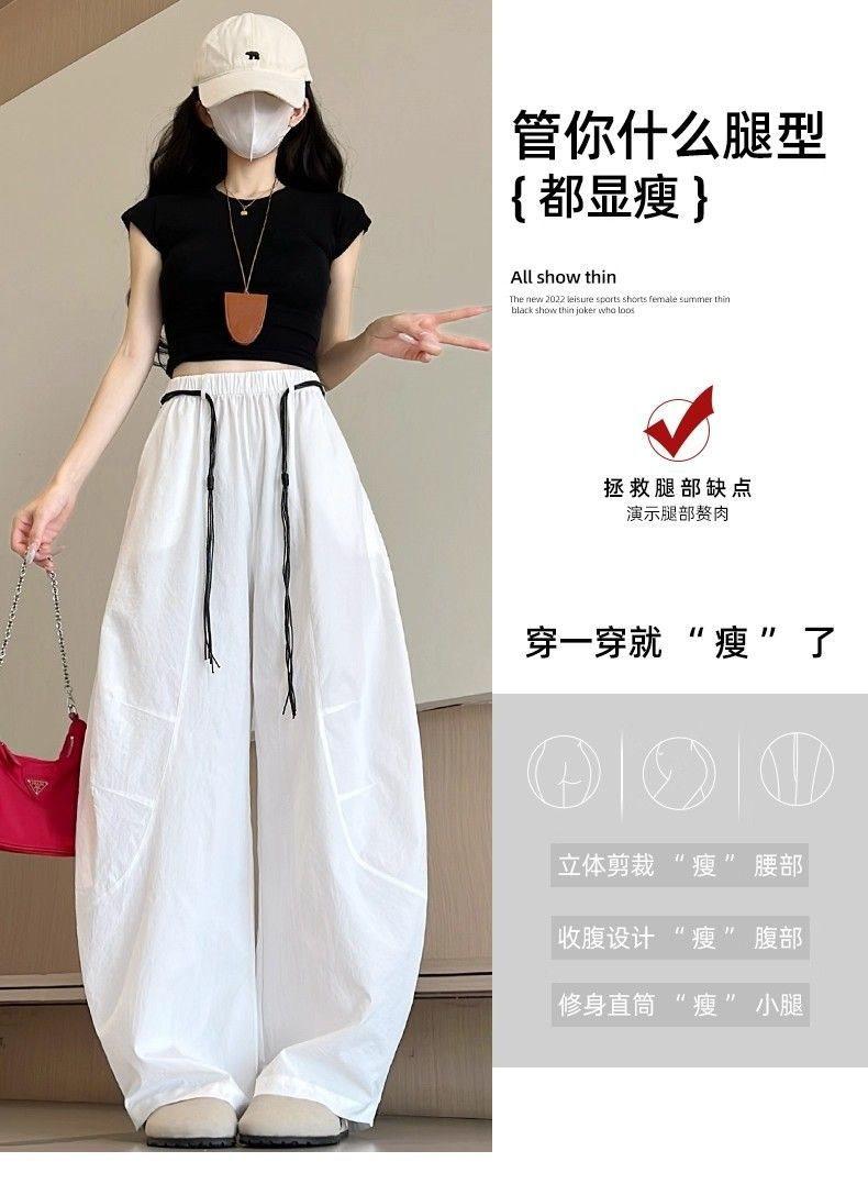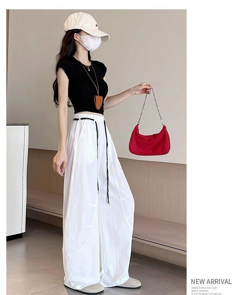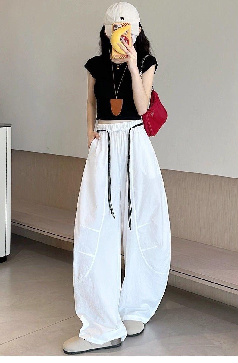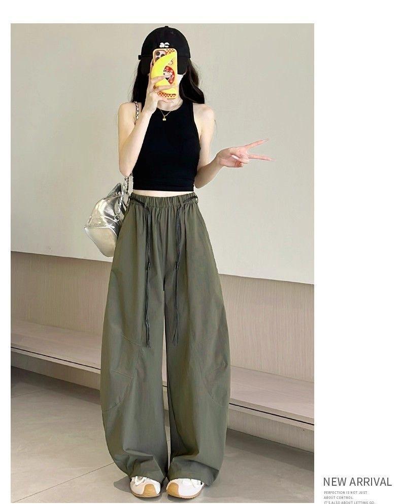 Pantalones Scimitar Americanos de Secado Rápido para Mujer Verano 2025 Nuevos Pantalones Casuales de Cintura Alta Pantalones de Hoz Sueltos Adelgazantes Deportivos de Pierna Ancha